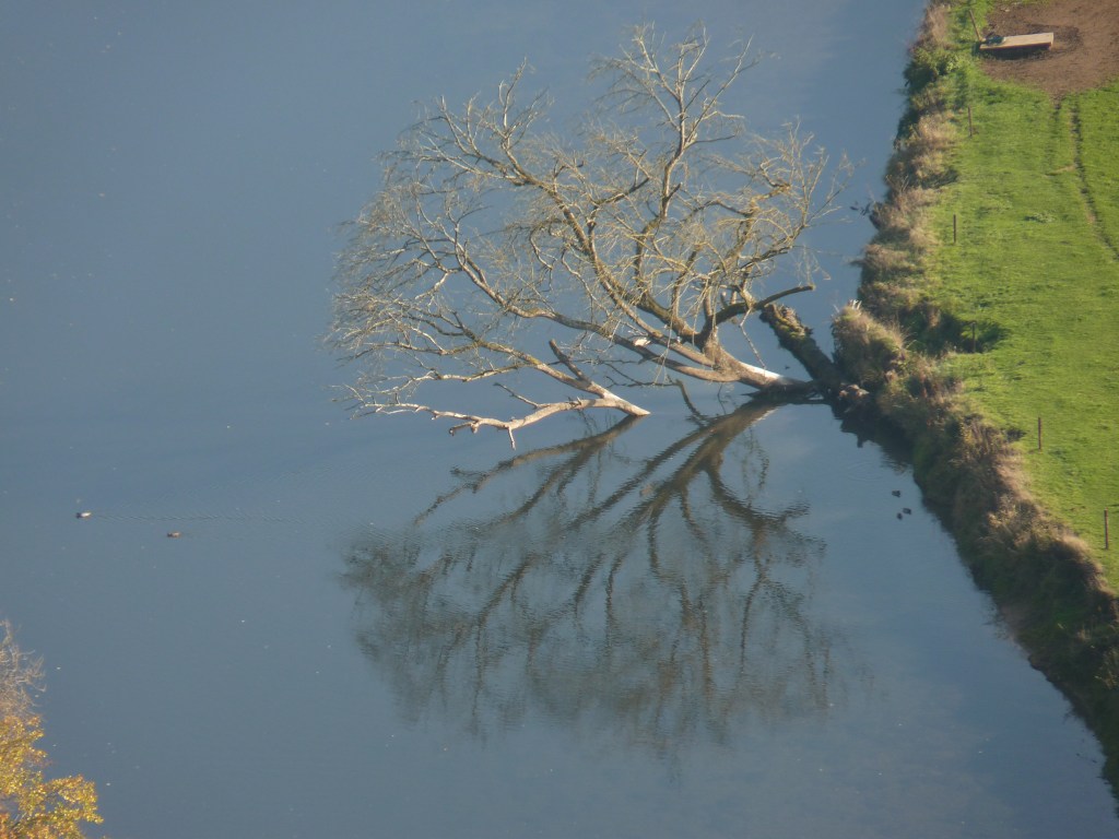 Ik parkeer de auto bij de stuwdam en begin van daar. Doodse stilte rondom mij. Behalve de vogels, verder geen geluid, geen auto’s, niks. Een enkele auto die eens langs rijdt, verder niets. Zaterdagochtend, 10 uur en niets….Ben wel anders gewend. Dit is zalig, duwt je met je gezicht in de natuur. De dam is manmade, voor de rest niets dan een ontzagwekkende hoeveelheid water en de natuur eromheen. Een koude, vochtige lucht, dat zal de hele dag blijven, grijs en vochtig, maar toch…beautiful!