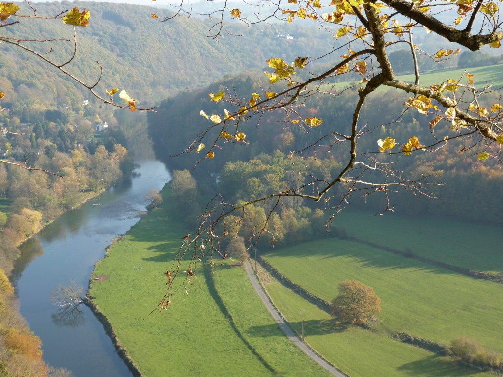 De valkenrots….een mooie wandeling, hoog verheven boven de vallei van de Ourthe in de buurt van Esneux. Deze plek is al bekend van het Neolithicum, zo’n 5000 jaar voor Christus. Toen leefden daar al mensen. Als je je dat zo bedenkt, is dat niet zomaar niks… Een zonnige middag, gevuld met inspirerende vergezichten….