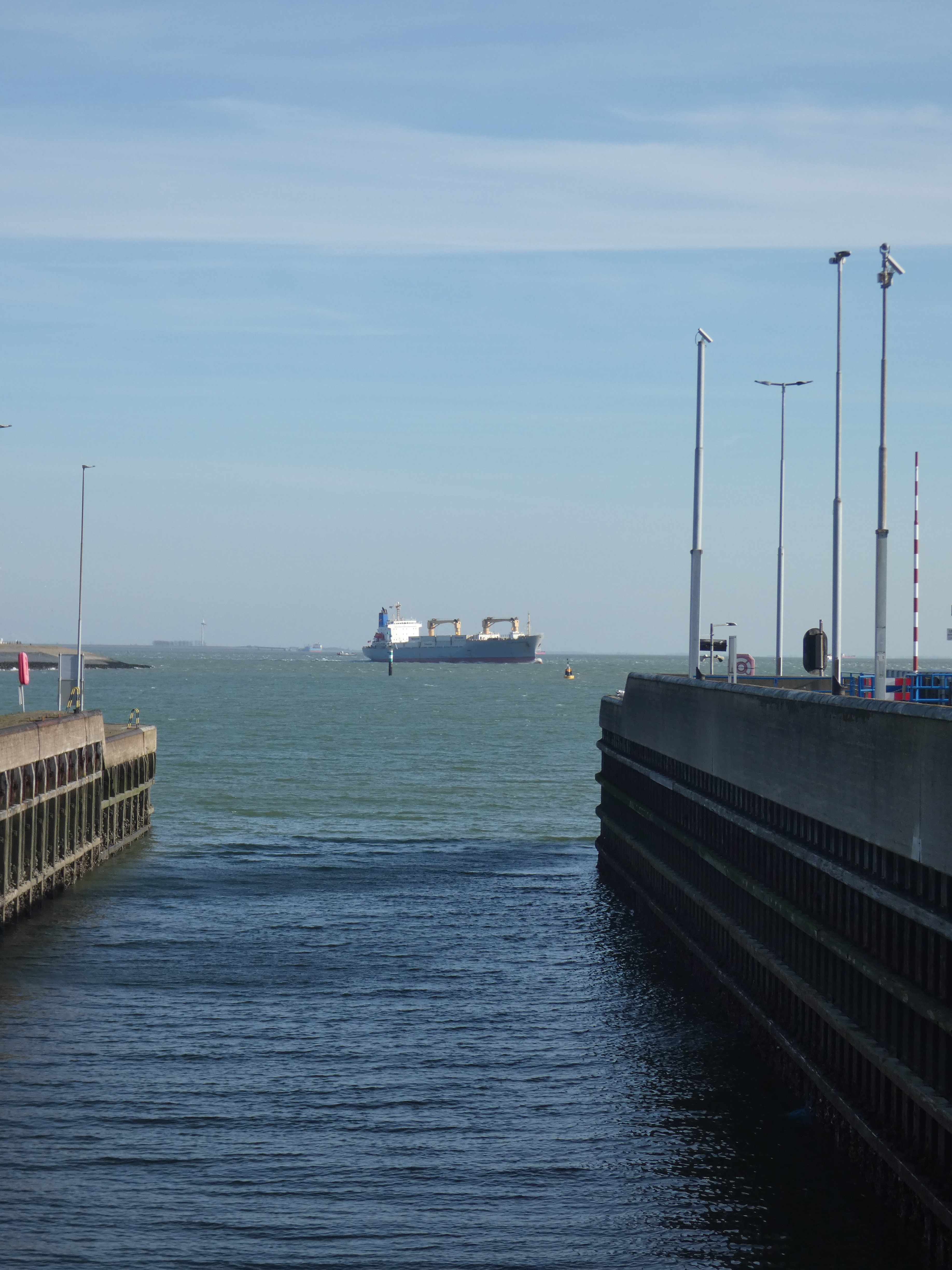 De weg richting terug gaat volledig langs dijken. Overal waar trappen zijn, even stoppen en de dijk op om te kijken. Kijken of je sneller kan dan de schepen. Dat is nog niet zomaar vanzelfsprekend. de vaargeul van de schepen is wellicht wat bochtig, maar de weg is een heel stuk crazier met tijden. En bij Terneuzen moet je zowiezo een heel stukje om, dus je wint het zomaar nog niet van die joekels die naar Antwerpen opstomen…