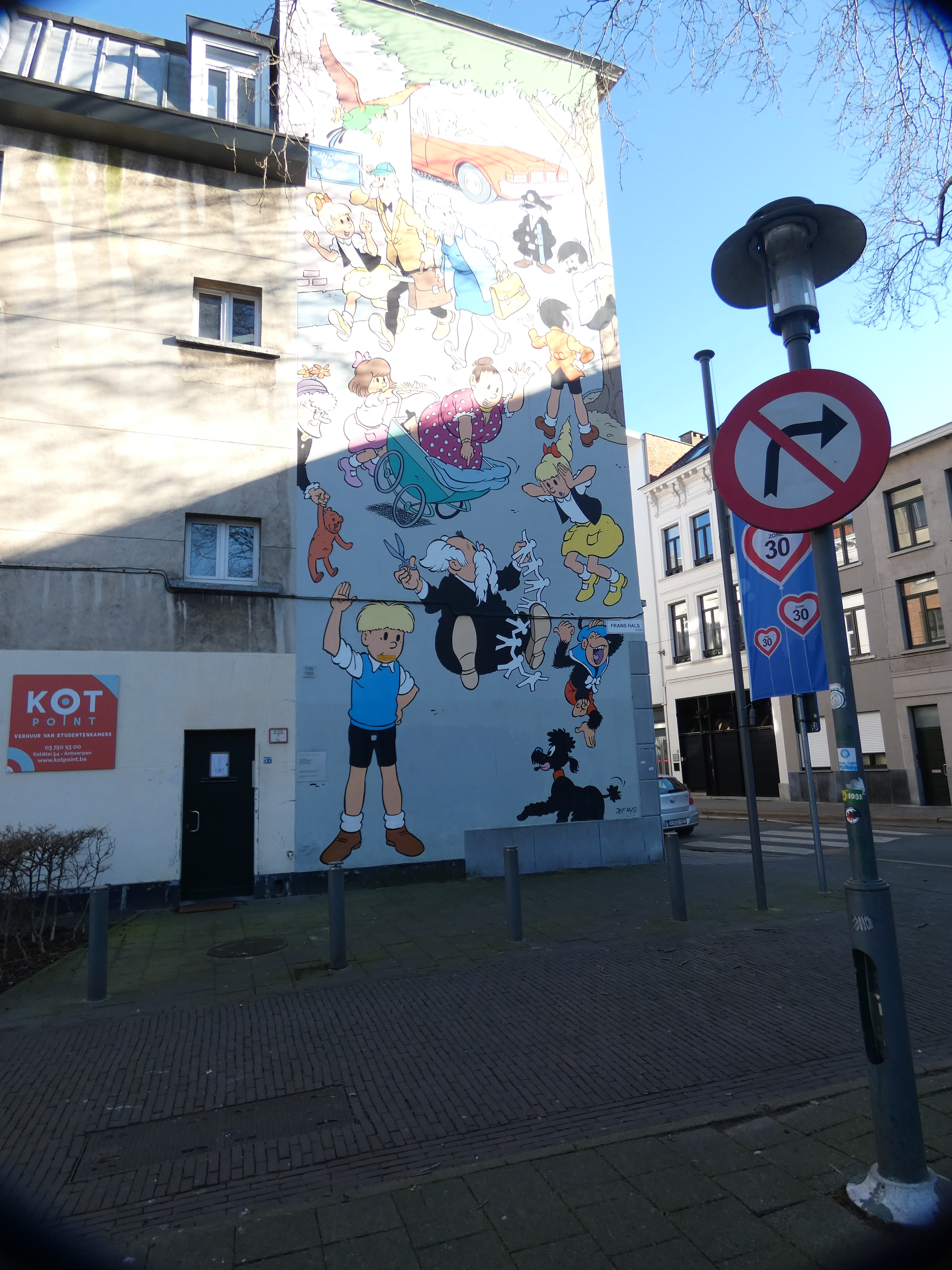 Deze week is het een stralende dag. Eigenlijk ook niet ideaal, omdat de zon soms vervelende overbelichting en rare schaduwen kan geven op de muren. maar het is een aangename kans om onbezorgd door de stad te dwalen.