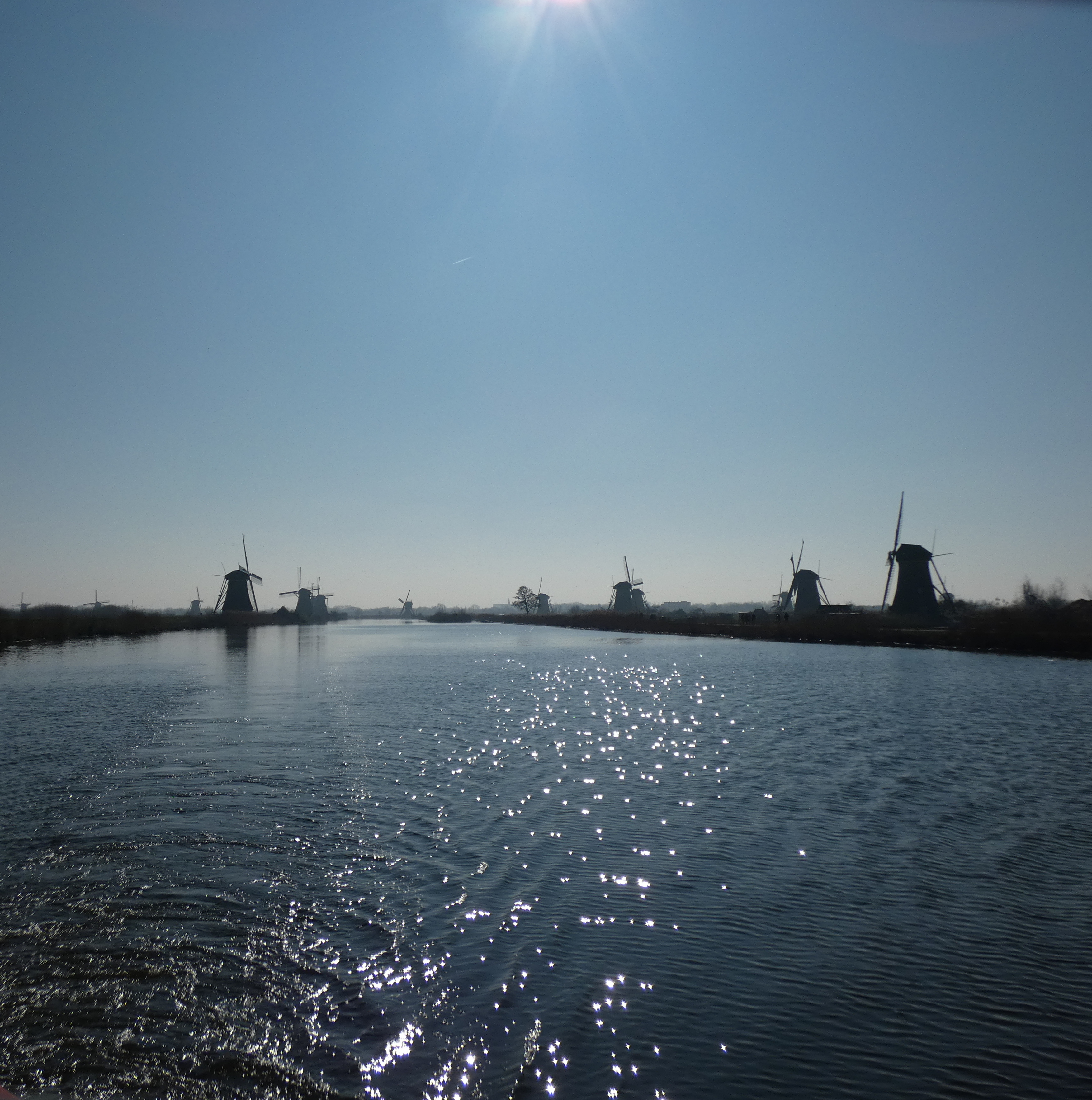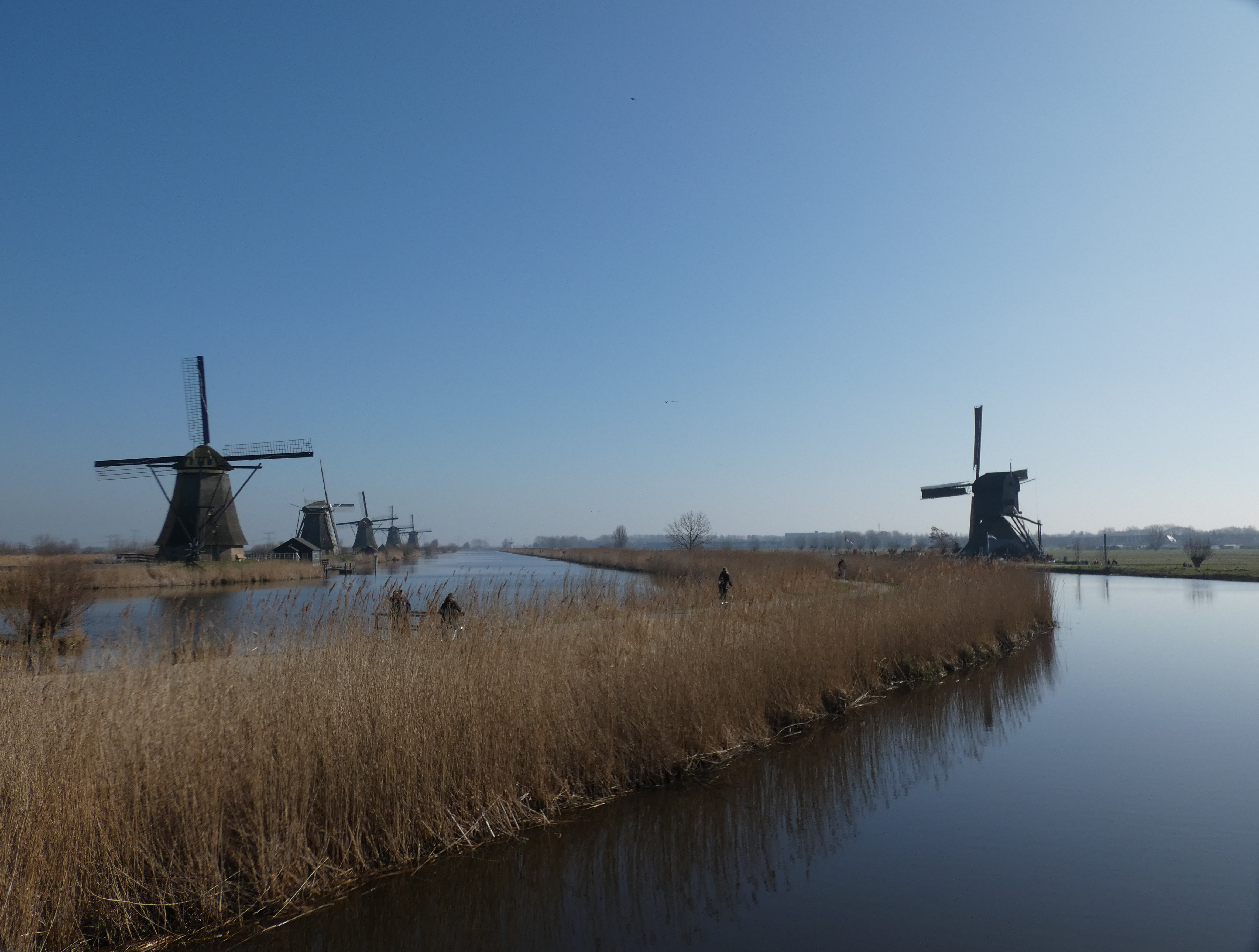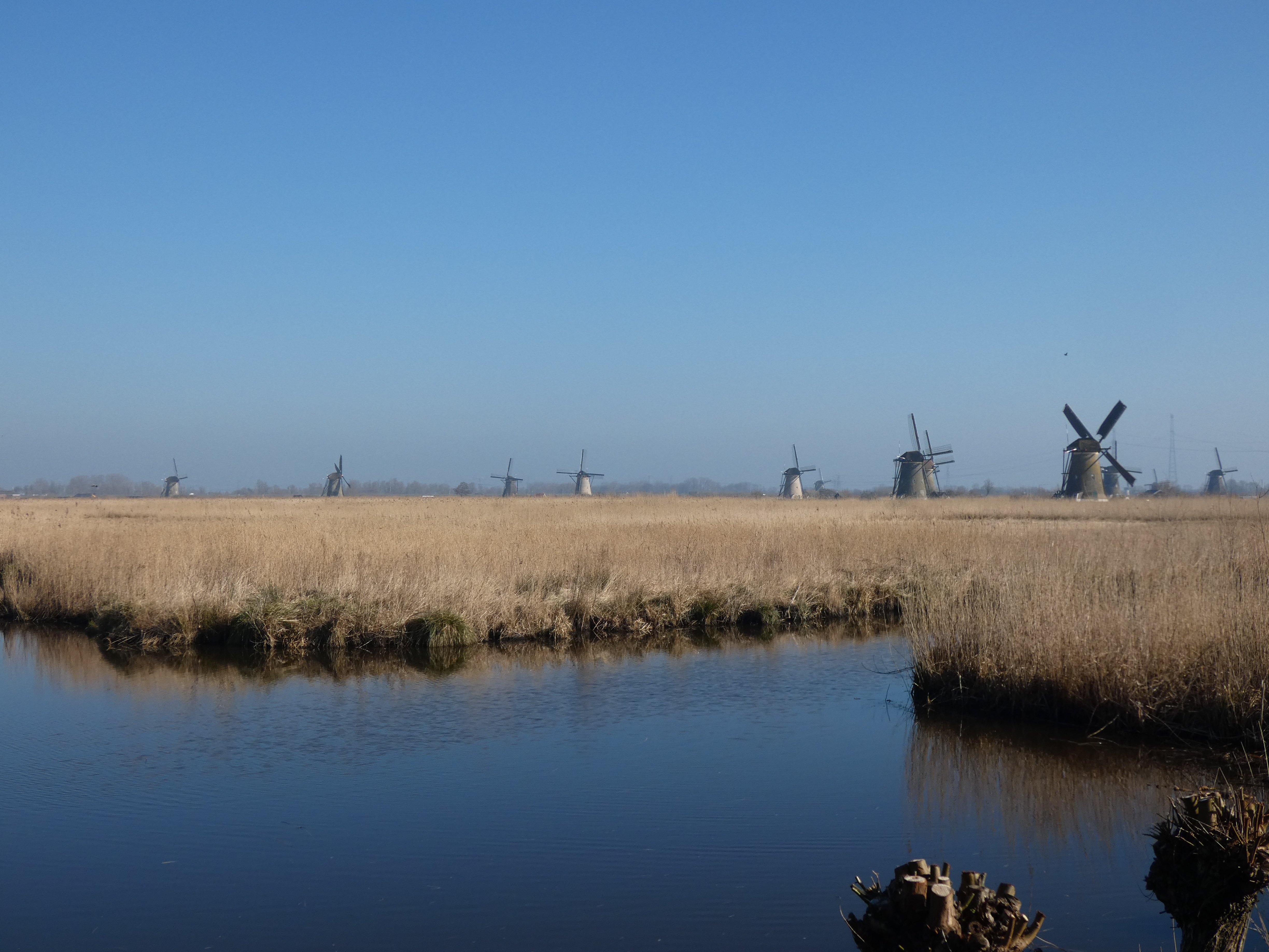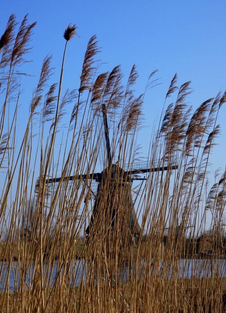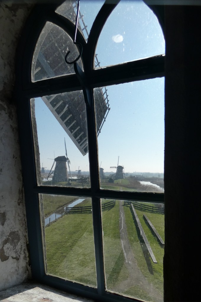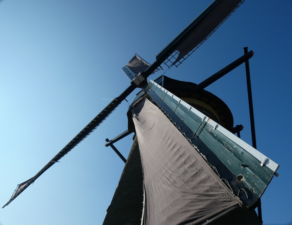 16 van de molens zijn nog bewoond, daar kun je niet in, twee molens zijn ingerich als museummolen. Hoe meer mensen Kinderdijk bezoeken, hoe beter het is. Wat getalletjes…het kost 20.000 euro om een molen een jaar te onderhouden. Elke molen moet ook minstens 60.000 omwentelingen per jaar maken, om in werkbare staat te blijven. De museummolens draaien geregeld, waarvan de tweede, een wipmolen, het meeste draait, met makkelijk een miljoen omwentelingen per jaar. Het water wordt tegenwoordig afgevoerd door dieselgemalen, dus de molens hoeven niet meer te werken, maar ze zijn alle 19 in opperbeste conditie en zouden zonder problemen onmiddelijk kunnen worden ingezet. dat maakt deze plek natuurlijk nog opmerkelijker.