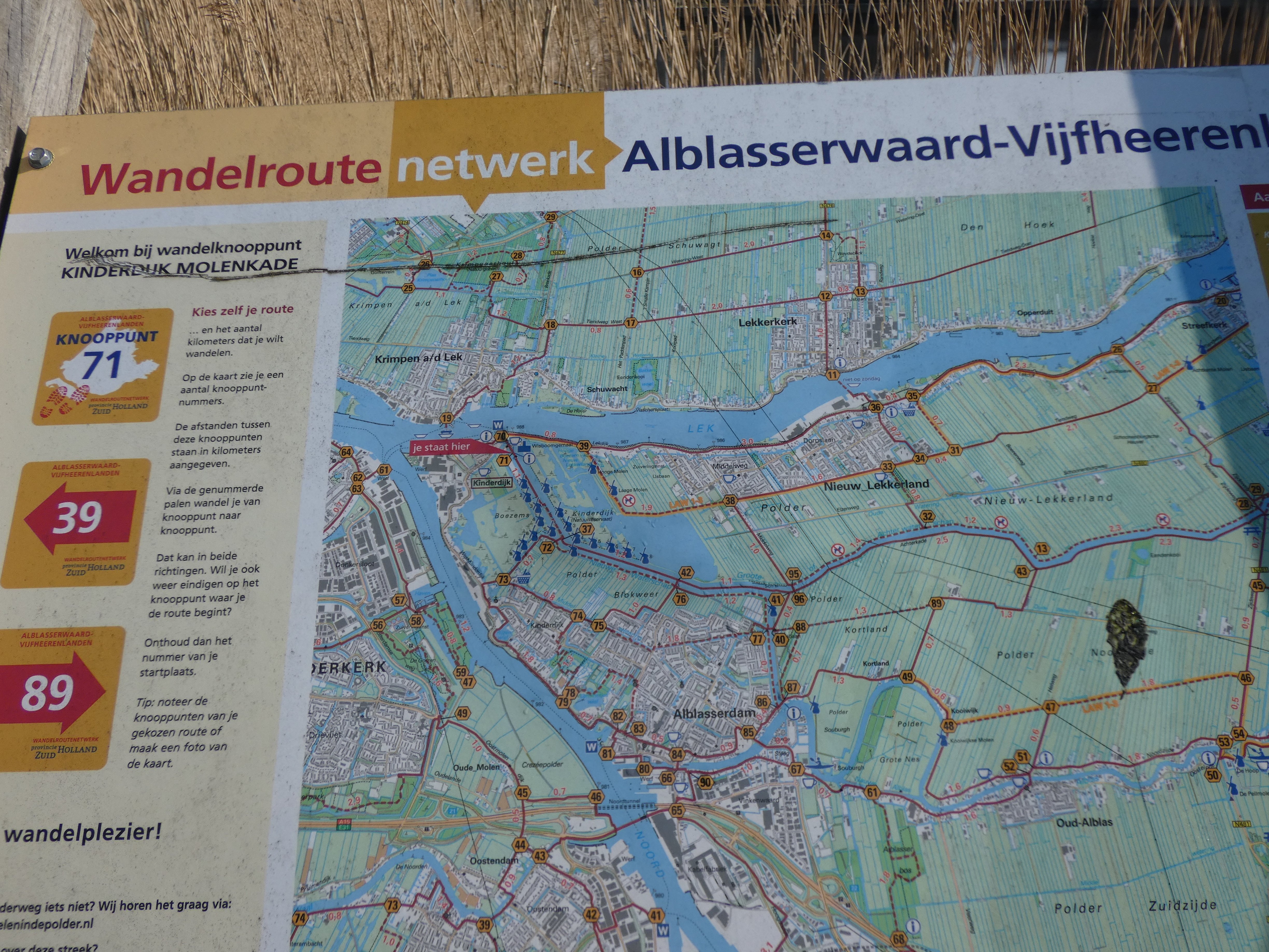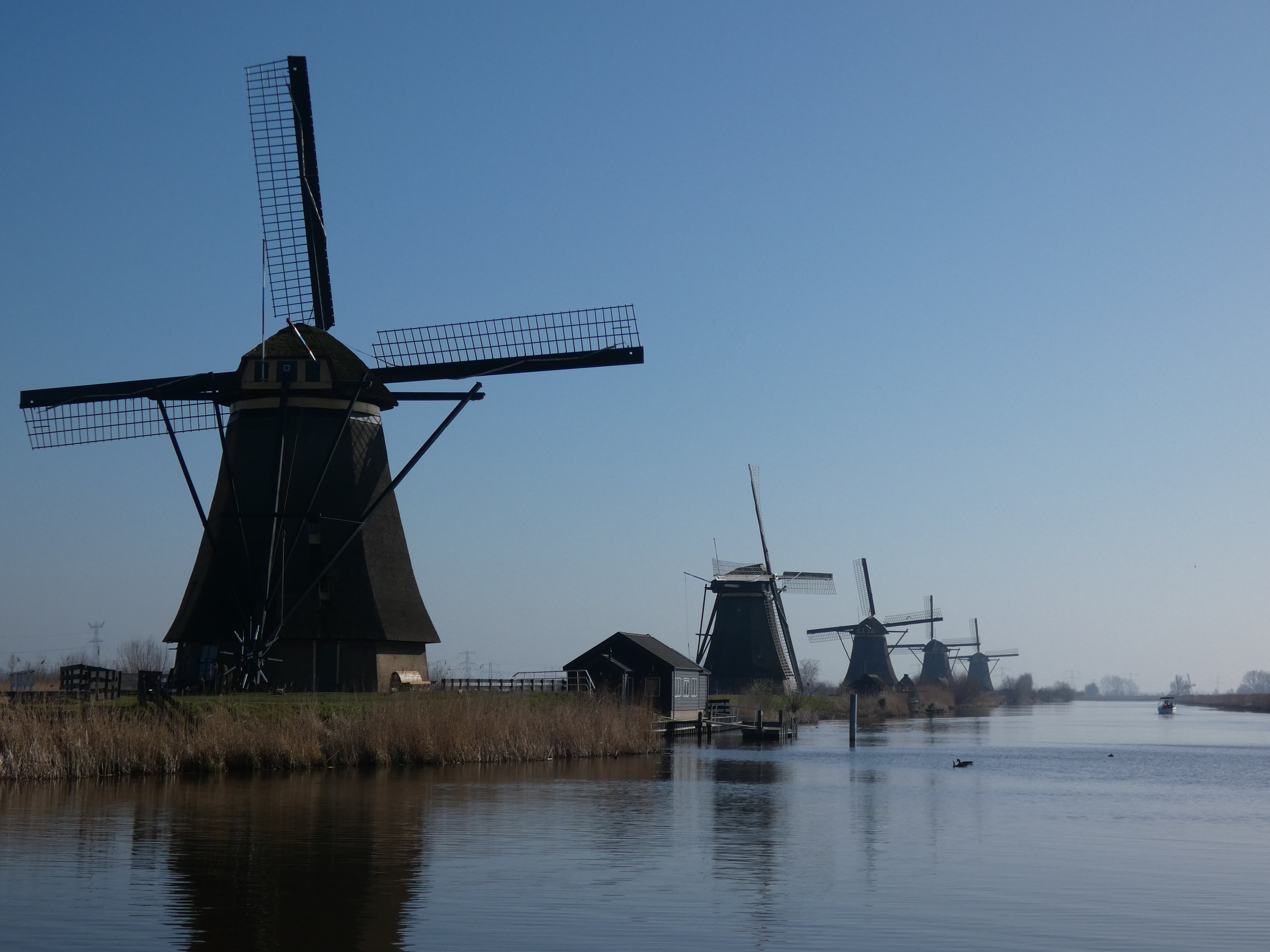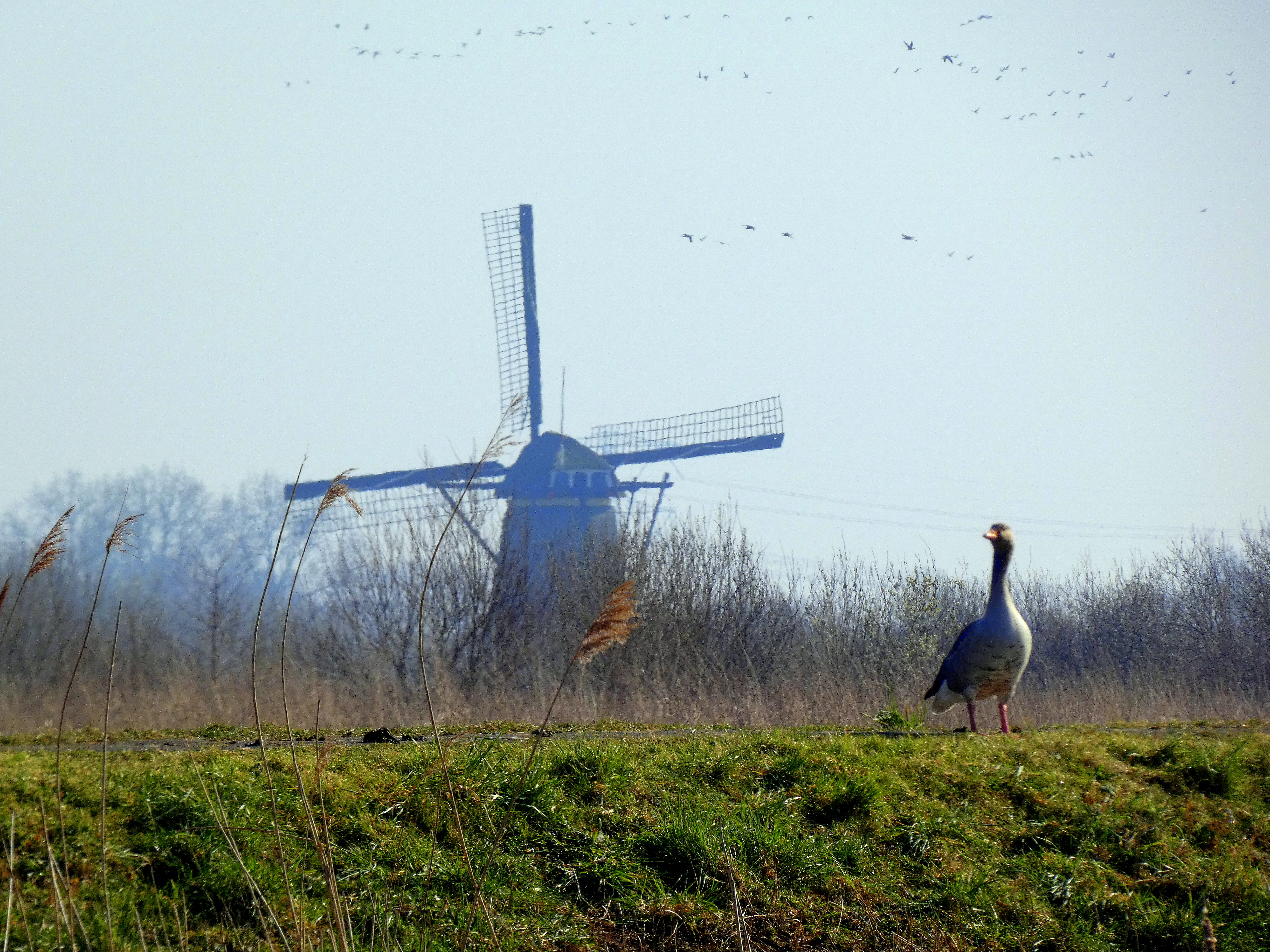De audiotour geeft meer uitleg, maar even iets in het kort hier… Zoals iedereen wel weet, zijn we in de polders een stuk onder zeeniveau. Dit heeft ƩƩn ding tot gevolg….water. De molens werken op windenergie. Die wieken, drijven een schoepenrad aan, dat water wegpompt. Dat water wordt vanuit de polders in de zogenaamde lage boezem gepompt. Van daaruit naar het zogenaamde middenkanaal, waarna andere molens het in de hoge boezem pompten. Bij laagtij kon dan dat water eenvoudigweg in de Lek gestort worden. Problem solved. Tegenwoordig wordt het water door dieselgemalen vanuit het middenkanaal naar de Lek gepompt. Dit maakt vooral van de hoge boezem een geweldig natuurgebied. Watervogels alom…