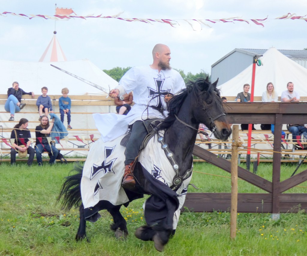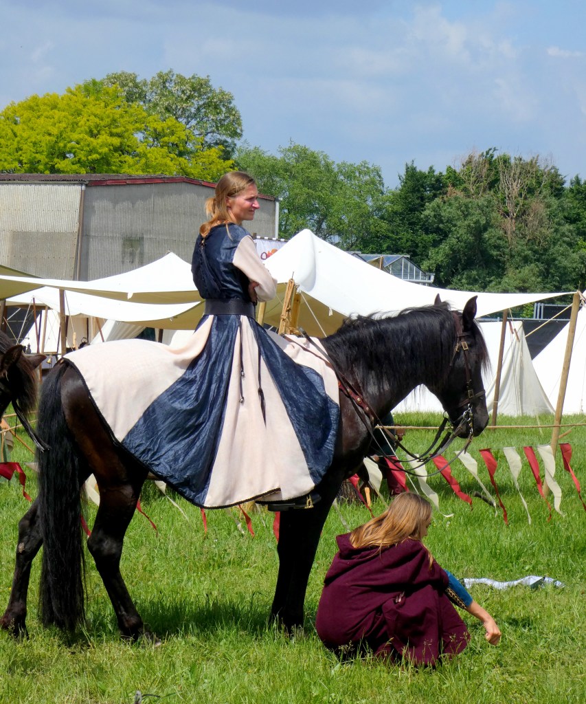 En dus…here we go again…21 mei 2022. Het Hooghuys van Berlaar ditmaal. Een kasteeltje, dat in de vroege dertiende eeuw al een bekende plek was voor riddertoernooien en steekspelen en wat dies meer zij. des te specialer, dat quondam op dezelfde locatie gehouden wordt. Ridders, schildknapen, soldaten, jonkvrouwen, ambachtslieden, marktkooplui, narren, je kunt het zo gek niet bedenken, ze zijn erbij. Een mooi tafereel over een restectabel terrein van zo’n 5 hectare. Plaats genoeg voor vele gezelschappen, paarden, steekspelen, zwaardgevechten en een heuse veldslag. Elke dag een uitgebreide roofvogelshow en bij alle gezelschappen marktkramen met mooi handwerk. Voor de inwendige mens plenty to find. En de zon schijnt, in afwisseling met hier en daar een wolk. Een zalige dag, een uitgelezen weekend.