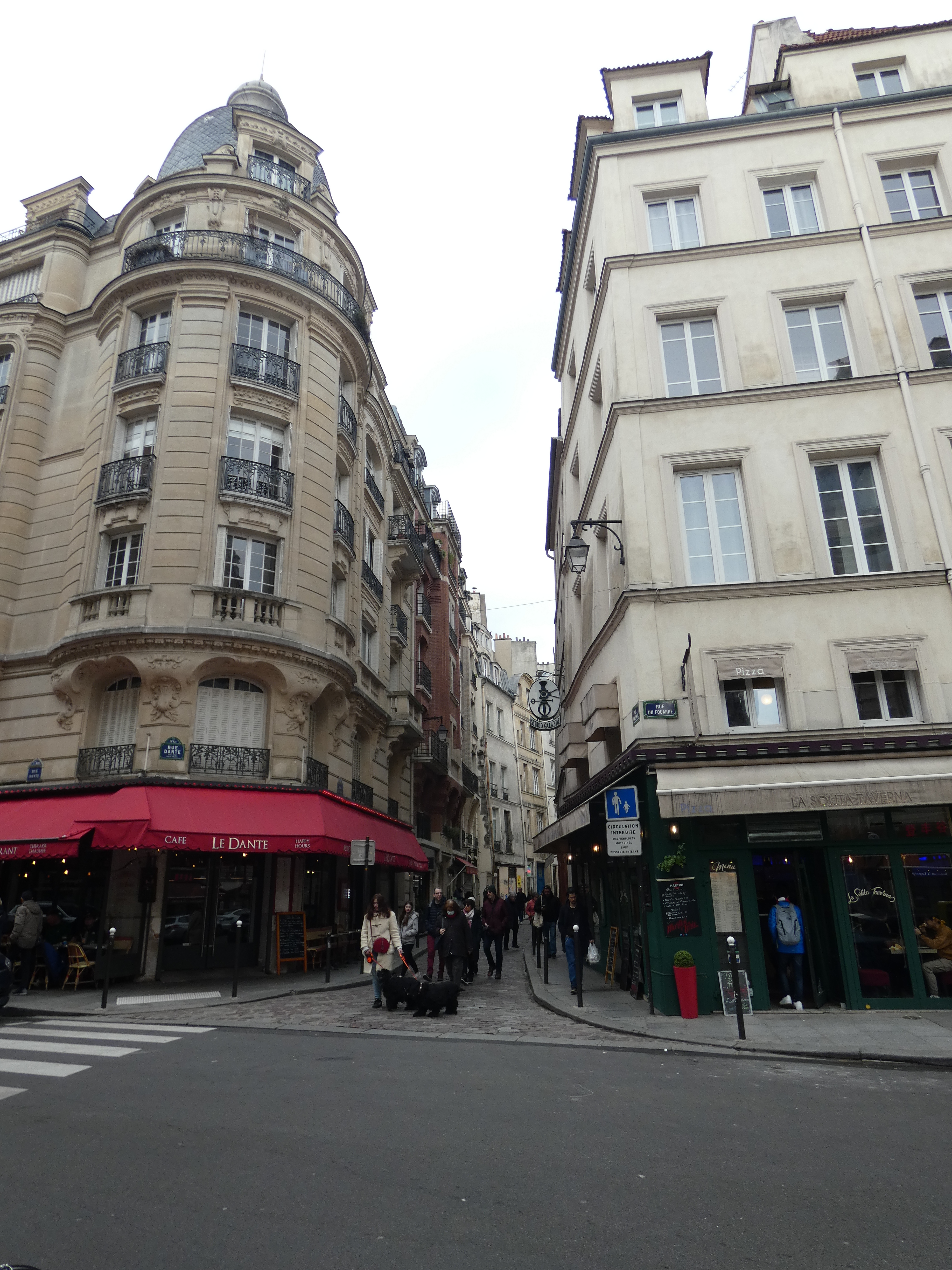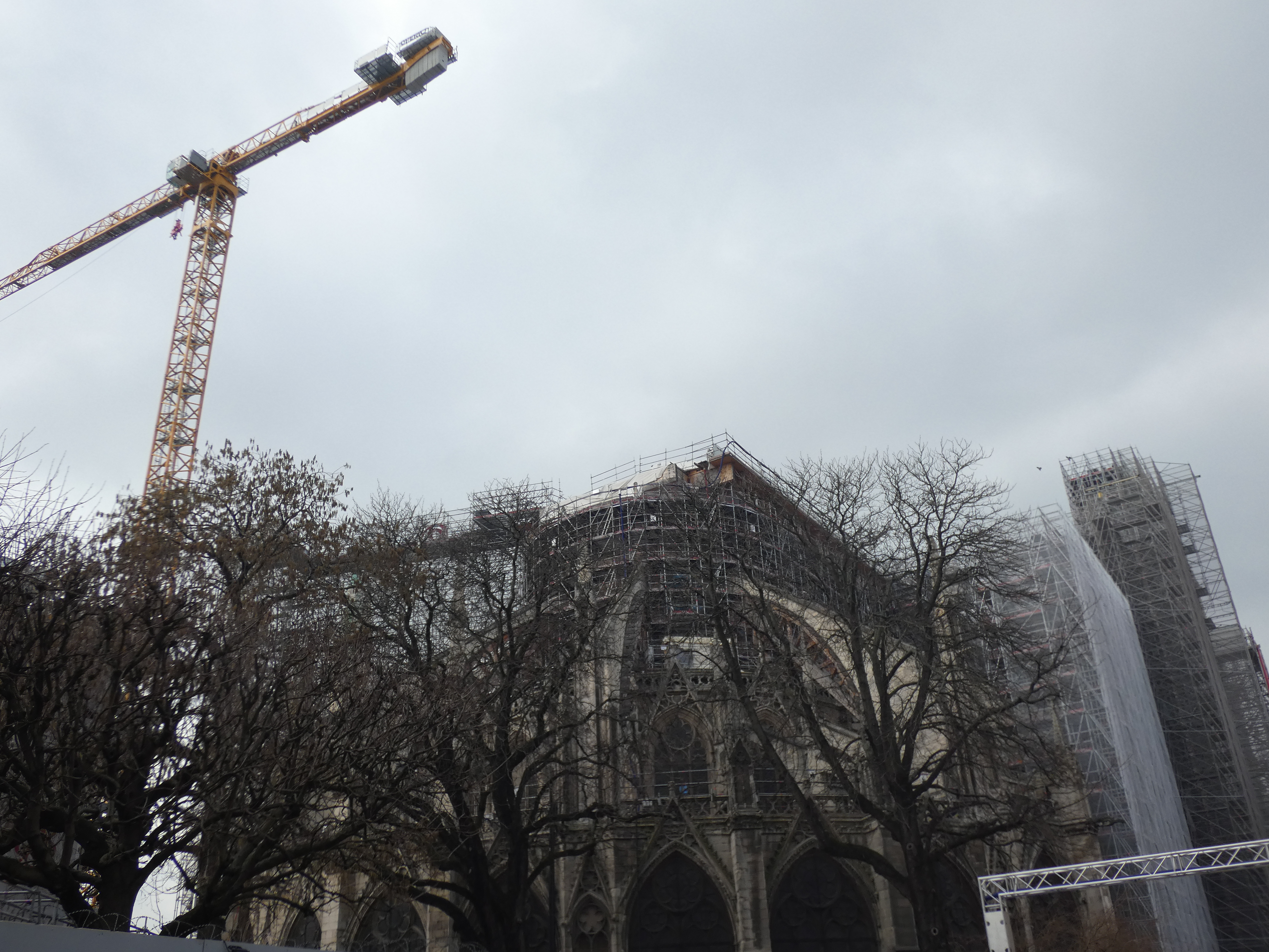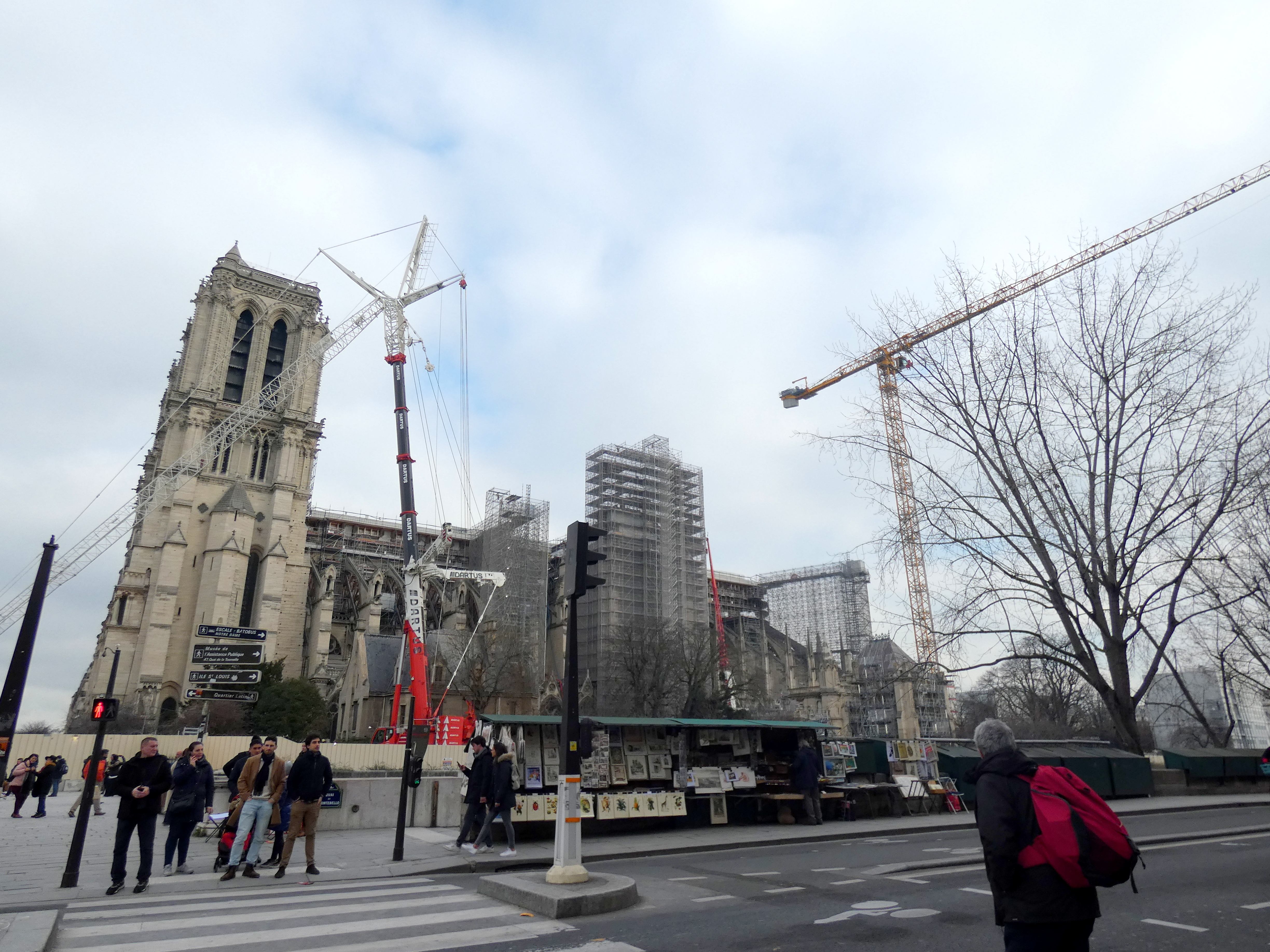 Ik blijf niet te lang hangen…benieuwd naar de Notre Dame, hoever ze zijn met de restauratie… Metro naar CitĆ©. Als je daar uitstapt, ben je net ver van de Notre Dame en kun je tegelijkertijd ook even genieten van alle bloemenkramen. De Notre Dame ligt er zielig bij. Als iemand die je graag hebt, die in het ziekenhuis ligt. Werk is in volle gang, maar het is een ontzagwekkend project en dat is te zien. Overal steigers en bouwkranen. Een dierbare in de kreukels… Ik lop op min gemak rond en neem alles in me op. vervolgens de Seine over en een tas koffie op terras vooraleer ik het Quartier latin intrek.