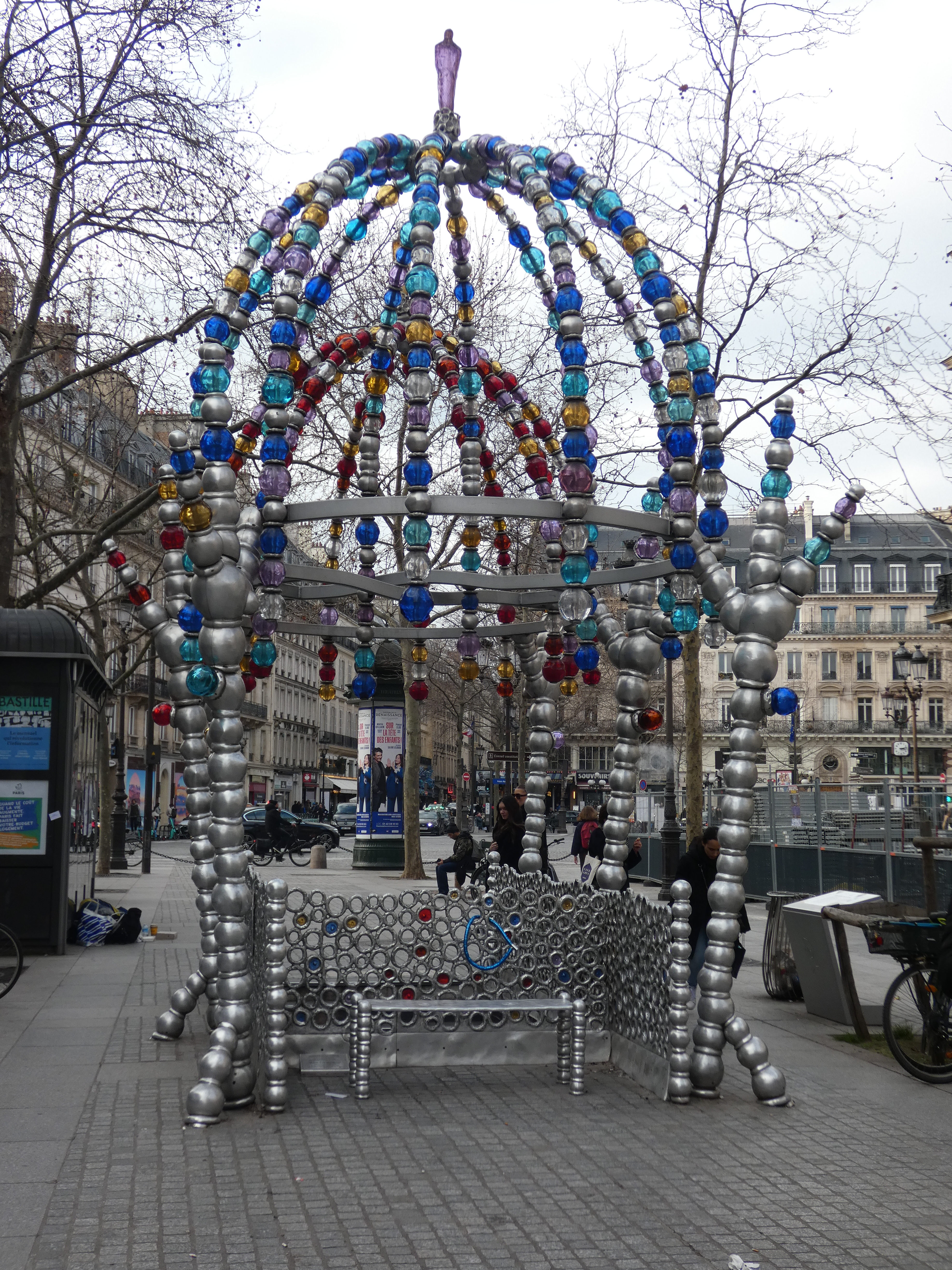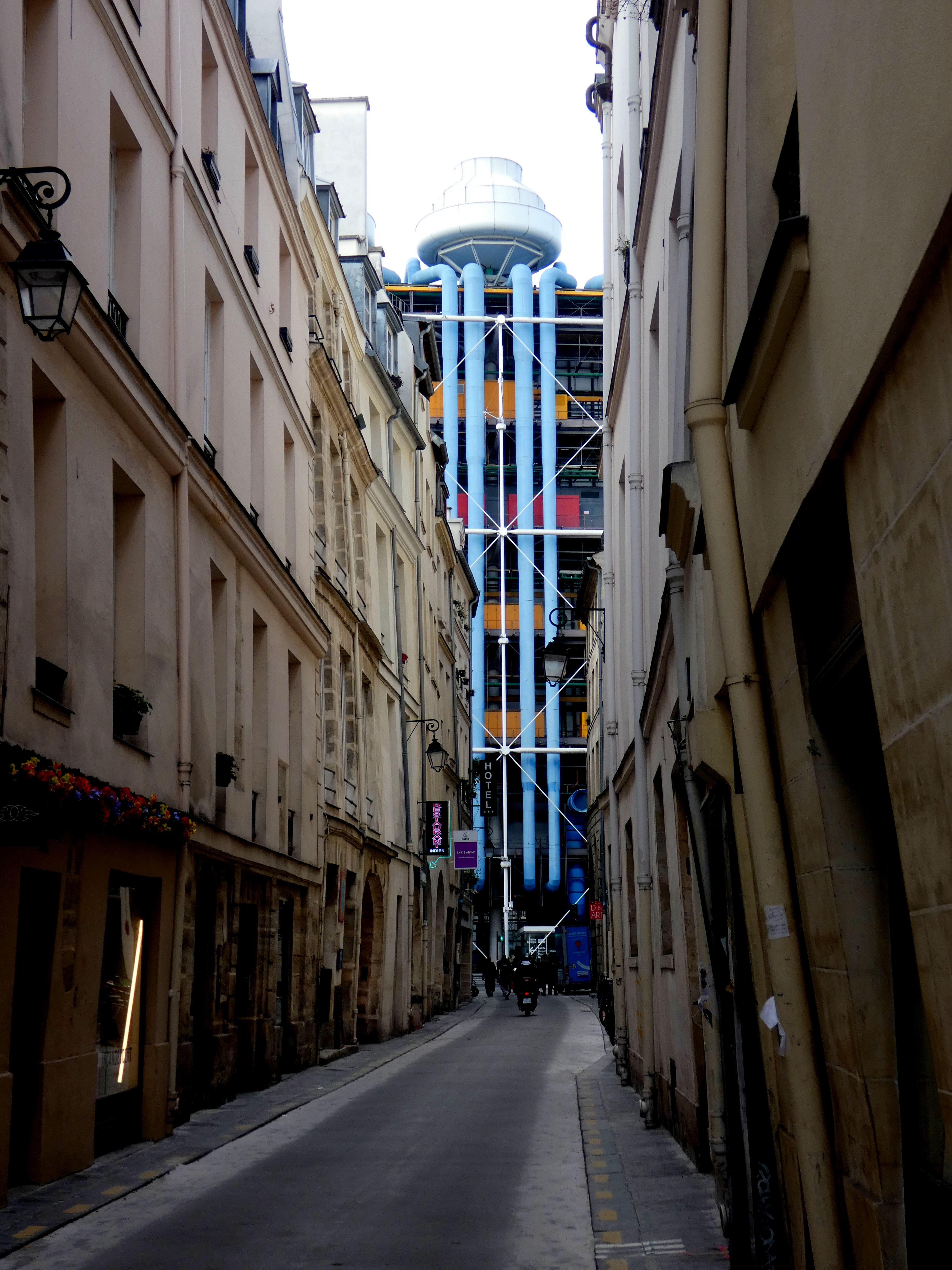 Na een goed uur, steek ik de Seine terug over, achter de Notre Dame langs, om Le Marais in te trekken. Ook hier een wandeling van een uur, ongeveer, genieten v an mooie plekjes en doorkijkjes, sfeer opsnuiven en mensen kijken. Langzaam werk ik mijn weg terug richting Eiffeltoren….Van Place des Vosges via Hotel de Ville naar Centre Pompidou en door naar Rue de Rivoli, achter het Louvre langs, bij de Tuileries steek ik door naar de Seine, om langs de Seine richting Eiffeltoren te lopen. Gewoon, lopen en genieten…