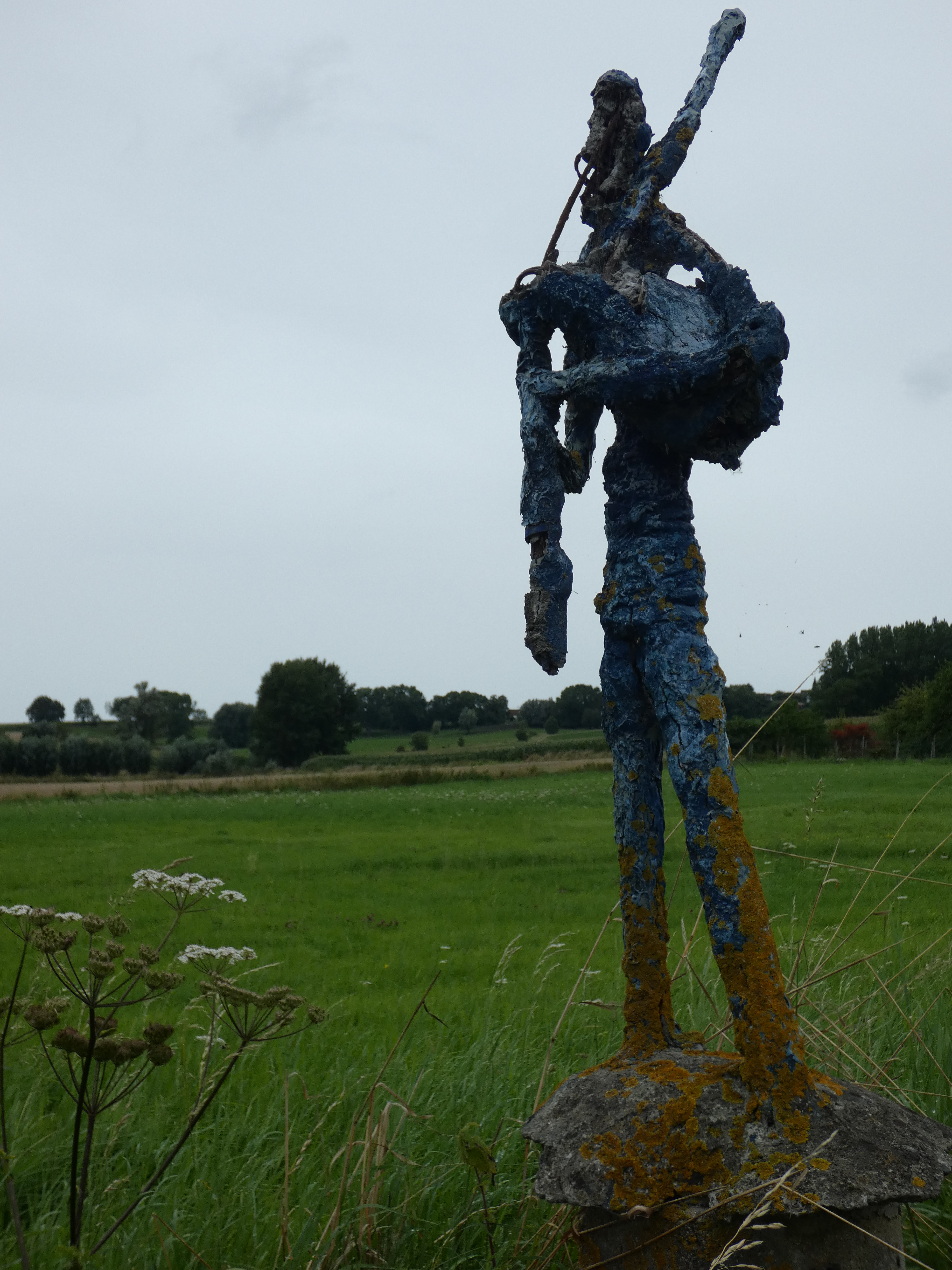 Een regenachtige zaterdagochtend. Ik ben al vroeg wakker. Eerst en vooral koffie en mijn dieseltje (mezelf dus) opstarten. Zoals geregeld op zo’n moment, Google erbij en op de uitkijk naar interessante, leuke bestemmingen… Een advertentie voor een scootertocht komt voorbij en in die advertentie staat, dat ze in de korte versie het heksendorp Ellezelle links laten liggen…Ik ken heel wat plaatsen, maar Ellezelle, nooit van gehoord. En heksendorp….spreek mij van zoiets en je hebt me al. Ik zoek het even verder uit en zie , dat er ook nog een sentier de l’Ć©trange is, een wandeling van zo’n 6 kilometer met vreemde wezens….Zij mogen dat links laten liggen, ik grijp mijn fototoestel, rugzak, koffie en wat bokes en ik zit achter het stuur…