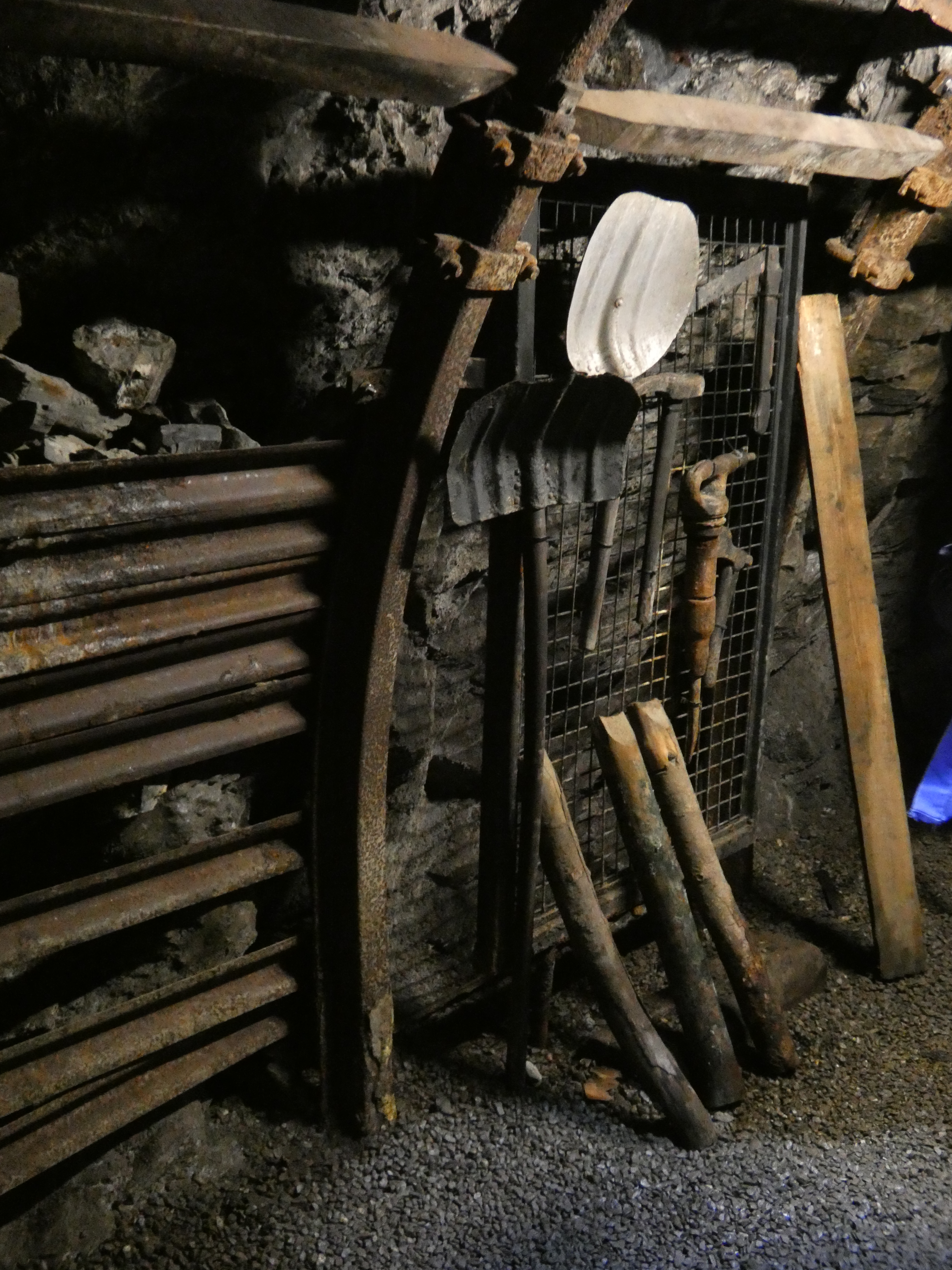 Onze rondleiding werd verzorgd door een oud-mijnwerker, die veel had meegemaakt, in maar liefst drie verschillende mijnen, voornamelijk in Belgisch Limburg, een mijngasontploffing overleefd, collega’s verloren, had het echte zware werk nog meegemaakt, in het Luikse waren de mijnen kleiner, daar was niets machinaal, alles zwaar handwerk. Bruut, manueel labeur, 8 uur per dag opgesloten in krappe ruimtes met oorverdovend lawaai, hard, haast wreed werk zonder vergiffenis, zonder medelijden, maar de kameraadschap, de familiezin, de absolute gelijkheid in dat wereldje leverde ook veel mooie momenten op.