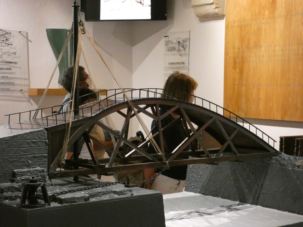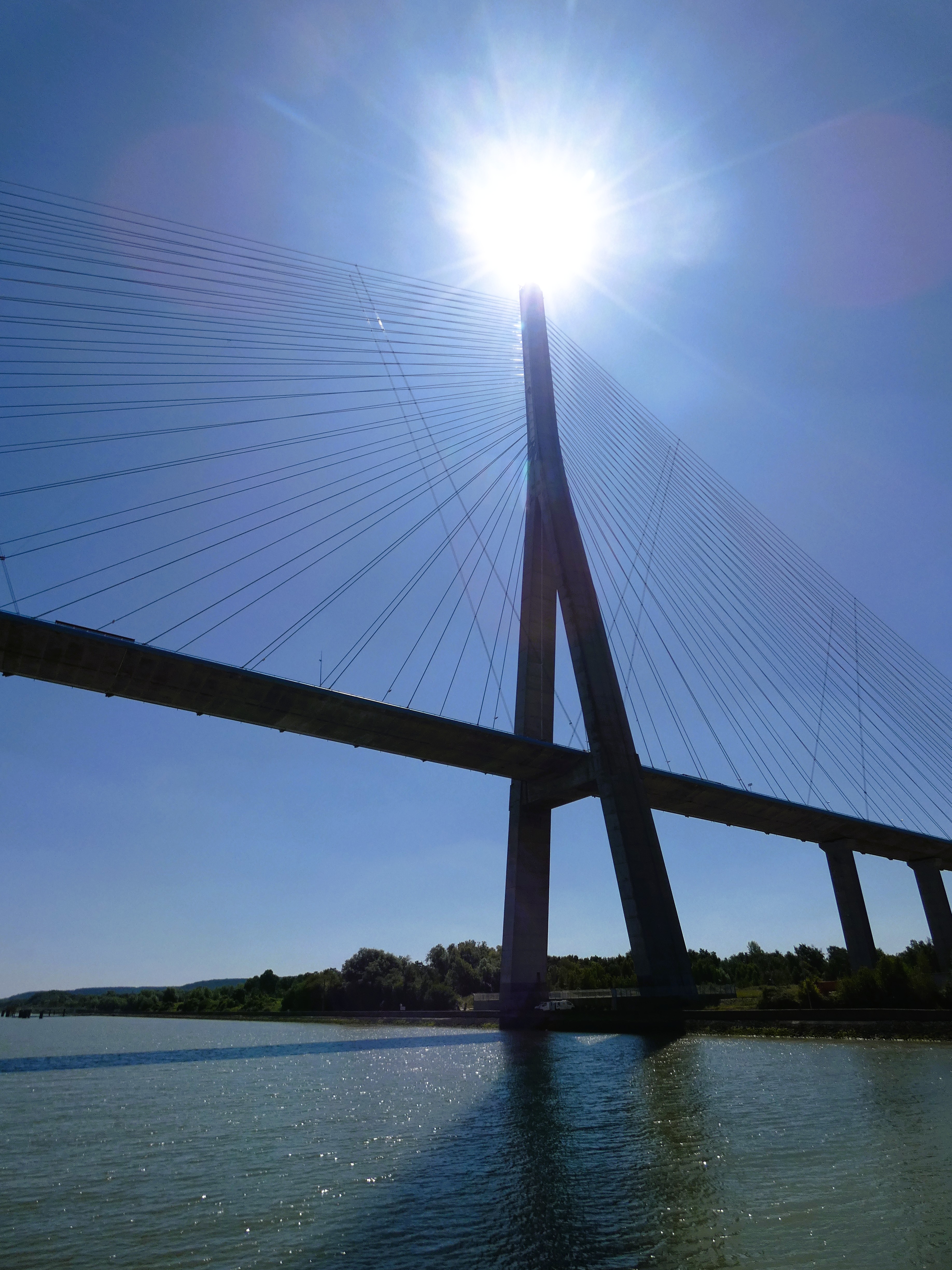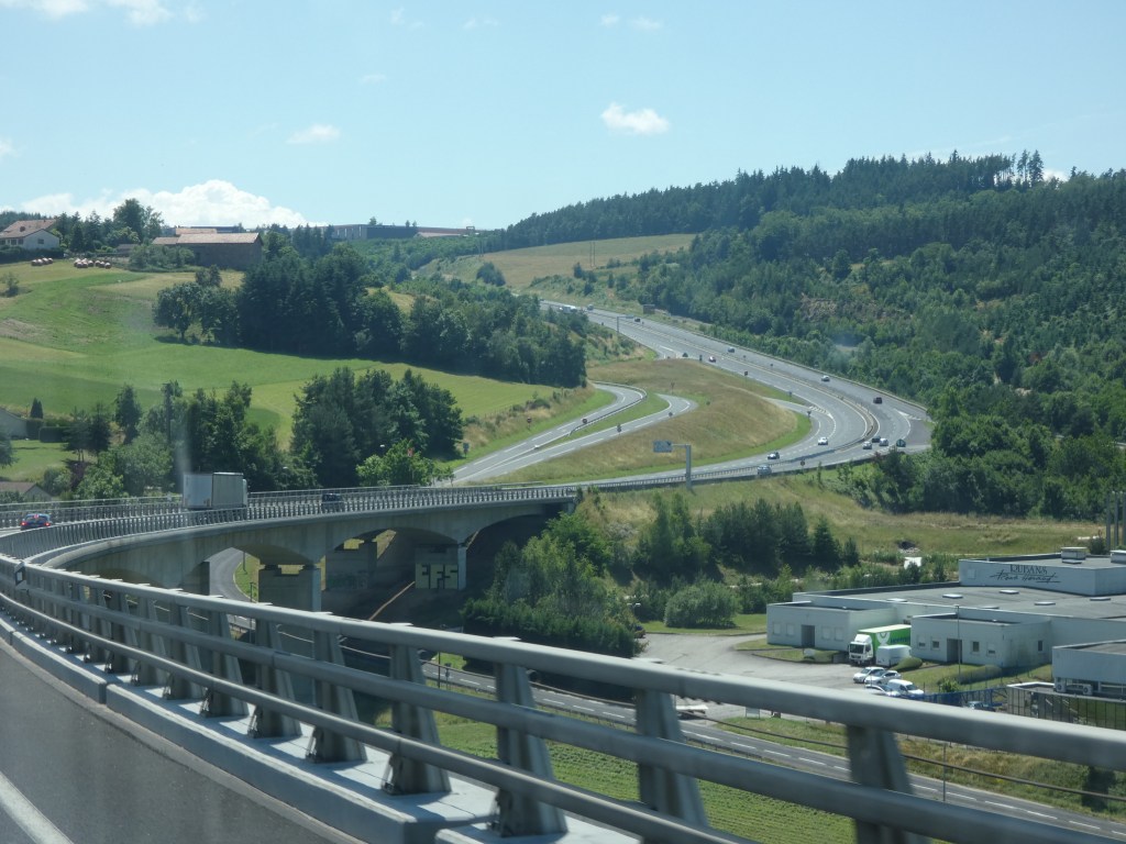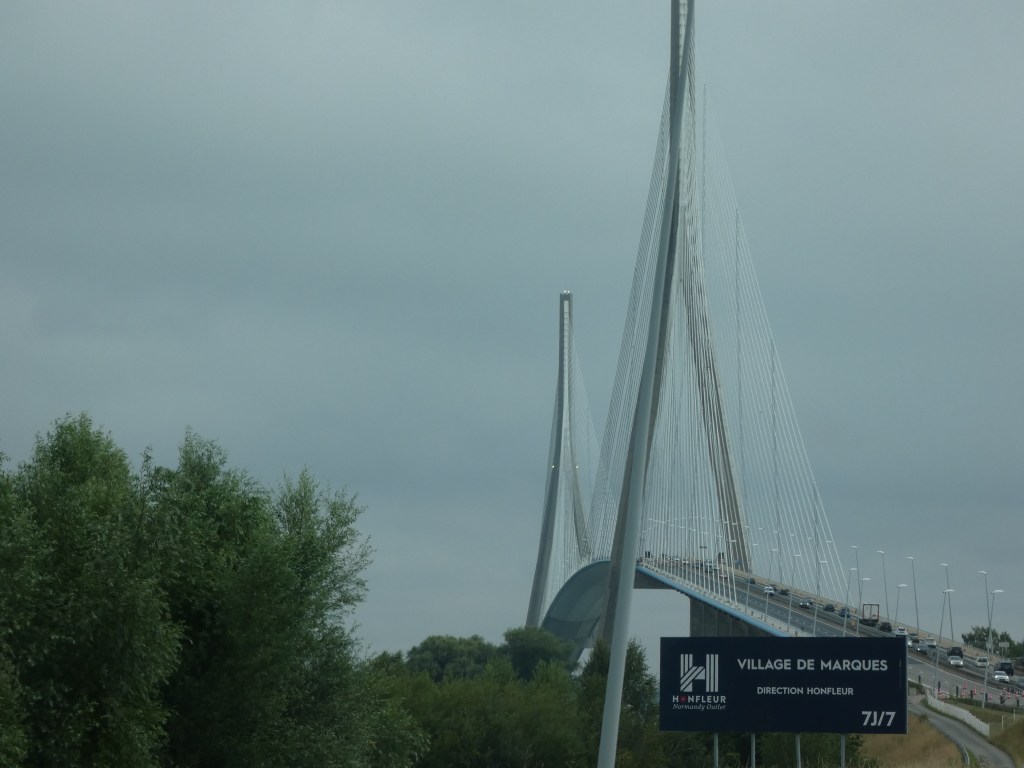 Een vroeg vertrek, de stad uit, geeft de meeste kans op rustig verkeer, ’s ochtends vroeg. Geen filestress. Niet dat ik stress heb, als ik onderweg ben, maar toch, voorkomen is beter dan in de file staan… De weg vlot goed, zelfs pont de Normandie is niet gruwelijk druk. Rond de middag eroverheen. Elke keer weer een indrukwekkend moment, die 215 meter hoge brug over de Seine, zo’n machtig bouwwerk. En de brug die ervoor ligt, is al zo leuk…