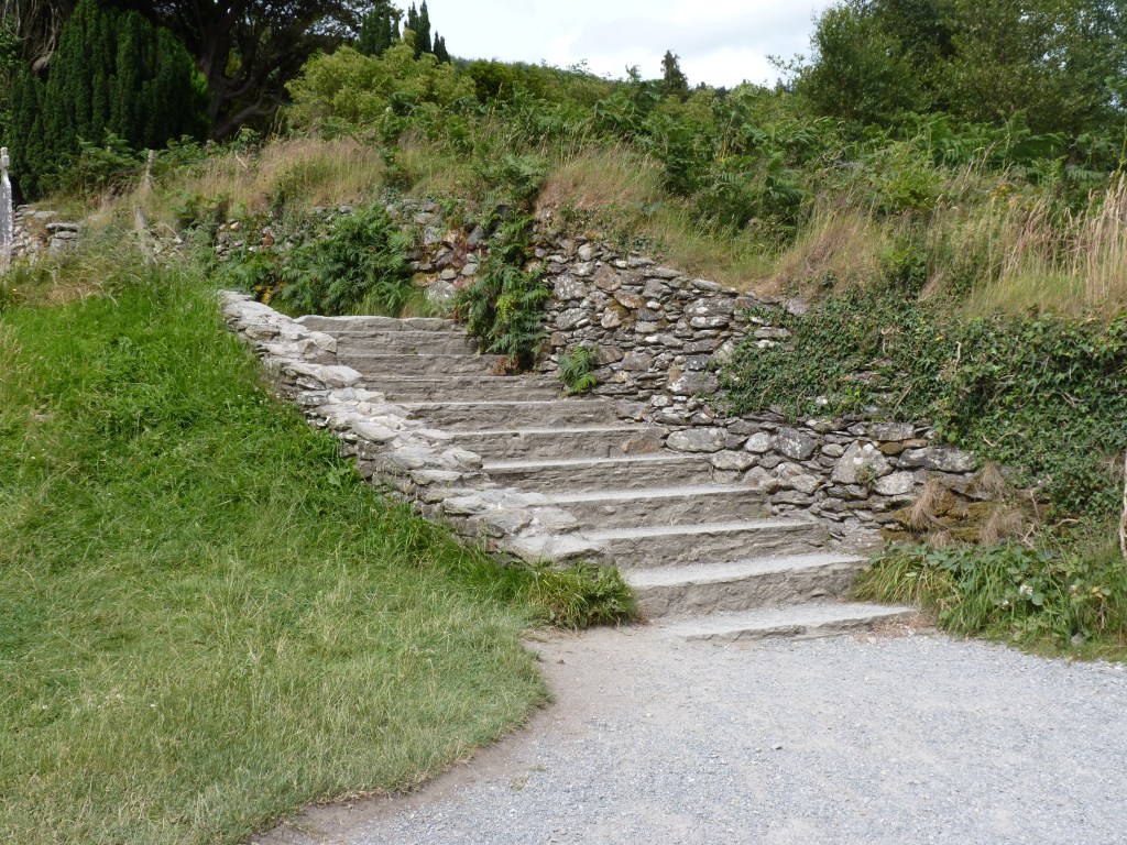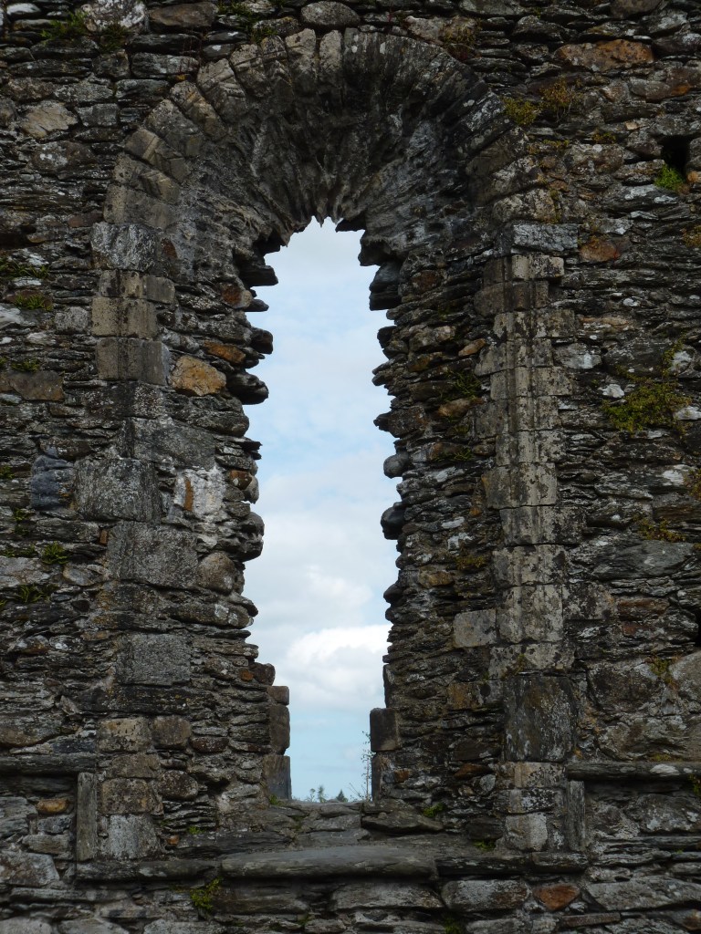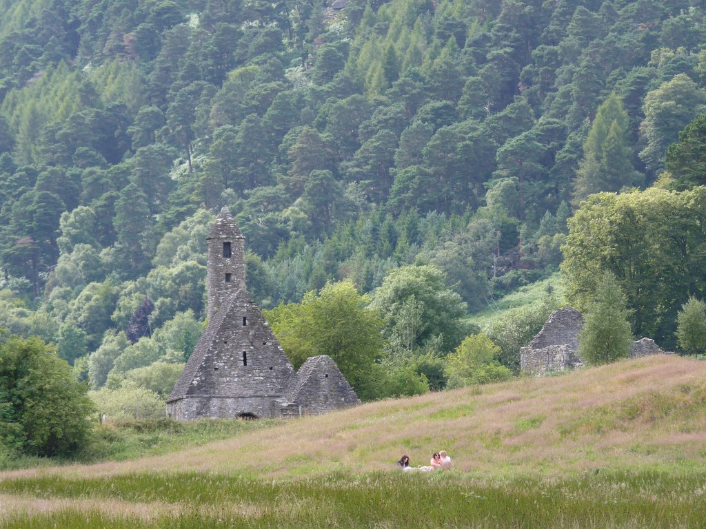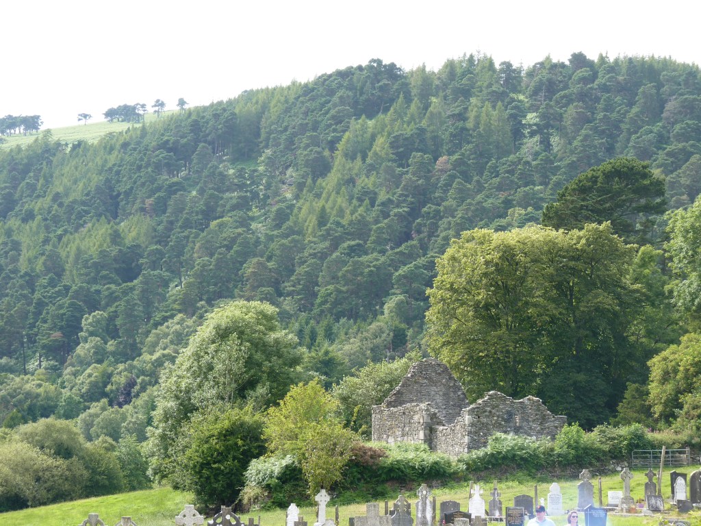 Na een uurtje op Powers Court te hebben gehangen, op weg naar nummer twee in de Wicklow Mountains…Glendalough. Het “dal van de twee meren”. Een adembenemend mooie vallei met een lager gelegen meer en een hoger gelegen meer. Bij het lower lough ligt een ruine-site, de overblijfselen van een oud klooster. Deze overblijfselen behoren tot de oudste christelijke overblijfselen in Europa…