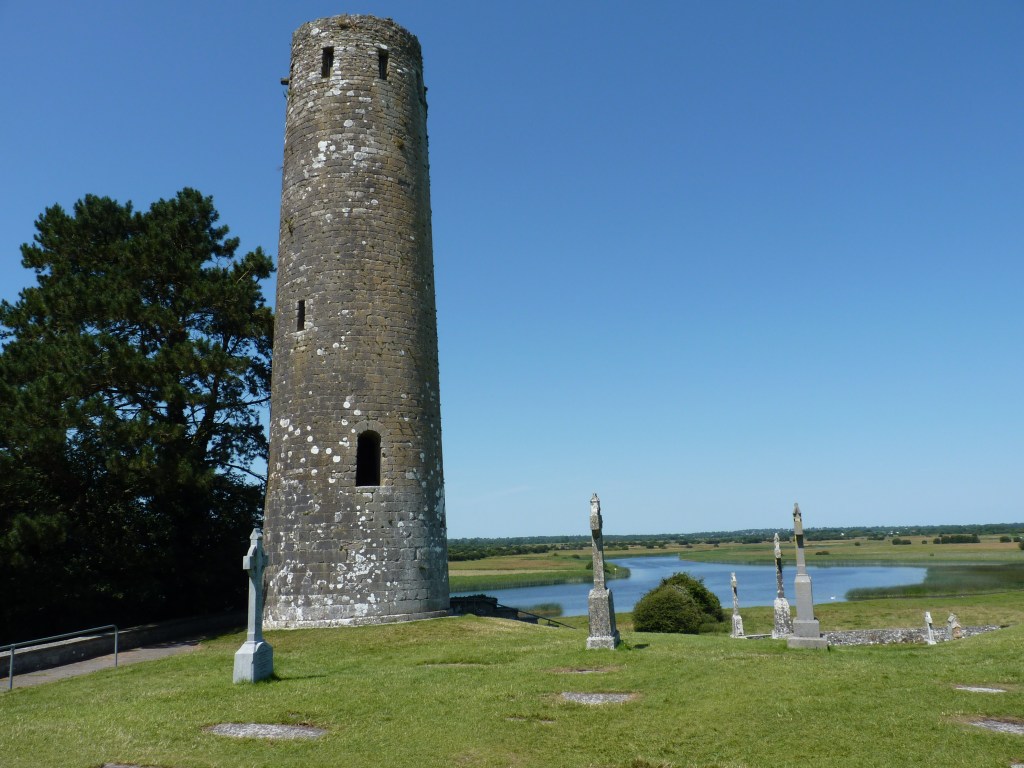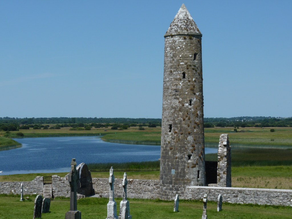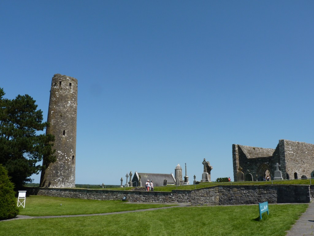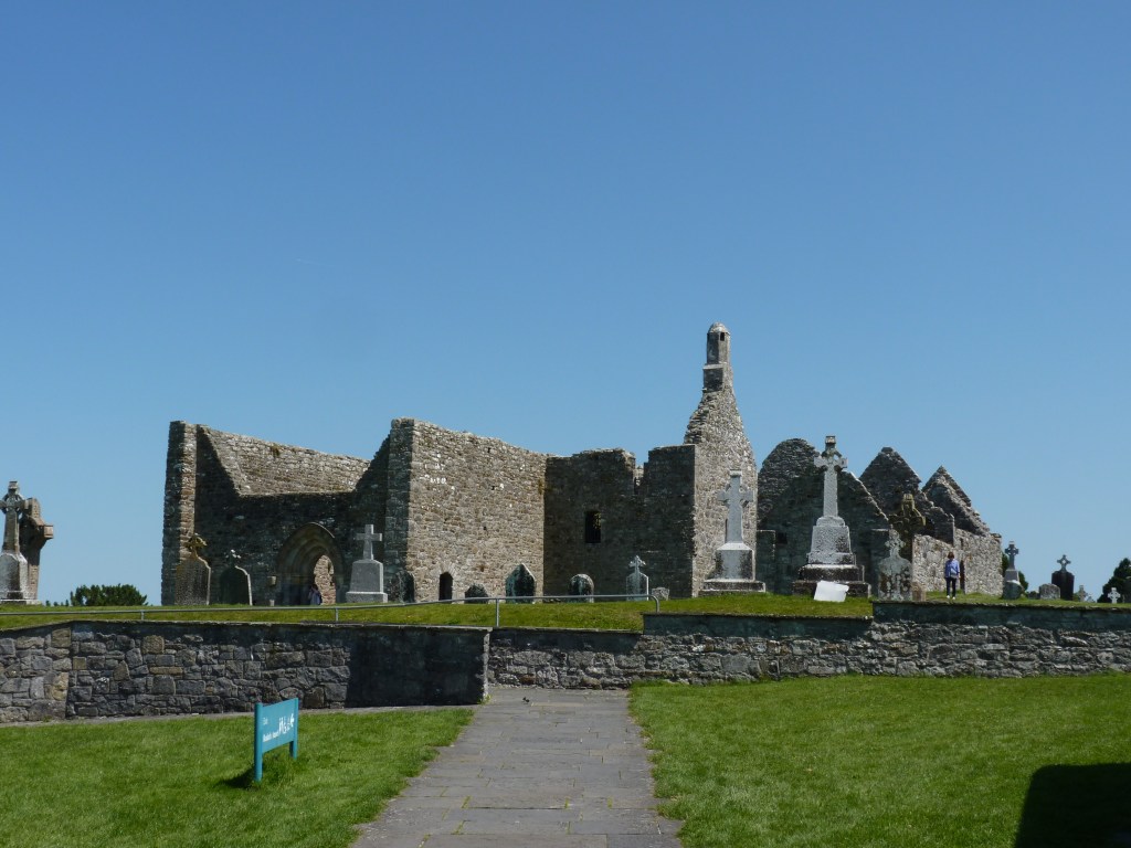 Maandagochtend, de dag van de oversteek is aangebroken. Van oost naar west, van de Ierse zee naar de Atlantic, van Dublin naar Clifden, in de Connemara. Een tripje van een dikke driehonderd kilometer, op het gemak. Niet zonder een bezoek aan Clonmacnoise…Deze kloostersite kent zijn begin in 544. Een prachtige site aan de oever van de Shannon, Ierlands belangrijkste rivier. Met goed weer…wat wil je nog meer…Het zijn ruïnes, natuurlijk, maar er is veel te zien en met een beetje fantasie….