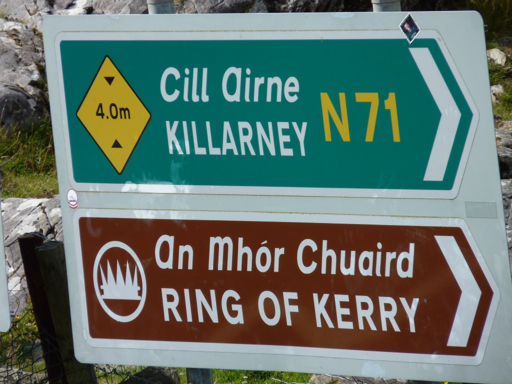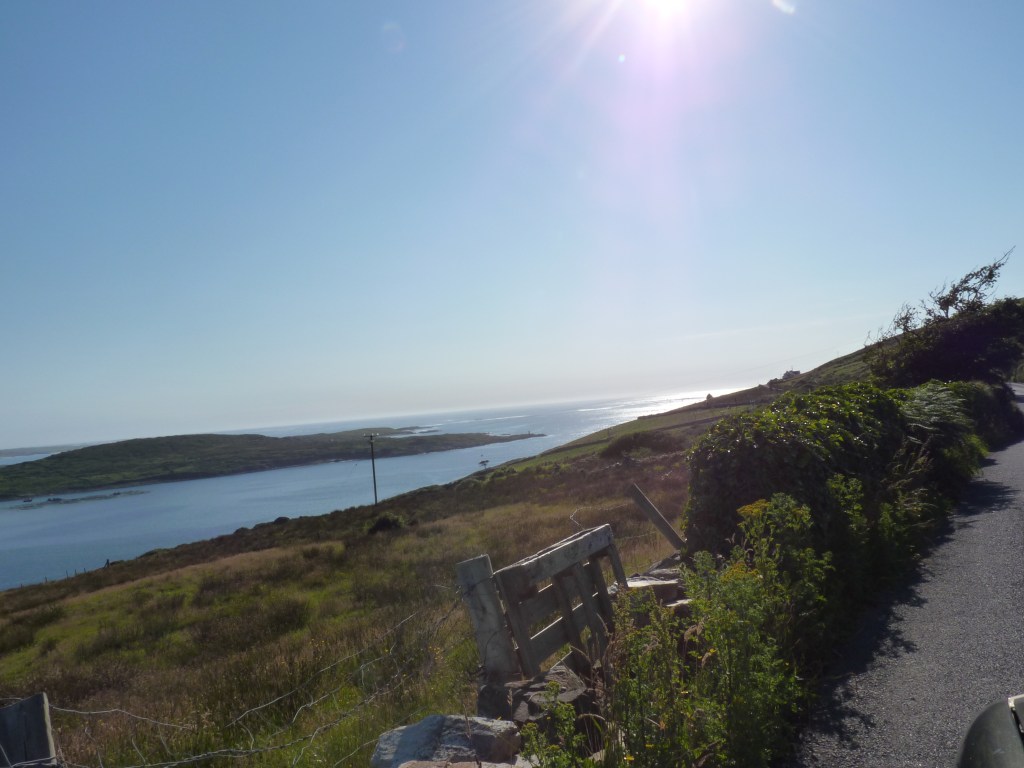 En na het bezoek aan de cliffs of Moher, is de zon al royaal over het middaguur heen…tijd om verder te gaan. Het laatste stuk leidt naar Castlemaine, een plaatsje aan de rivier de Maine, vlakbij een begin van de ring of Kerry. Zowel Kerry als het iets zuidelijker gelegen Beara zijn uitstulpingen van Ierland, waar je een prachtige weg omheen kan volgen. De ring of Kerry is het meest bekend, maar de lokale mensen proberen toch heel trots ook de aandacht te vestigen op de ring of Beara, die minstens even mooi is, zoniet nog mooier. Echter, keuzes zijn er om gemaakt te worden. En het vervolg van mijn weg ligt langs de ring of Kerry en dus zal het die weg zijn…