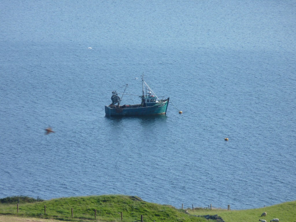 Maar voor ik daar ben, eerst nog 2,5 uur rijden. Met een mooie oversteek van de rivier Shannon. De ferry van Killimer naar Tarbert. Op dit punt zit je eigenlijk al in de rivierdelta, bijna in de oceaan. Te snel om te fotograferen, maar we hebben dolfijnen gezien, een kleine school, die vrolijk springend met de veerboot meezoeft. Een paar minuten genieten, maar ze zijn te snel en moeilijk te volgen, dus foto’s maken is er niet bij, jammer genoeg.