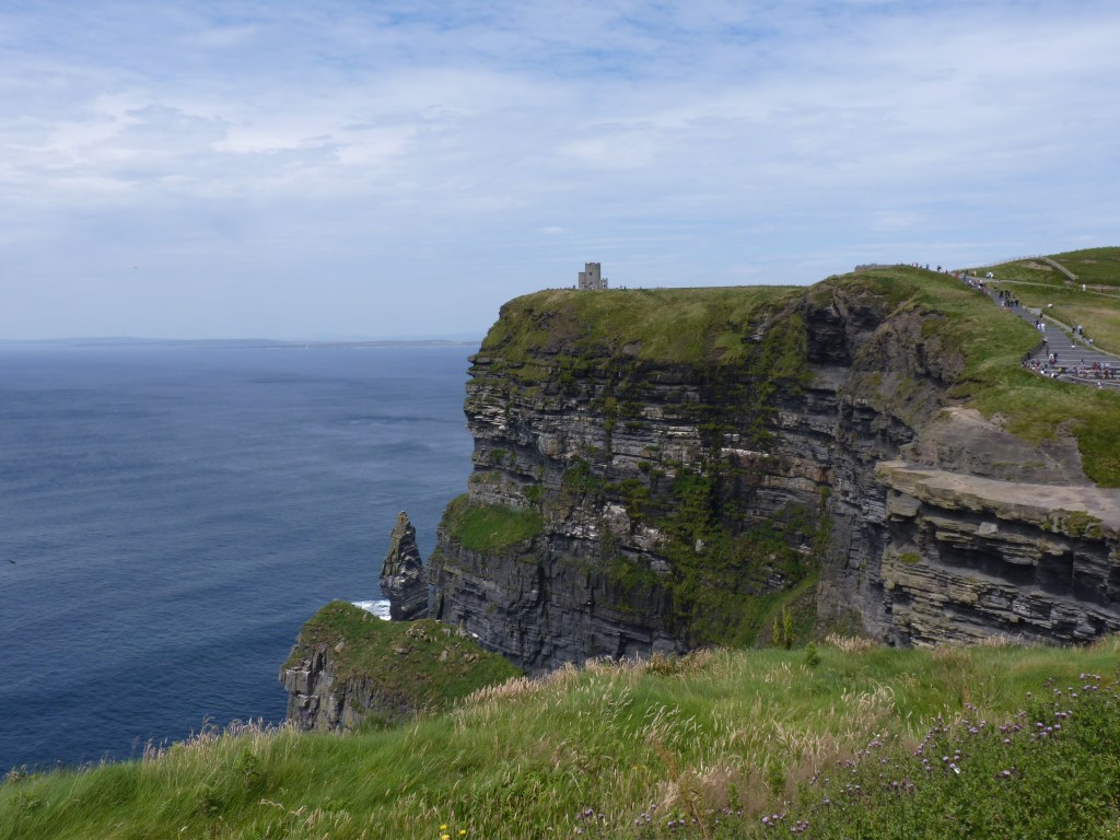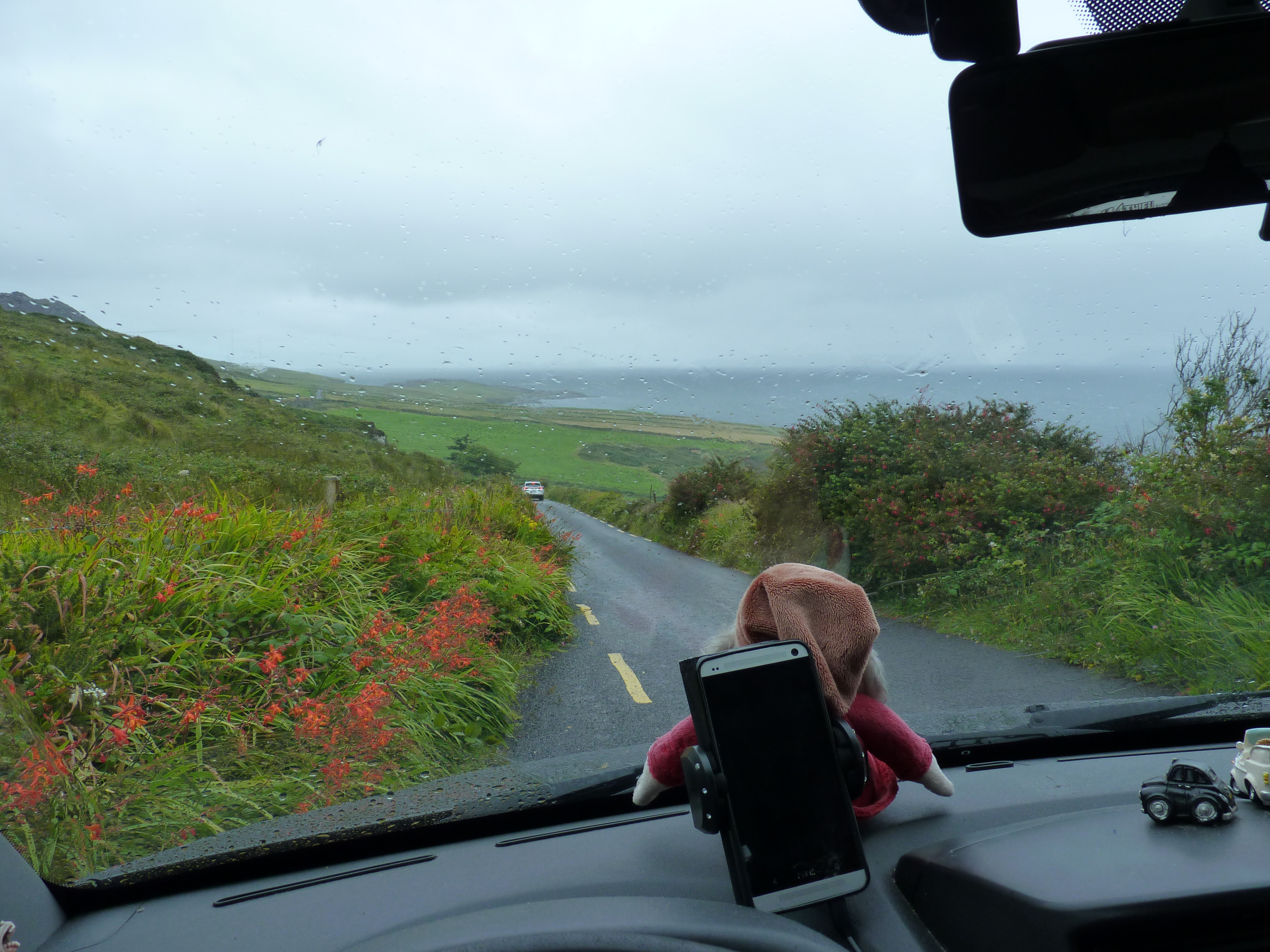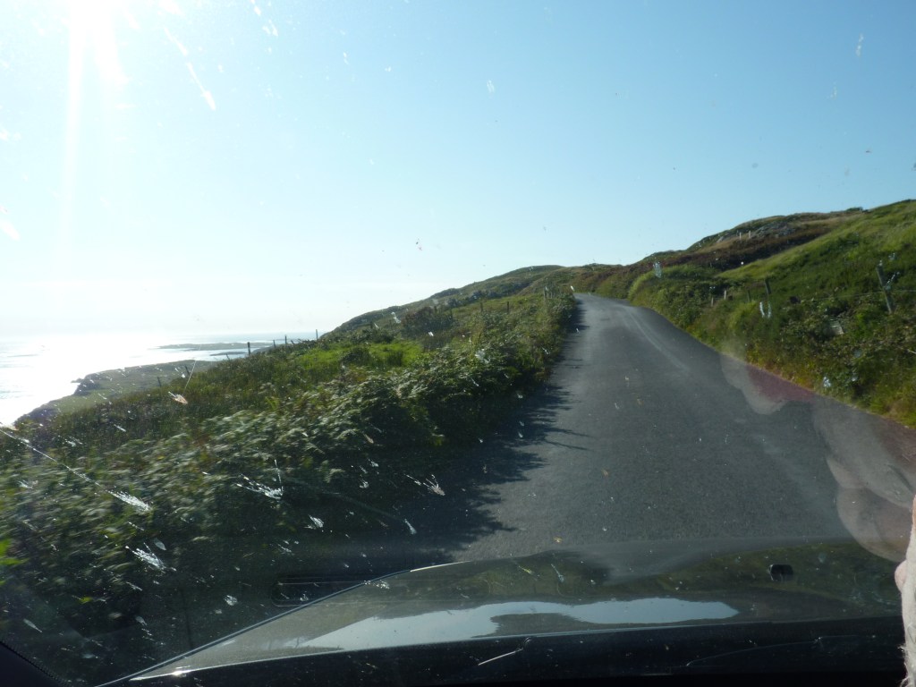 Ik scheur me los van de verslavende plek en trek zachtjes de deur achter me dicht…niet vergeten… En verder naar de cliffs… Verder langs die Wild Atlantic Way, een weg die zoveel biedt, dat je in een heel leven niet alles kan zien. De doorgaande wegen in Ierland zijn vaak van het kaliber b-wegen, als je ze hier zou vergelijken. omzoomd met hagen en muurtjes, vlak langs de weg. Je kunt geen 10 centimeter aan de kant gaan. Met een maximumsnelheid van 100 kilometer per uur (maximumspeed is no targetspeed, zo waarschuwen ze op de radio, maar toch…), constant focussen. Autorijden hier is mooi, maar vermoeiender dan bij ons. Altijd opletten geblazen…maar mooi, zo mooi…