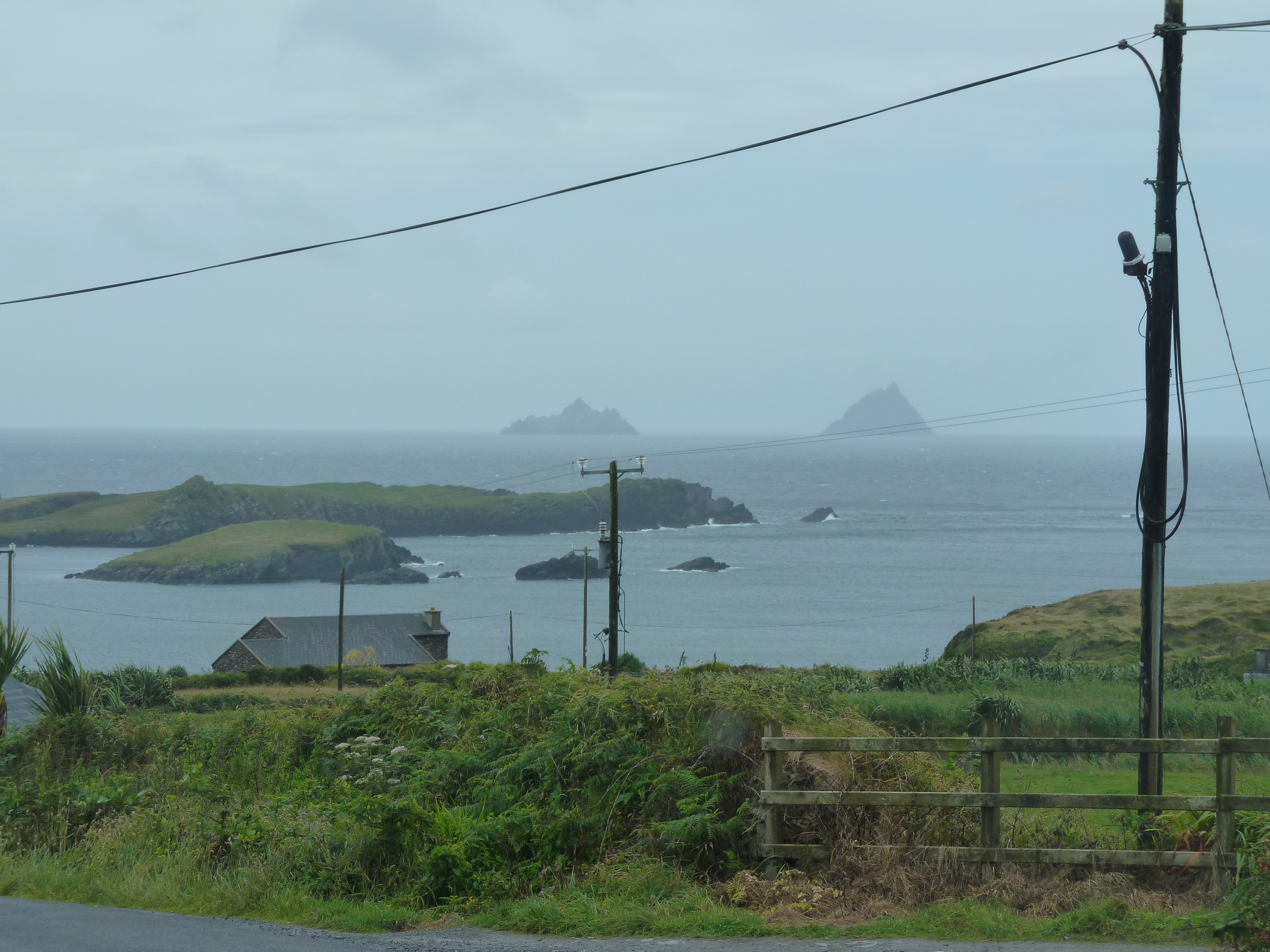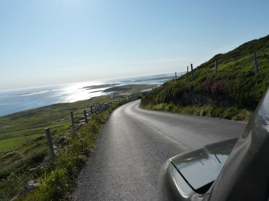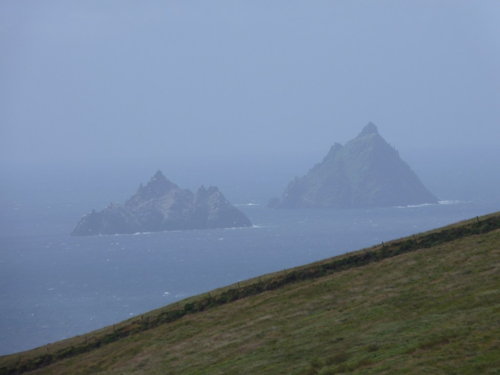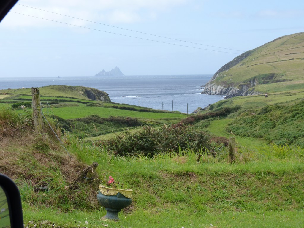 Zogauw je vanaf de brug het vasteland oprijdt, ben je weer bij de ring of Kerry. De weg slingert zich door de groene bergen langs de kust, avontuurlijk, verrassend, verbazend, met bijna een overkill aan views. Ook nog vanaf deze weg prachtig zicht op de Skellig Eilanden, die een stevige indruk achterlaten… De Skellig Eilanden zijn zelfs gebruikt voor een scene in een starwars film, dat zegt genoeg over het fantasy gehalte, lijkt me zo…