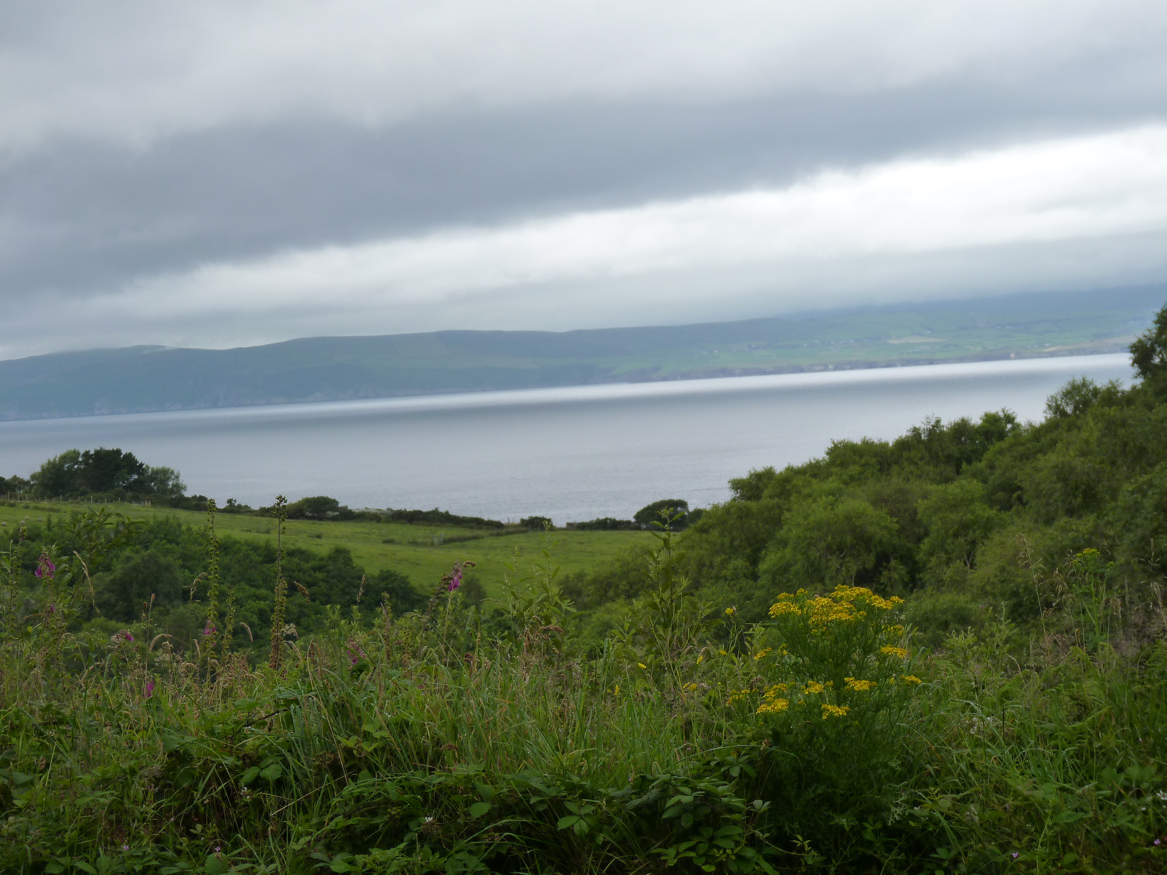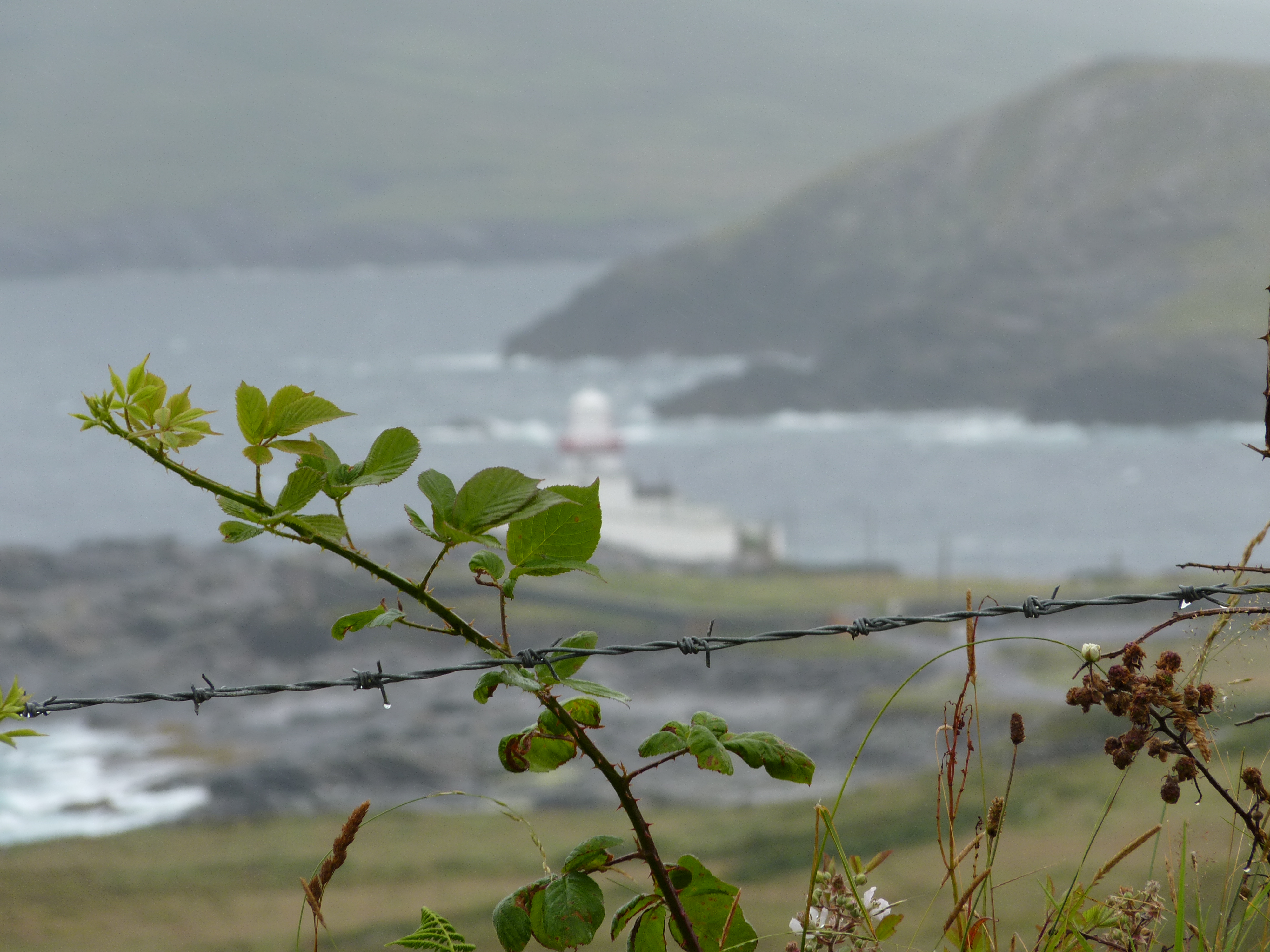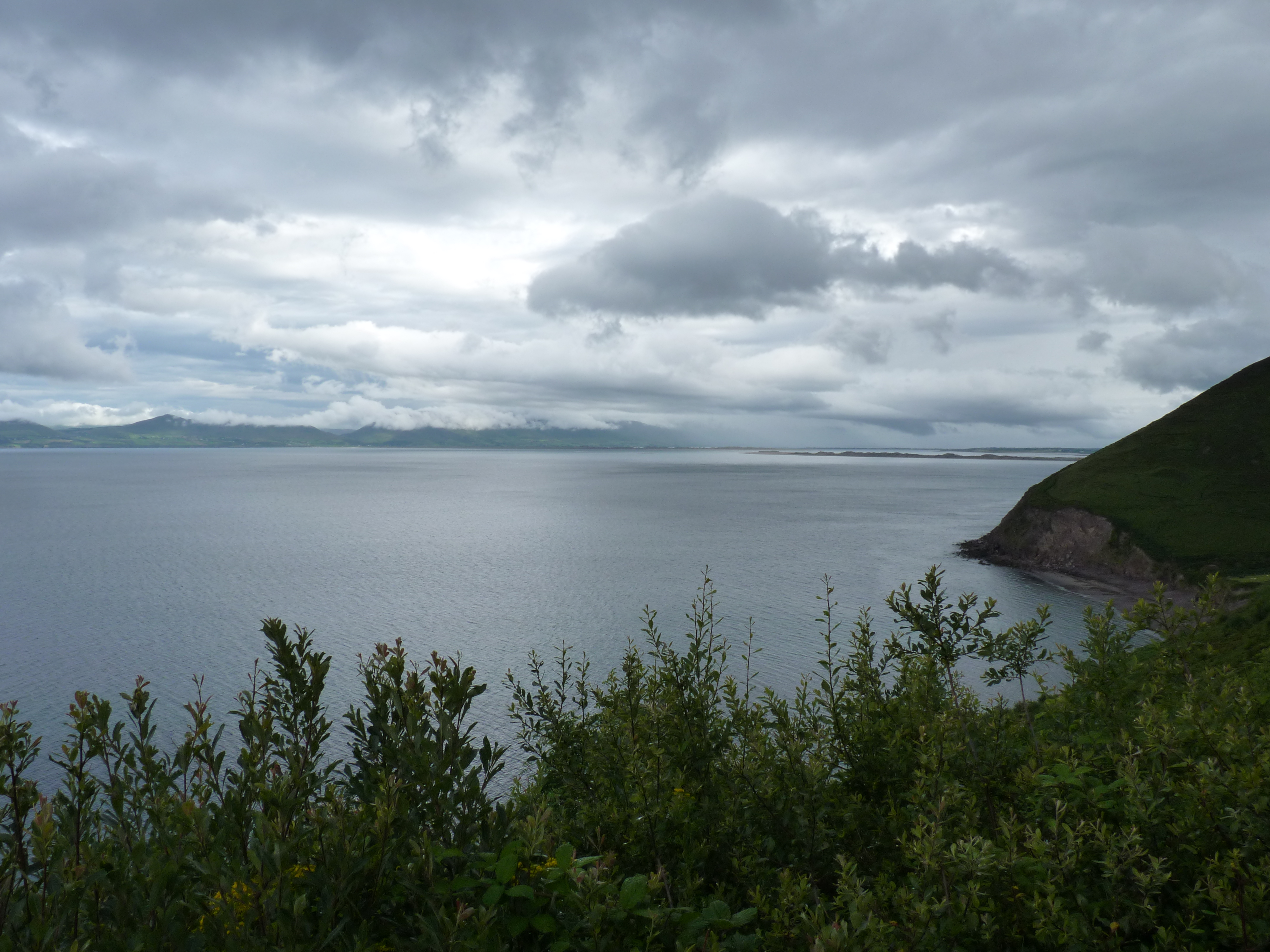 Woensdagochtend…de nacht was weer donker en stil, garant voor een deugddoende nachtrust. Al vroeg op weg. Verder over de ring of Kerry. Ik kan het blijven zeggen, een weg die de kust volgt, met uitzichten om duimen en vingers bij af te likken. geregeld stoppen en foto’s maken, je ogen uitkijken en soms eens in je arm knijpen of je ook echt gezien hebt wat je zag… Als ik voorbij Cahersiveen ben, komt Reenard point in zicht. Hier kun je de veerboot nemen naar Valentia Island….Een echt vakantie eiland. De veerboot komt aan in Knightstown, een ouder plaatsje, dat belangrijk is voor het eiland. Prachtig onderhouden gebouwen. Vorige keer dat ik hier was, was het stralend weer, nu komt er toevallig een fikse bui overzetten. Desalniettemin, een goed gevoel. Als je de film Jaws hebt gezien, en je komt bij Valentia island, krijg je een beetje hetzelfde gevoel als je met de veerboot aankomt. Een echt eiland-vakantiegevoel…