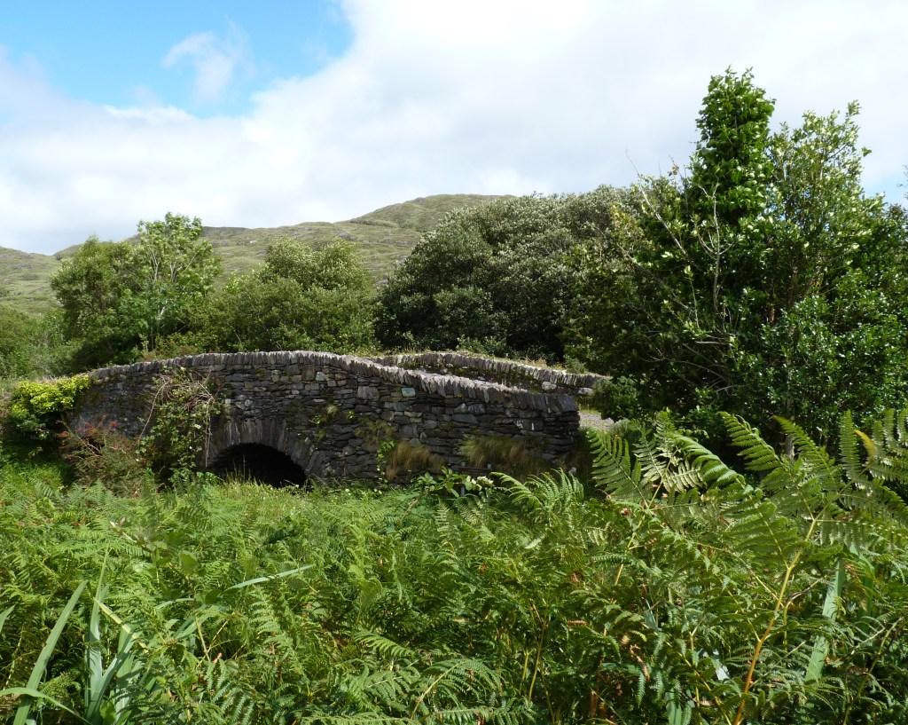 Dan weer de auto in en verder over het eiland. Een tripje over smalle wegen die gewoon lijken te zijn uitgerold over het bestaande landschap, op en neer en alle kanten op, met hellingspercentages die er soms niet om liegen. Onvergetelijk mooi. Bijna op het eind van het eiland ligt The Skellig Experience, een visitor centre dat alles te maken heeft met de Skellig eilanden, die daar voor de kust liggen. Daar krijg je best een goed zicht op die eilanden. Twee rotsachtige eilanden die op de Unesco werelderfgoedlijst staan. Op de top van great Skellig, staan de overblijfselen van een vroeg-middeleeuws klooster. Tegenwoordig niet meer bewoond door mensen , zijn de eilanden een uitgelezen toevluchtsoord voor voornamelijk Jan-van genten en papegaaiduikers. Een groot vogelreservaat. Zeker met wat slechter weer, doen de eilanden mysterieus aan en met wat fantasie…. In plaats van terug te rijden en de veerboot terug te nemen, kun je hier ook de brug over, de enige verbinding van het eiland met het vasteland, bij Portmagee.