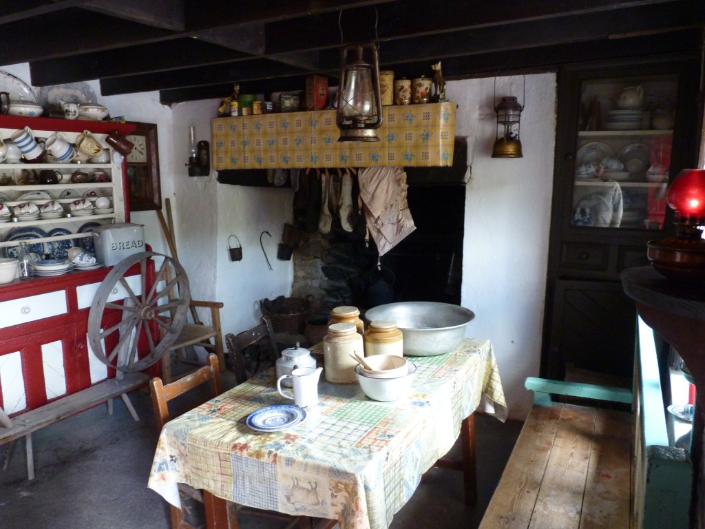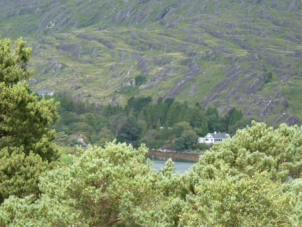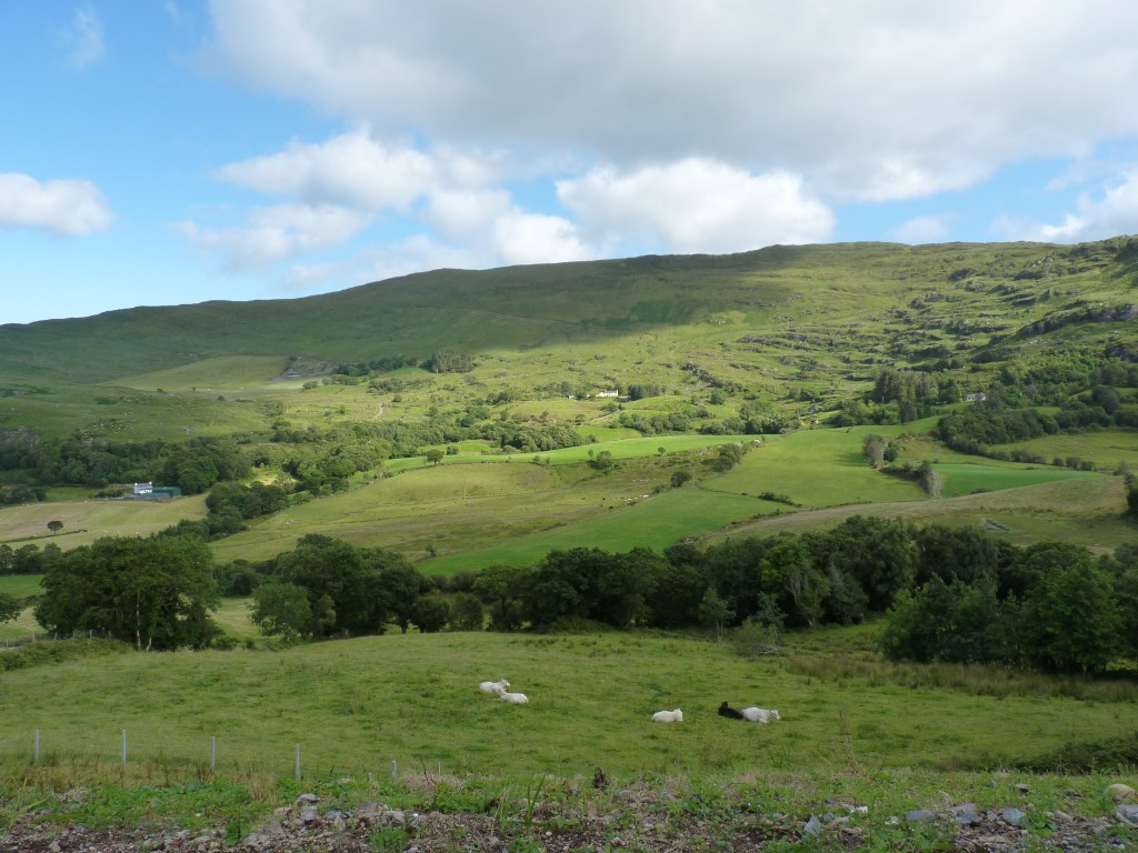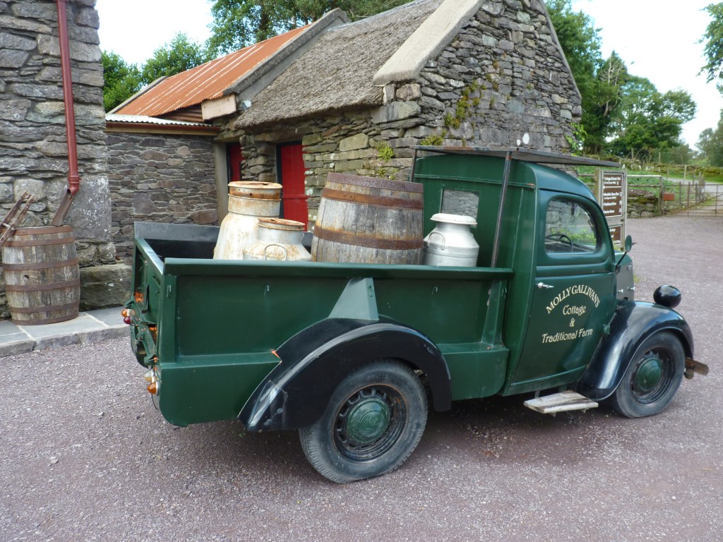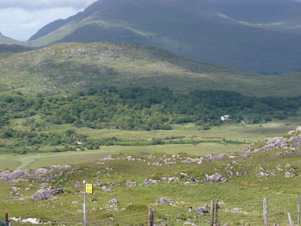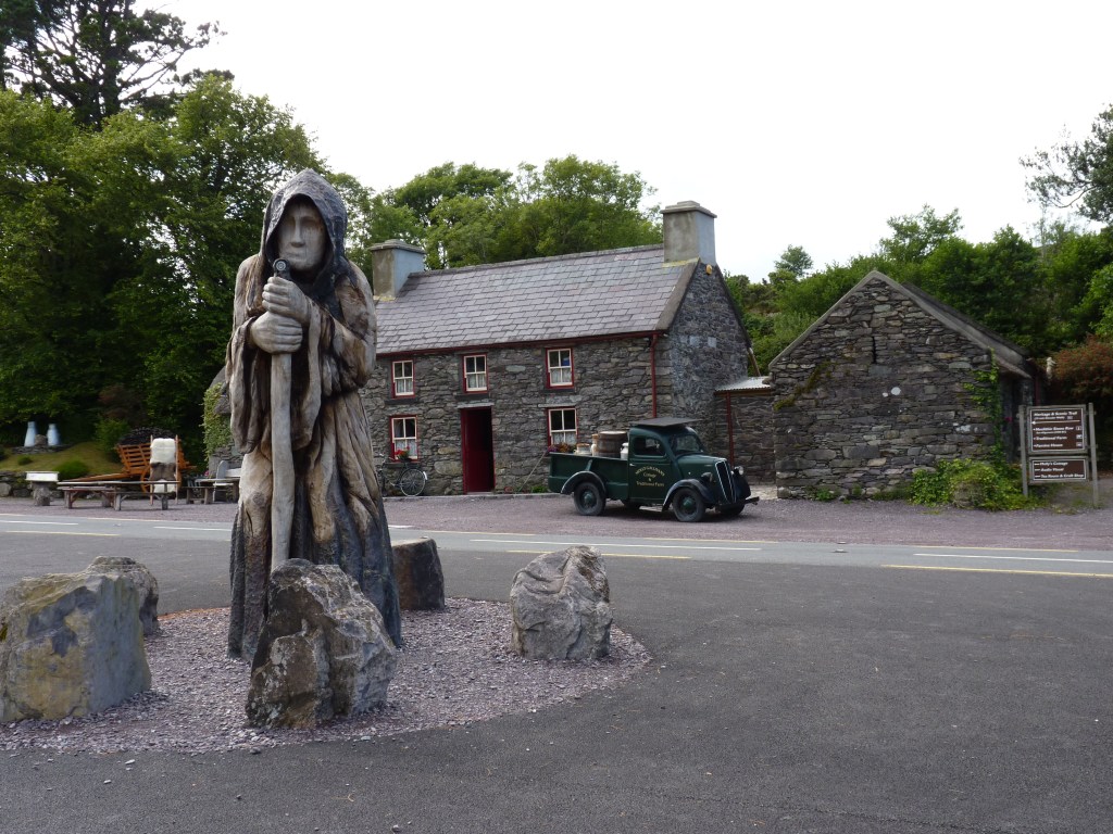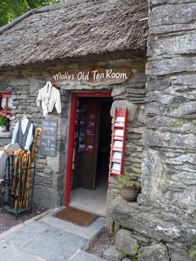 Onwards we go…. vandaag rij ik nog even door naar Glengariff, ongeveer bij het begin van de zuidelijker gelegen ring of Beara, waar ik het eerder over had. Ik ben bij Killarney aangekomen, leuk stadje aan het begin/eind van de ring of kerry. Nu even een stukje terug op mijn sporen om naar Glengariff te rijden. een stukje terug over de ring of Kerry en dan zuidwaarts. Nog iets van een uurtje rijden. Halverwege weer zo’n leuke plek waar je niet zomaar door kan rijden…Molly Gallivans cottage and traditional farm. Ook bekend als Druid’s view….Prachtig zicht over een vallei. een oude cottage, gedeeltelijk ingericht volgens old times , als blikvanger bij een winkel met allerlei portemonneeleegmakende objecten… Niet zomaar een souvenirshop, maar meer iets met plaatselijke dingen, voeding, kleding, kunst, souvenirs, vanalles… En veel mooie oude dingen om te bekijken. En the druid’s view…..
