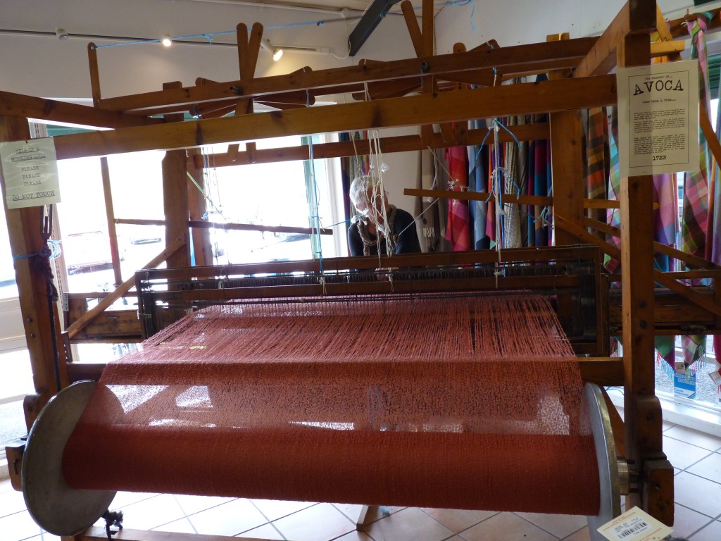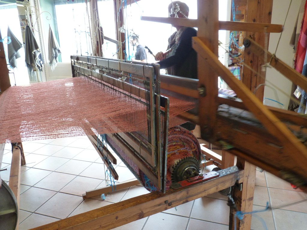 Nog iets leuks onderweg…..Het stopt niet…ik stop wel en ga even binnen , want er staat een oud weefgetouw en een vrouw is daarmee aan het werk. Iets dat je niet zomaar alle dagen ziet, dus …