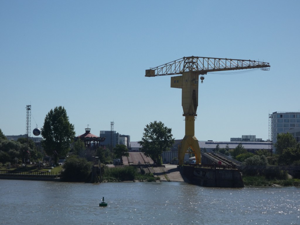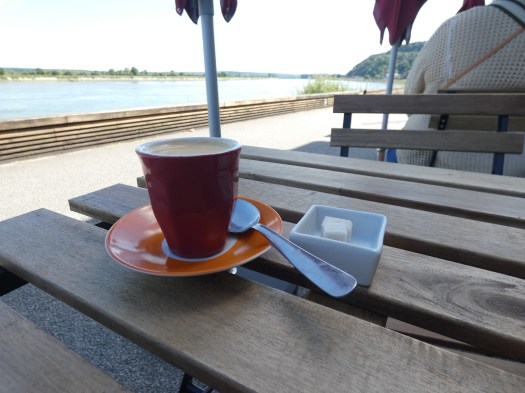 De koffie smaakt hier, op dit terrasje vlak aan het water, als nectar, de setting is meer dan perfect en het blijkt later een plaatsje, zo onbeduidend als het dorpje zelf is, een plek waar ik me met hartepijn van los moet scheuren. De scheepvaart is hier, al een heel stuk dichterbij de monding, wat drukker en je ziet best wat vrachtschepen en kustvaarders. Niet zoveel als Maas of Rijn, het is nooit heel druk, maar toch al heel wat meer dan ik eerder had gezien.