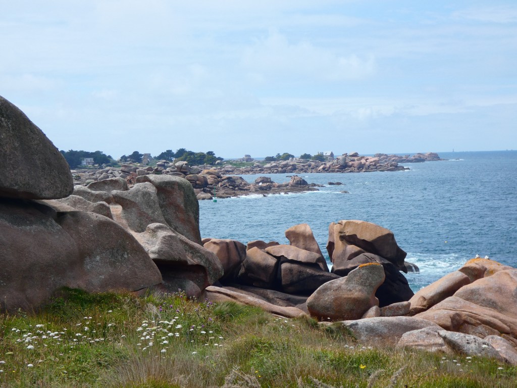 Woensdag, op naar Ploumanach. Perros Guirec, het gebied met de roze graniet. Grote rotsen, rondgesmeten door reuzen, zo lijkt het. Het landschap aan de kust ligt ermee bezaaid, met vreemdgevormde, enorme granietrotsen met die speciale roze kleur. Een lange wandeling vol verbazing en vol foto’s….dit is niet niks. Blij dat ik dit niet gemist heb.
