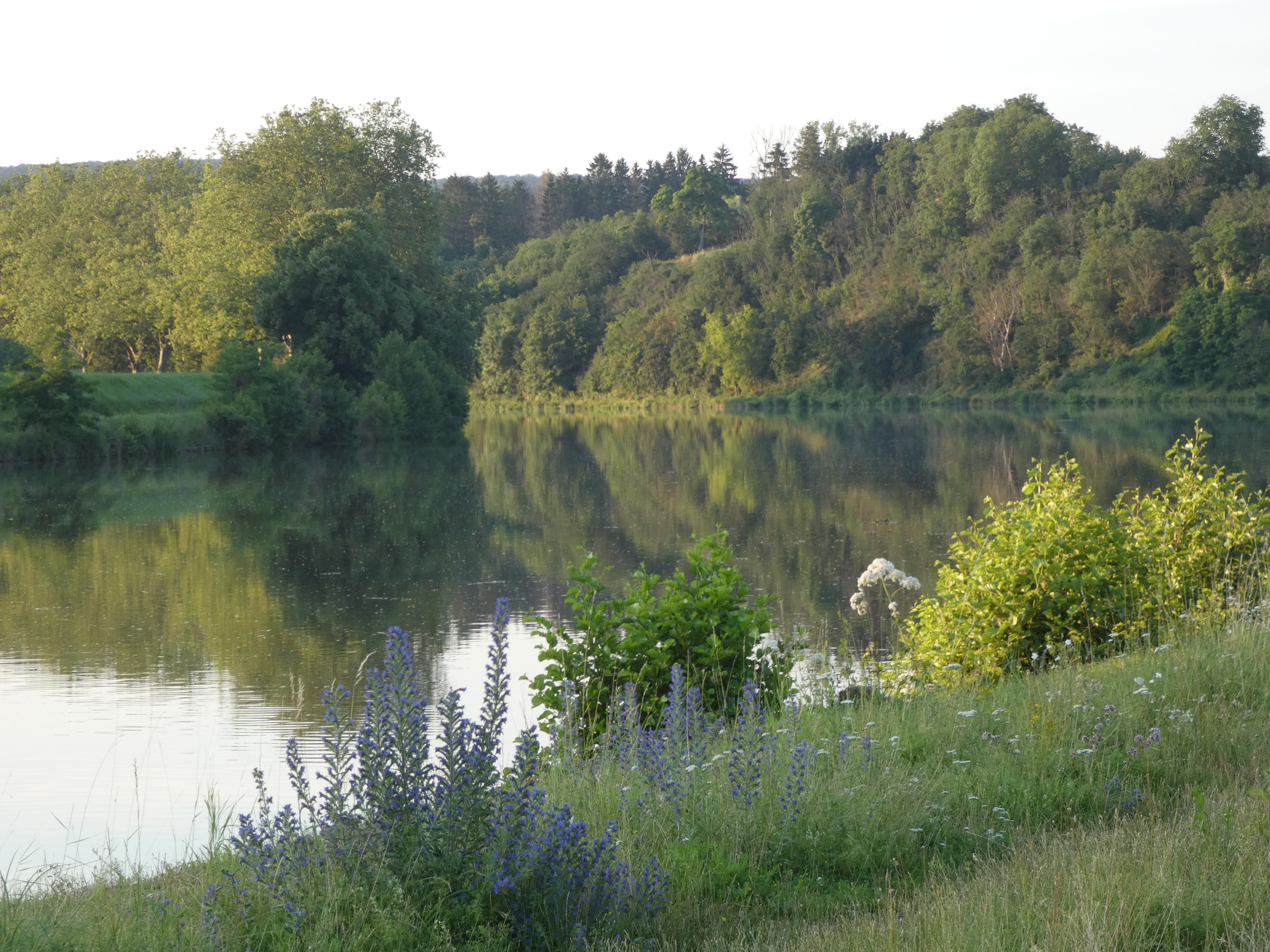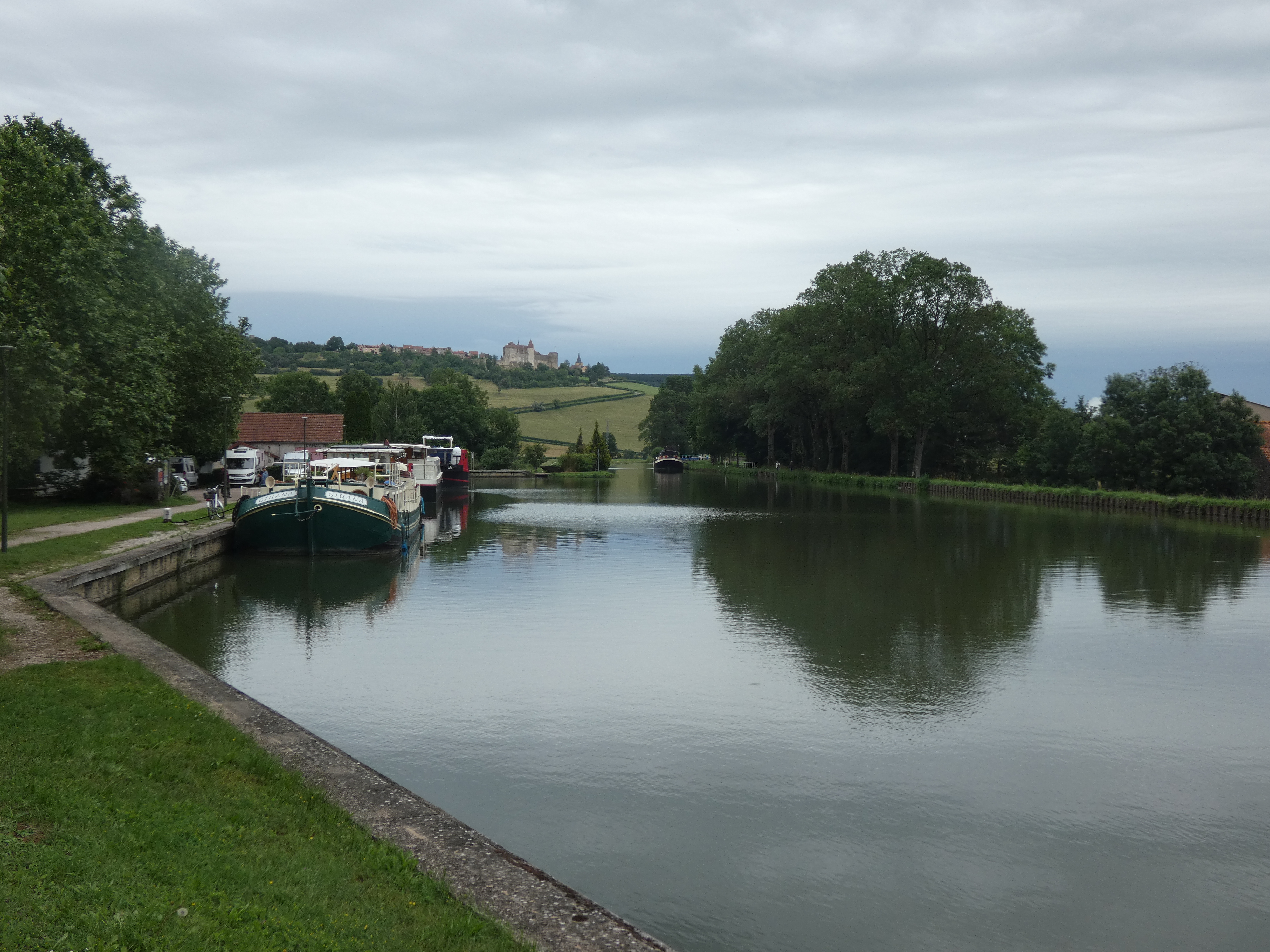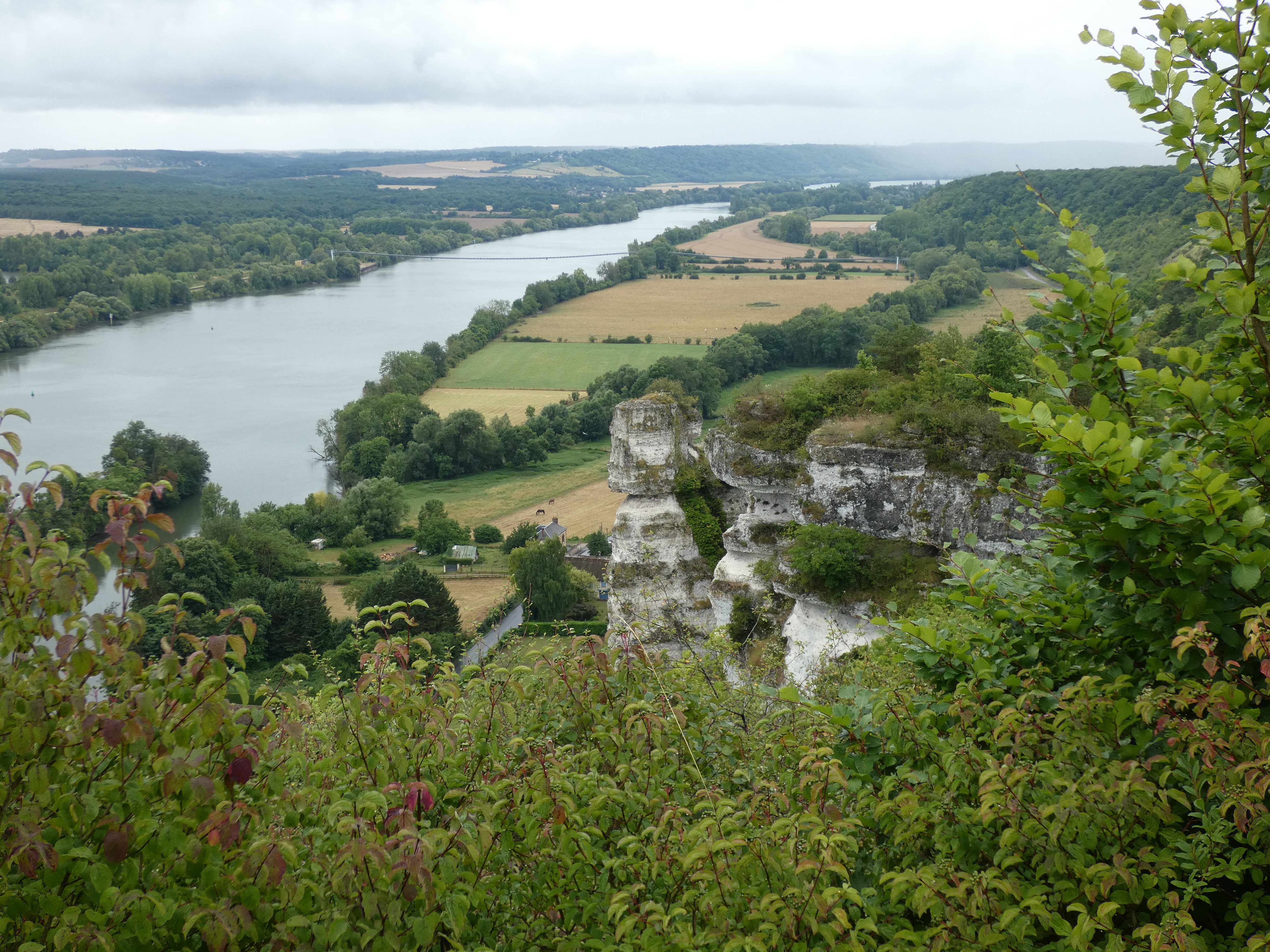 Als je zo op de kaart kijkt, is de Seine een rivier, die ontzettend meandert. Ze slingert zich in grote bochten door haar vallei, doorheen een landschap vol rotsige hellingen. Het doet qua bochtenwerk aan de Moezel denken, alleen zijn de hellingen verder van de rivier verwijderd, zodat je elke keer een brede vallei hebt. Veel hoge panoramapunten en omdat de rivier zo meandert, duurt het best nog een dag, voordat het moment komt dat ik uiteindelijk afscheid moet nemen van het laatste zicht op Parijs, dat tot heel ver blijft terugkomen. het verveelt nooit, voelt als een oude bekende die je begeleidt op je tocht. Een warm gevoel. prachtige streek met overdadig veel groen, blessed by the river.
