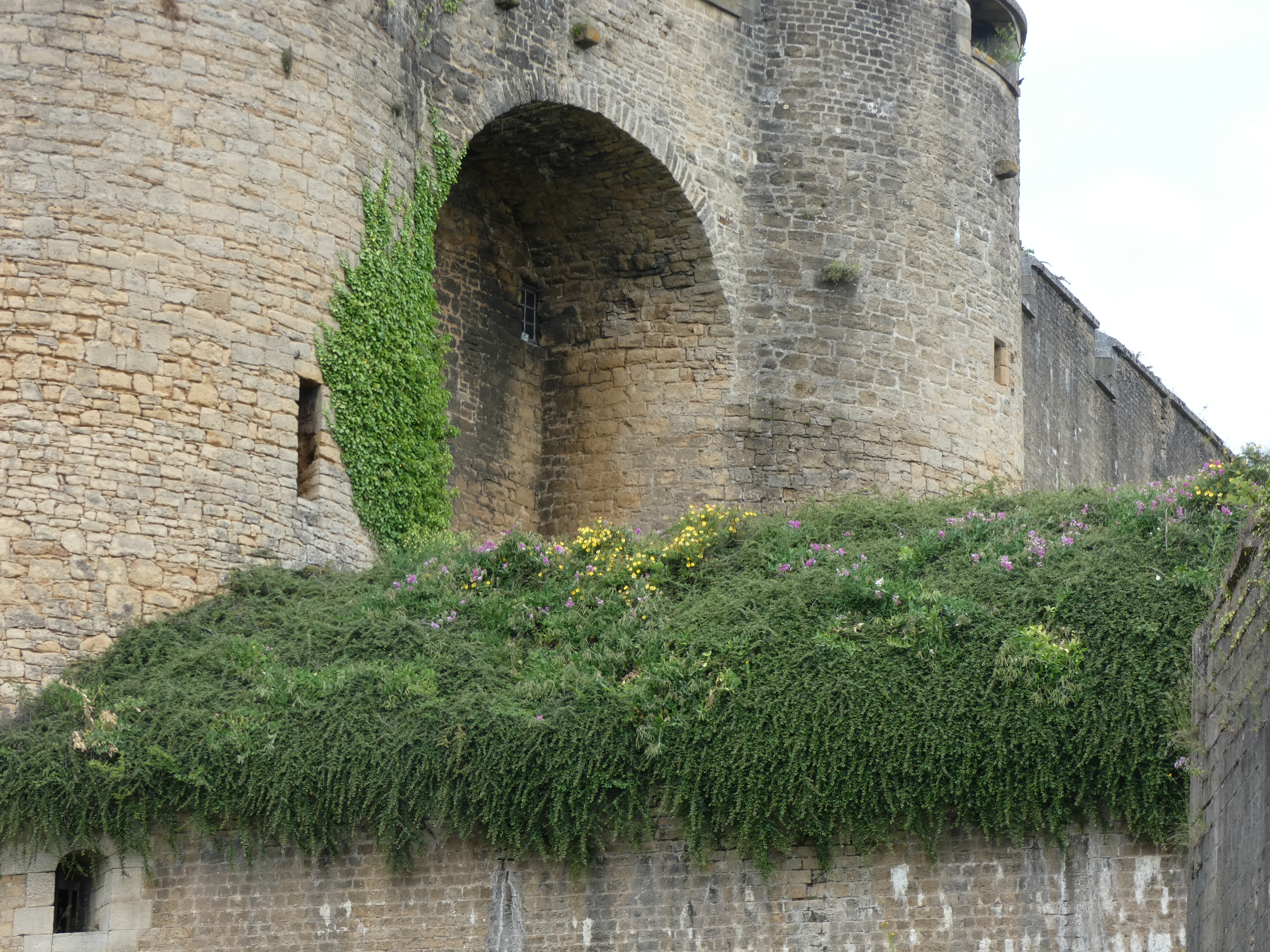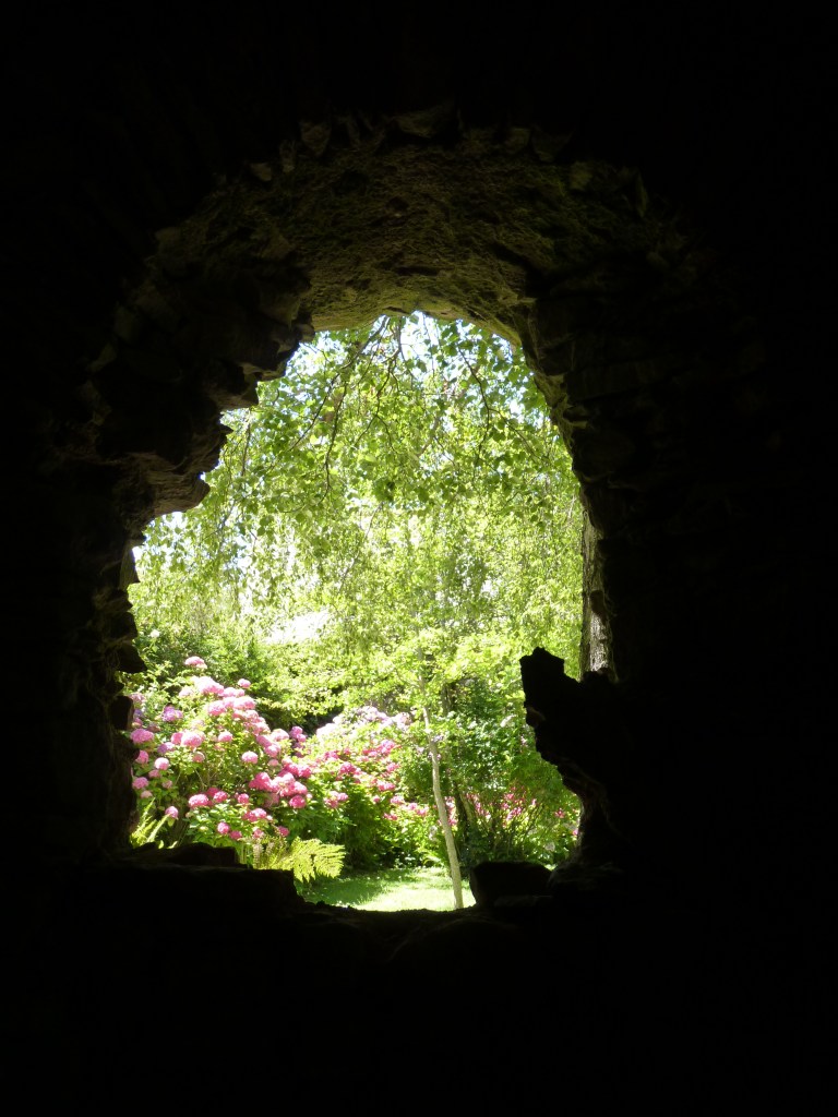 Het kasteel is zalig om doorheen te zwerven en je fantasie te laten gaan, veel is nog aanwezig, het is niet zomaar een hoopje stenen. ALs je buiten de omwalling bent, kun je helemaal om het kasteel heen lopen, door de tuinen. Het zonnetje schijnt voor de verandering en het is een graad of 17, dus het is volop genieten tussen de vele bloemen en ronddwarrelende vlinders.