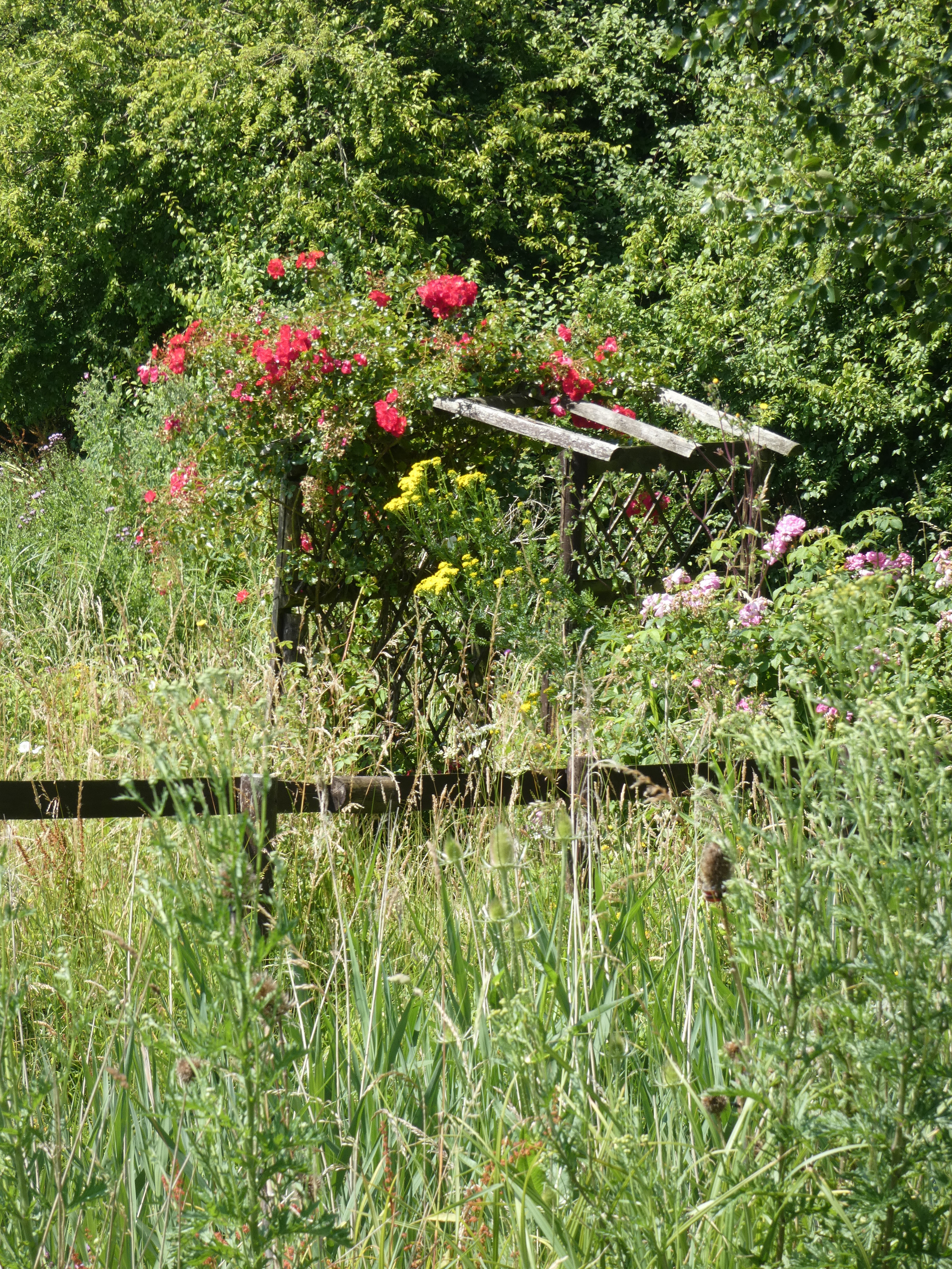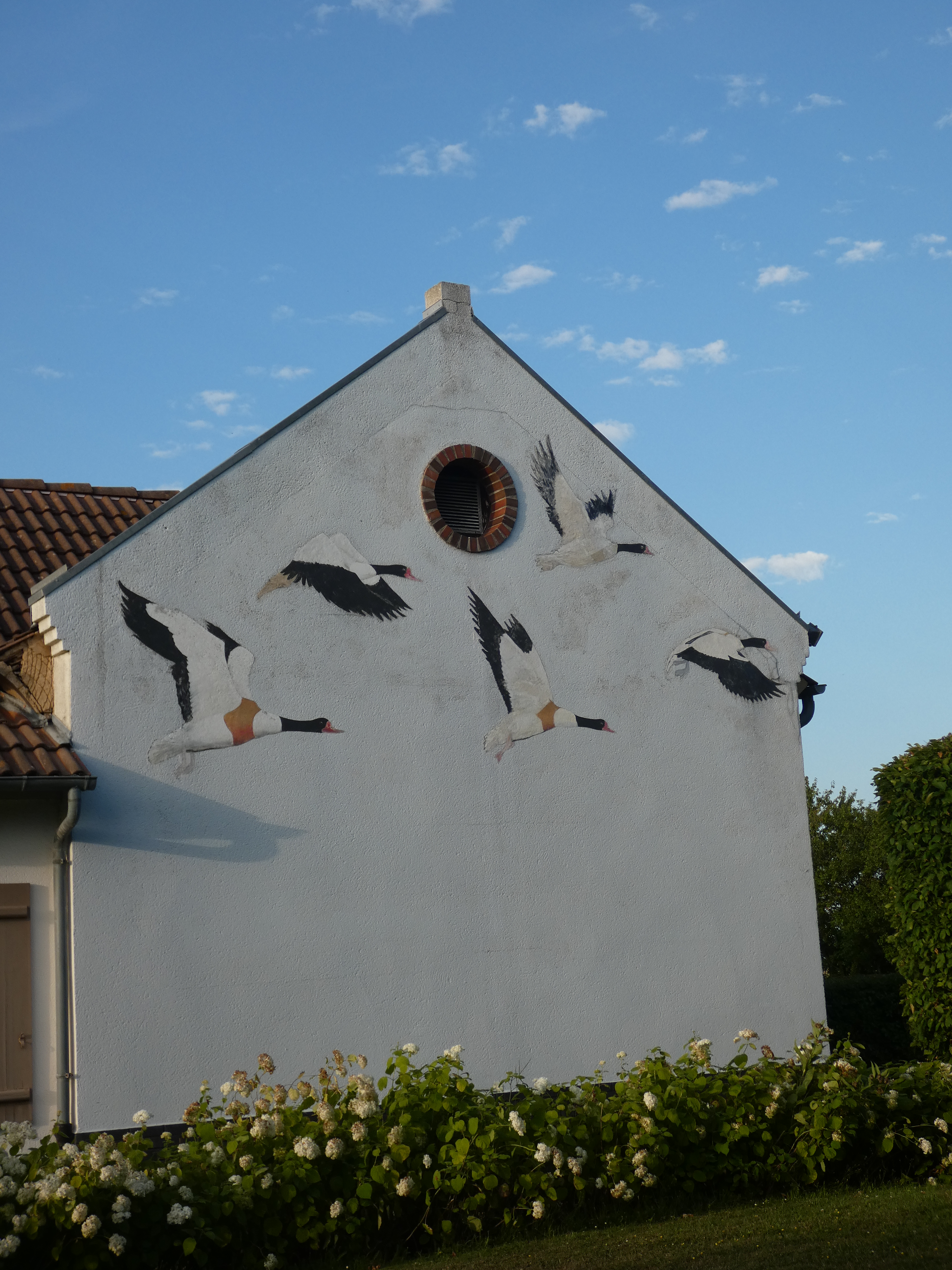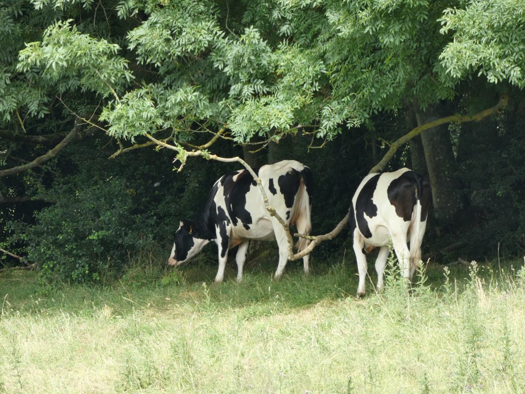 Hij vertelt verder nog dat er een koppel dassen in de haag woont en terwijl ik koffie zit te drinken, komt een egel op zijn gemak uit de haag om verderop naar het hogere gras te lopen, tijd voor zijn avondmaal… Ik hou van die hagen, we kennen dat hier niet zo, die hagen met minstens vijf grote, verschillende planten, bramen, vlier, vanalles. Ze zitten vol met dieren, heel veel vogels, omdat heel veel insecten ook hun woning in die hagen hebben. Als ik ergens van geniet, is het wel van die hagen, vol van leven….Alleen daarvan al kun je uren genieten, als je stil bent en goed oplet…listening to the hedges…