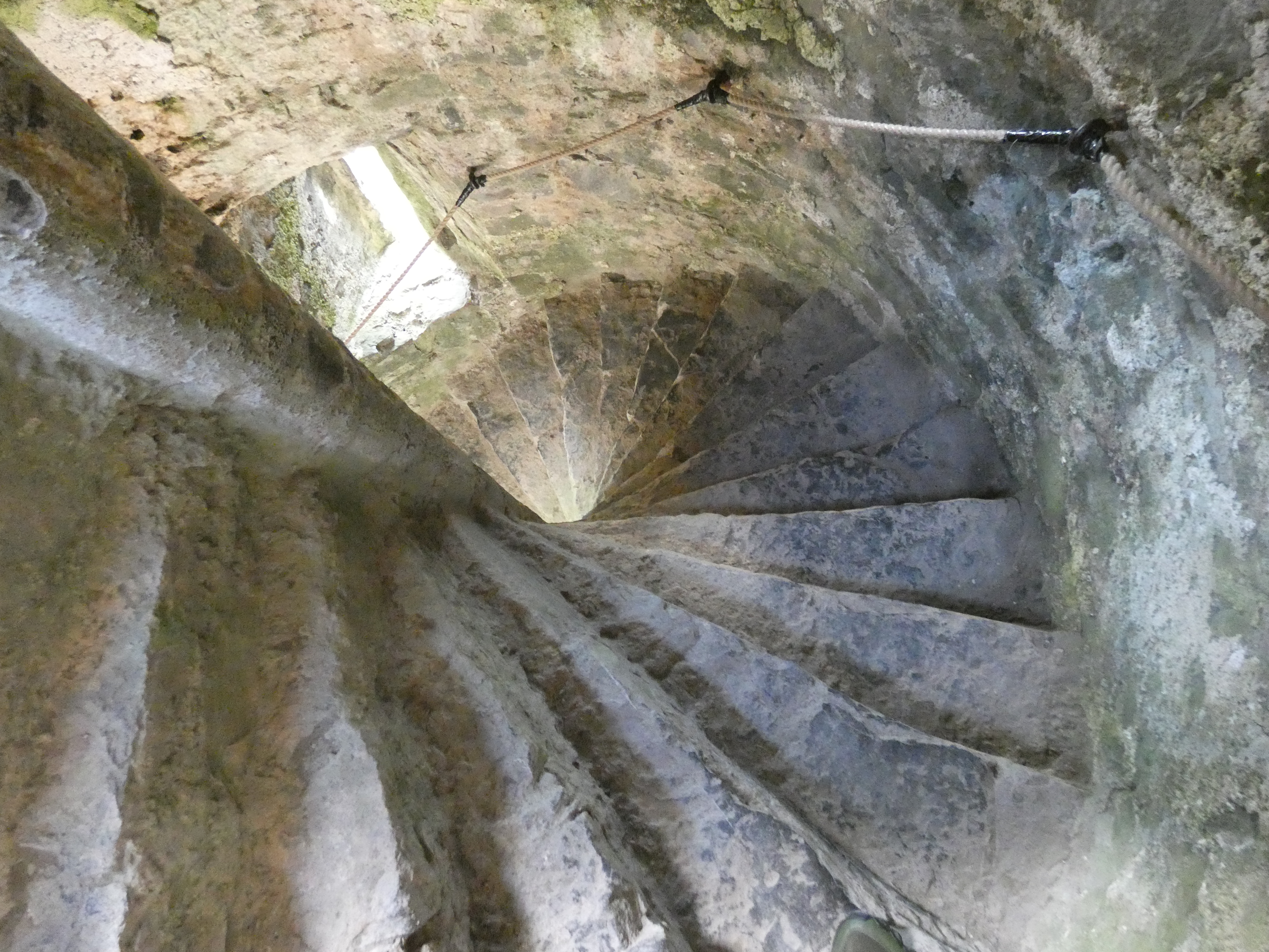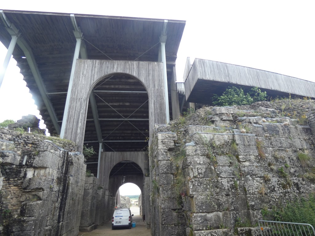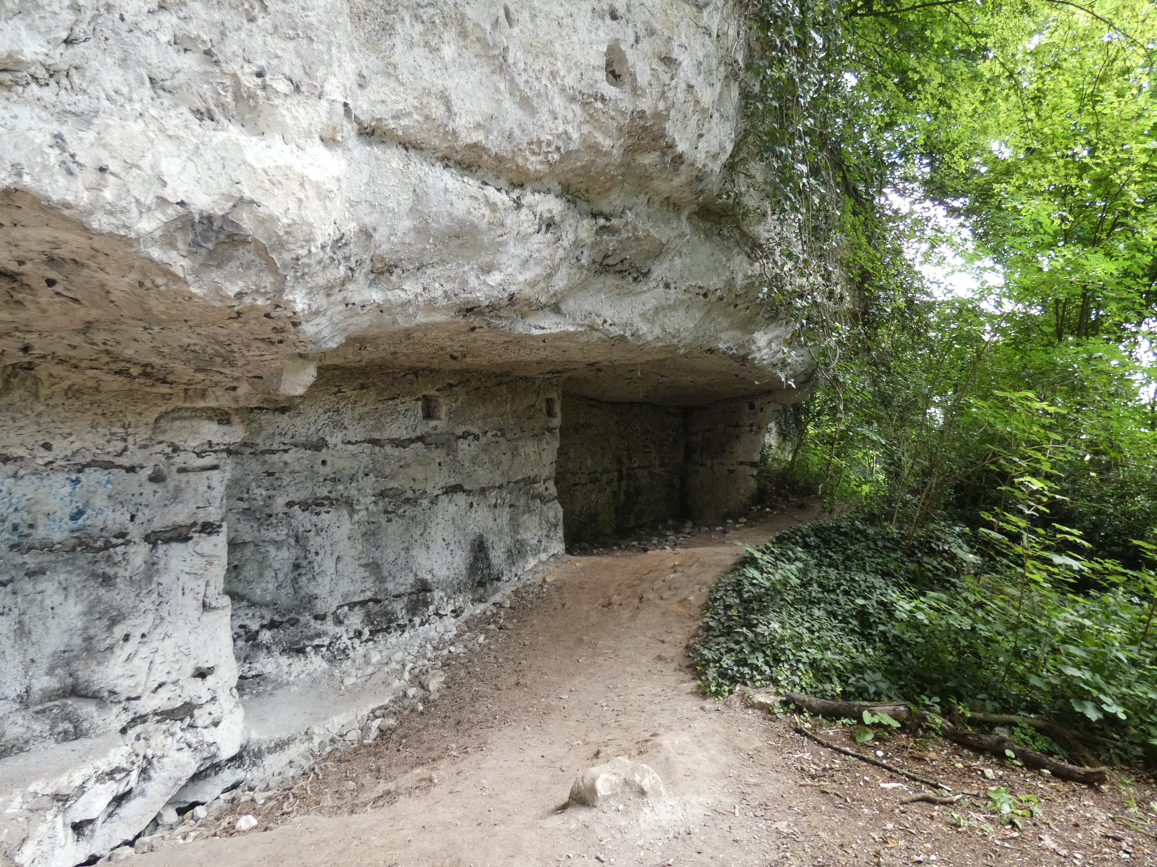 De weg brengt me naar Orival. Hier is de weg geflankeerd door massieve rotswanden en ik ben op zoek naar de vertrekplaats van een wandeling. Moeilijk te vinden, absoluut niet veel gebruikt, maar na een halfuur vind ik de plek toch. Een klein paadje naast de weg, dat in directe weg omhoogleidt, van 0 tot 100 meter in één trot. Een absoluut pittige klim, maar meer dan de moeite. Als je daar bovenover wandelt, heb je het ene view na het andere, over de Seinevallei. Maar wat meer is, waar ik voor kwam, is de troglodite village, de rotswoningen, uitgehouwen in de helling, daarboven. Ongelofelijk te zien, hoe mensen zoiets voor elkaar kregen en om je voor te stellen, hoe ze daar geleefd moeten hebben. Kleine woningen, waarschijnlijk volgepakt met grote gezinnen, alsook grotere grotachtige woningen en ruimtes. Overal vierkante gaten boven de woningen, wat me doet vermoeden, dat daar allemaal houten palen in hebben gestoken, als soort van structuur voor afdak, het is een gebied om door te wandelen en in gedachten totaal terug te gaan in de tijd. Je ziet hoe de plafonds minutieus zijn uitgekapt, met allemaal groefjes, je ziet hoe ze een vuurplaats hebben gecreëerd, met een rookafvoer, je ziet vermoedelijke slaapplaatsen. Dit was niet zomaar survival, dit was wonen, een thuis voor wie daar hoorde. Het kost me moeite om me los te maken van die plek, die me verder en verder in imagination brengt…