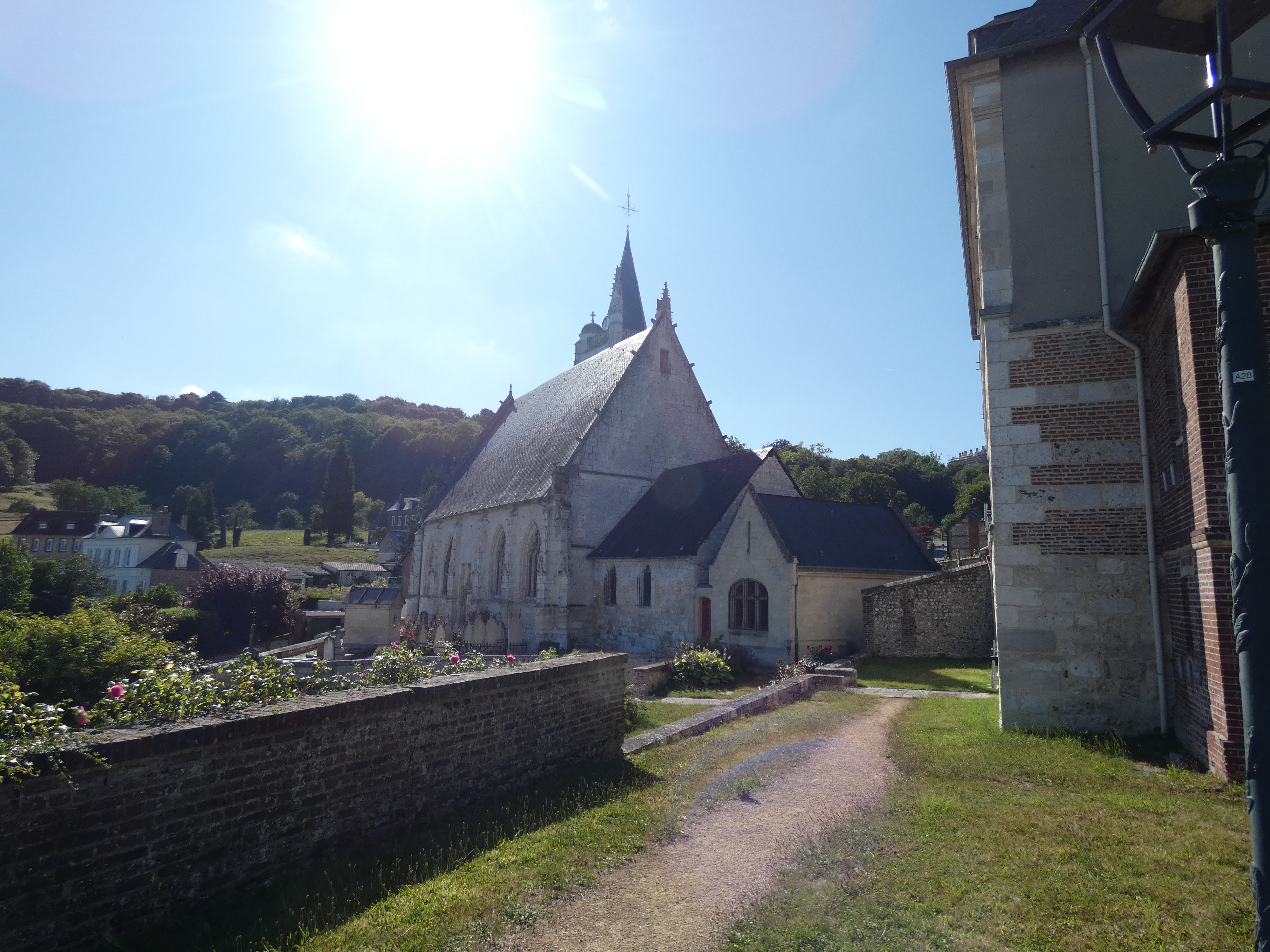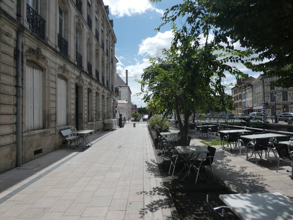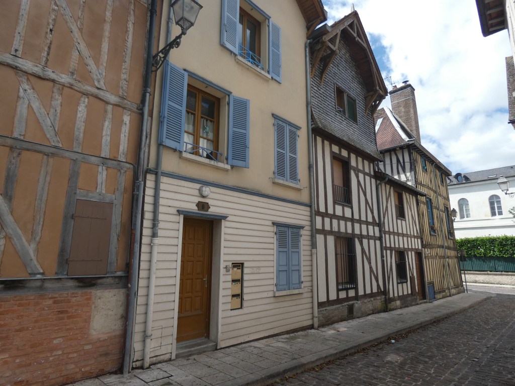 Tegen de avond hou ik halt in Rives-en Seine, een klein dorpje aan de oever van een al belangrijk grotere Seine, dichter bij de kust in de buurt. De hellingen zijn sterk verminderd en hier zit je op waterlevel aan de oever. het plaatsje op zich stelt niet veel voor, maar hier heb je onderandere wel het museum van Victor Hugo en een grote oude brocante markt die slecht enkele keren per jaar geopend is. En een ontzettend gezellig cafeetje met terras, direct aan het water, goed voor ongebreideld genieten. Het was een huis waar vroieger loodsen in zaten, voor de schepen. Nu overgenomen door een jonge, plaatselijk brouwer, die er in no time een succes van heeft gemaakt. De enige drukte hier is van wandelaars en fietsers, geparkeerd onder een rij bomen, in heerlijke, deugddoende schaduw, puur genieten van niets bijzonders en al wat je ziet…