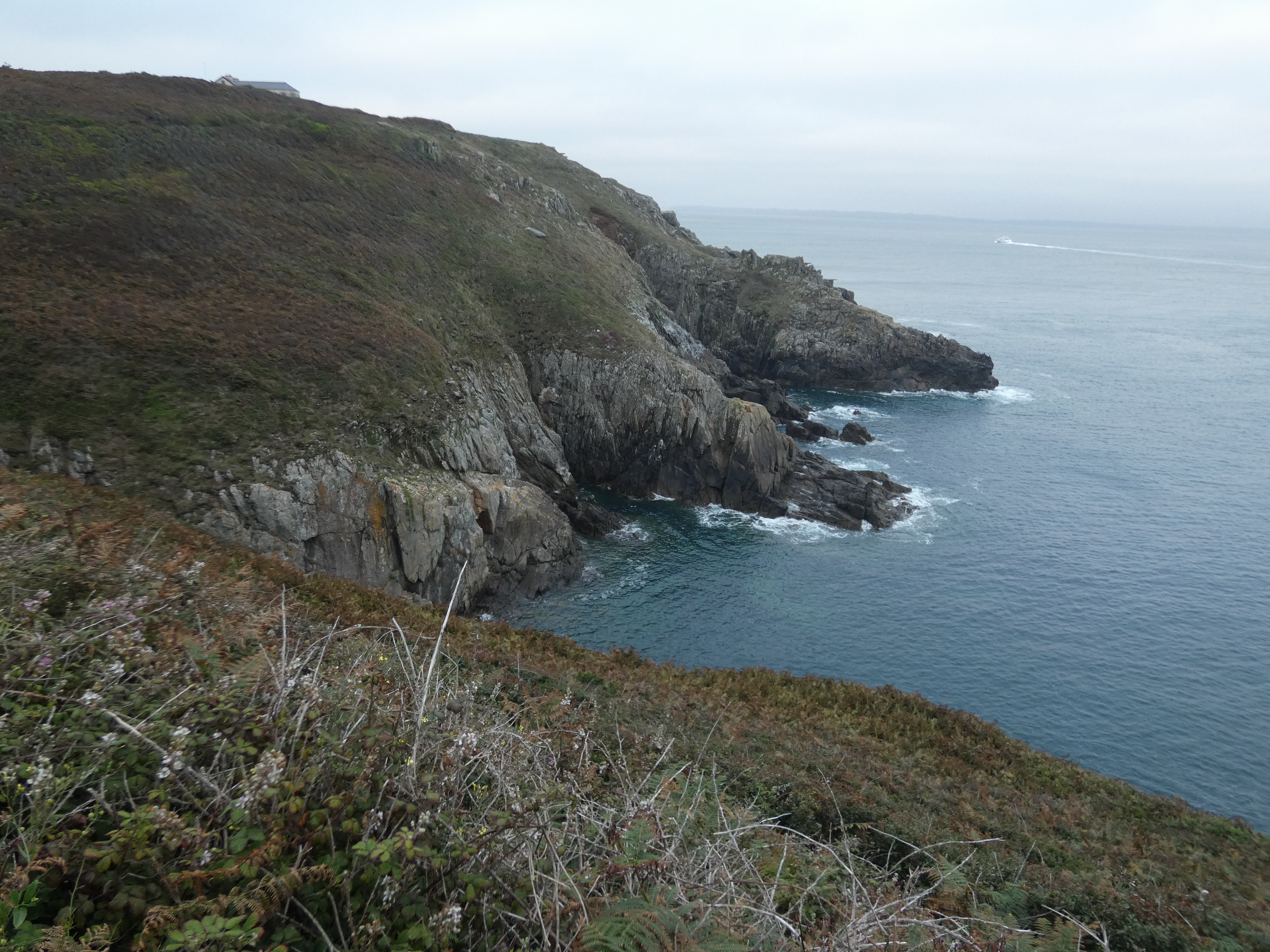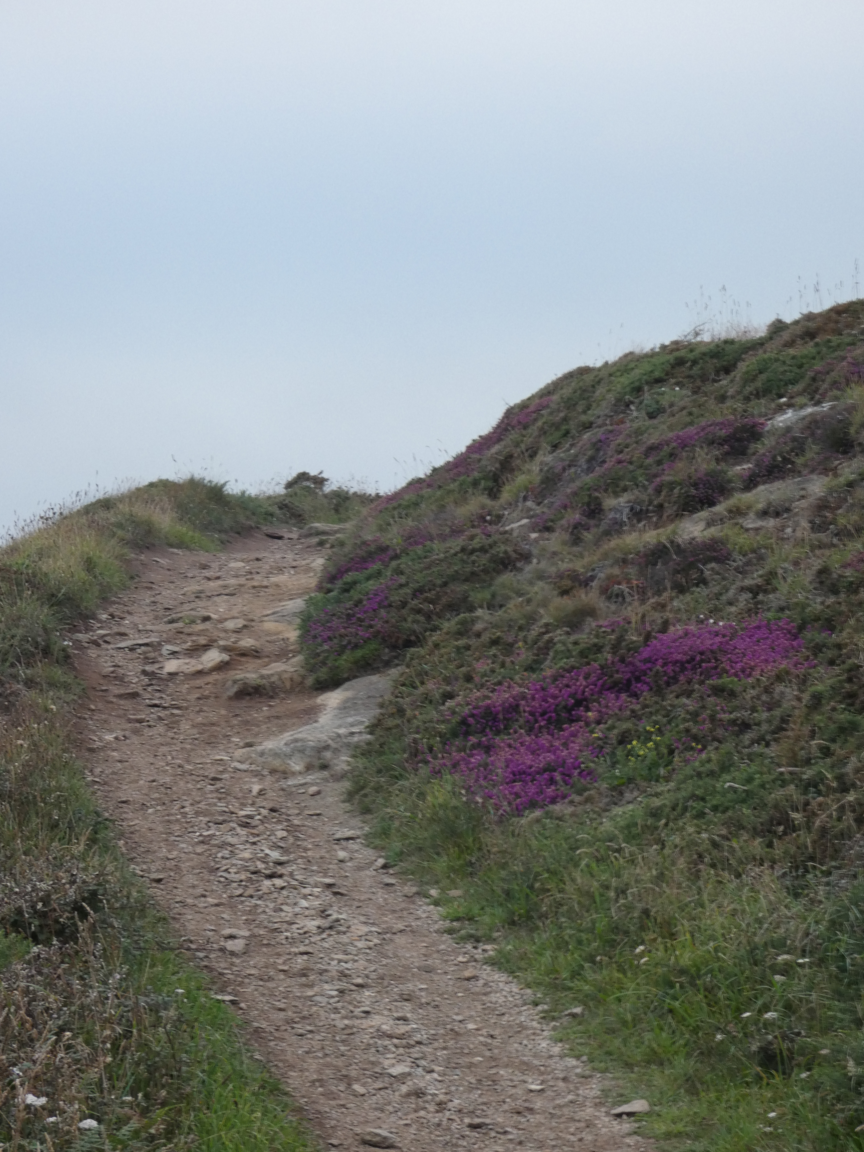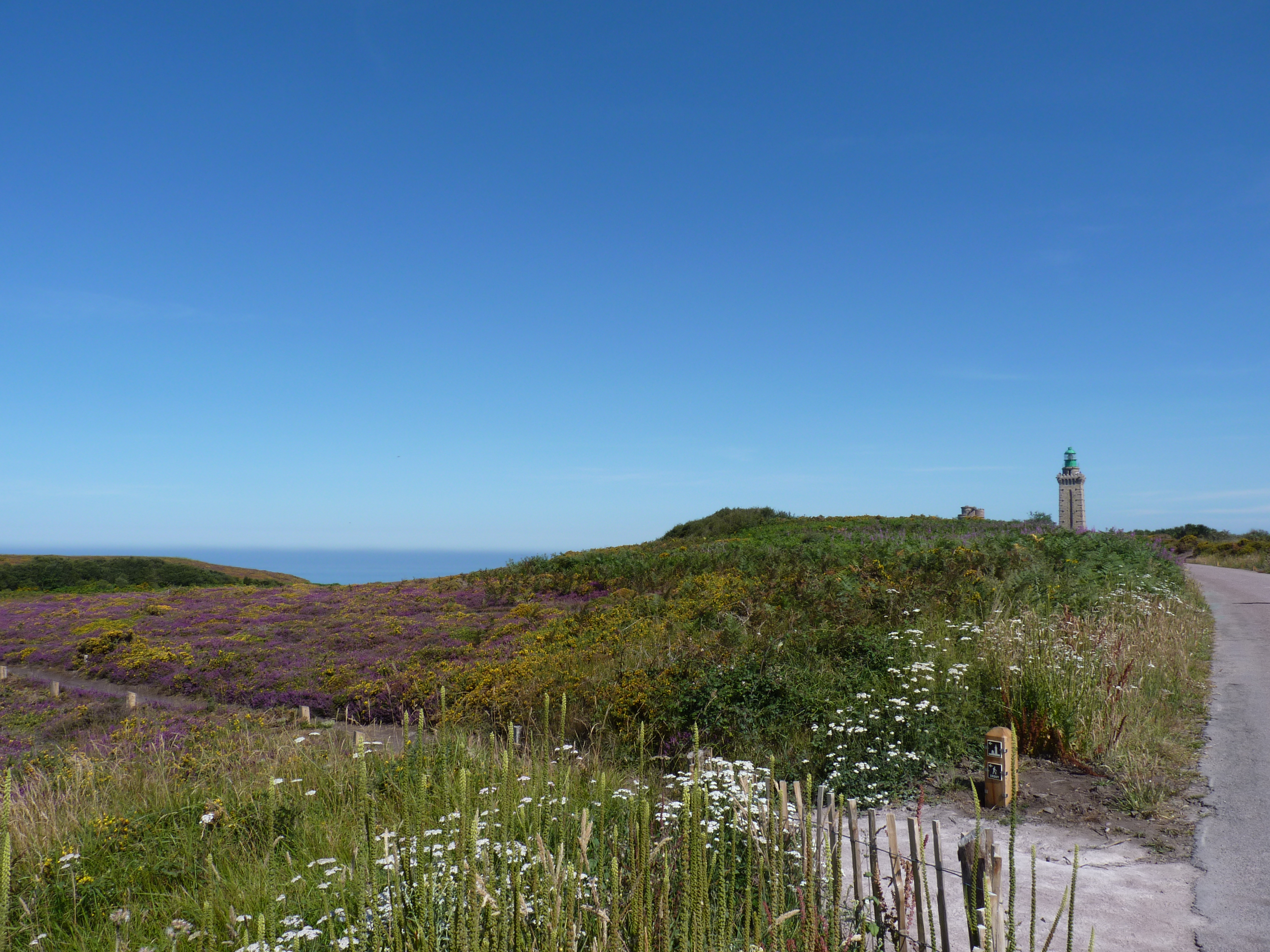 Op maandag vertrek ik weer, mijn weg vervolgend langs de kust. Ik stop bij cap Frehel en maak een lange wandeling langs de kust, rondom de imposante vuurtoren. De kleine is heel oud en ziet mooi uit, maar is buiten dienst. De nieuwe is massief, je kan hem bezoeken, maar ik doe het niet, hoeveel vuurtorens kan men beklimmen…. Ik wandel liever verder en geniet van uitgelezen uitzichten. het zonnetje schijnt en doet zijn best. Het is warm, maar een beetje zeewind helpt best…