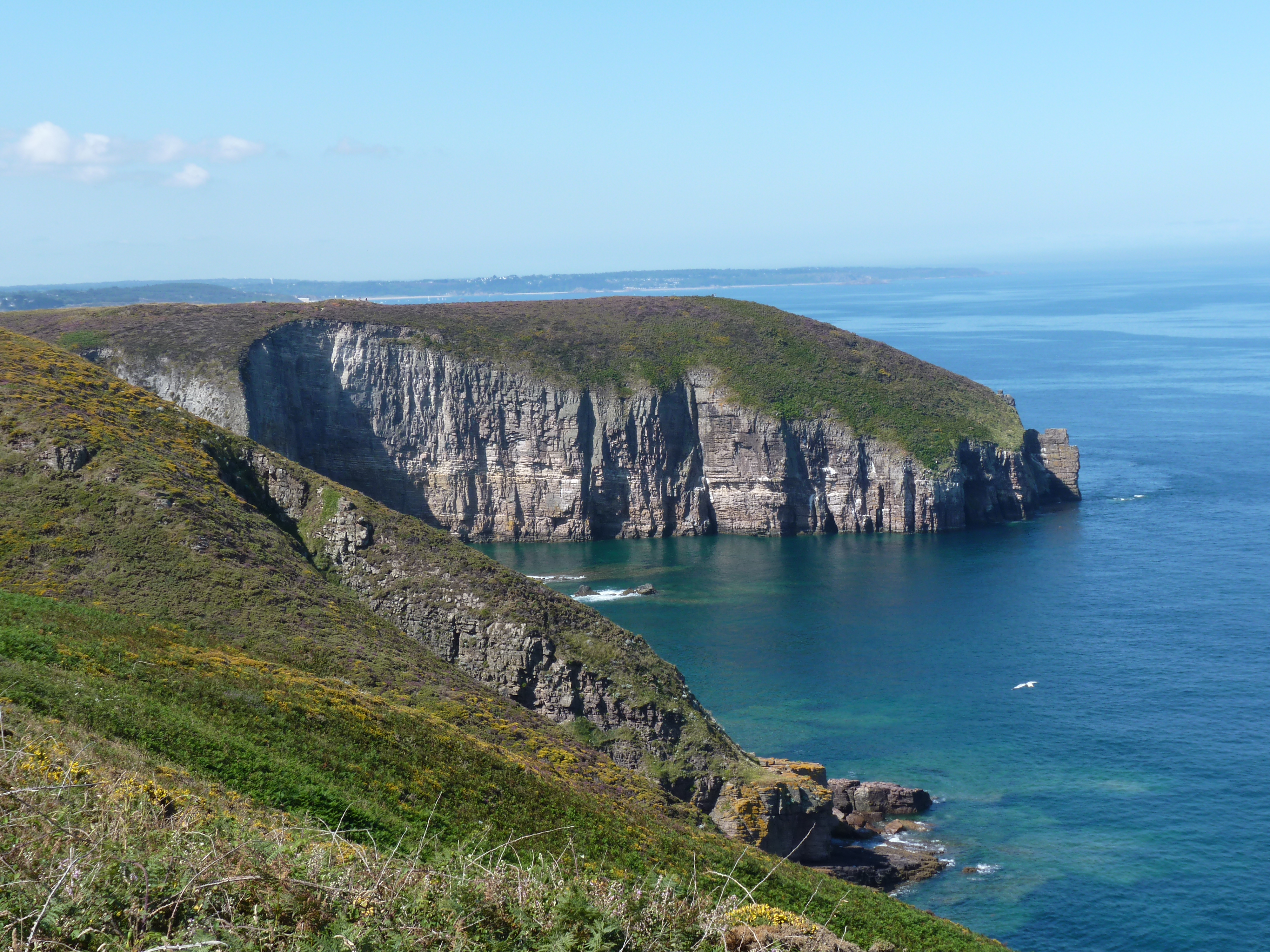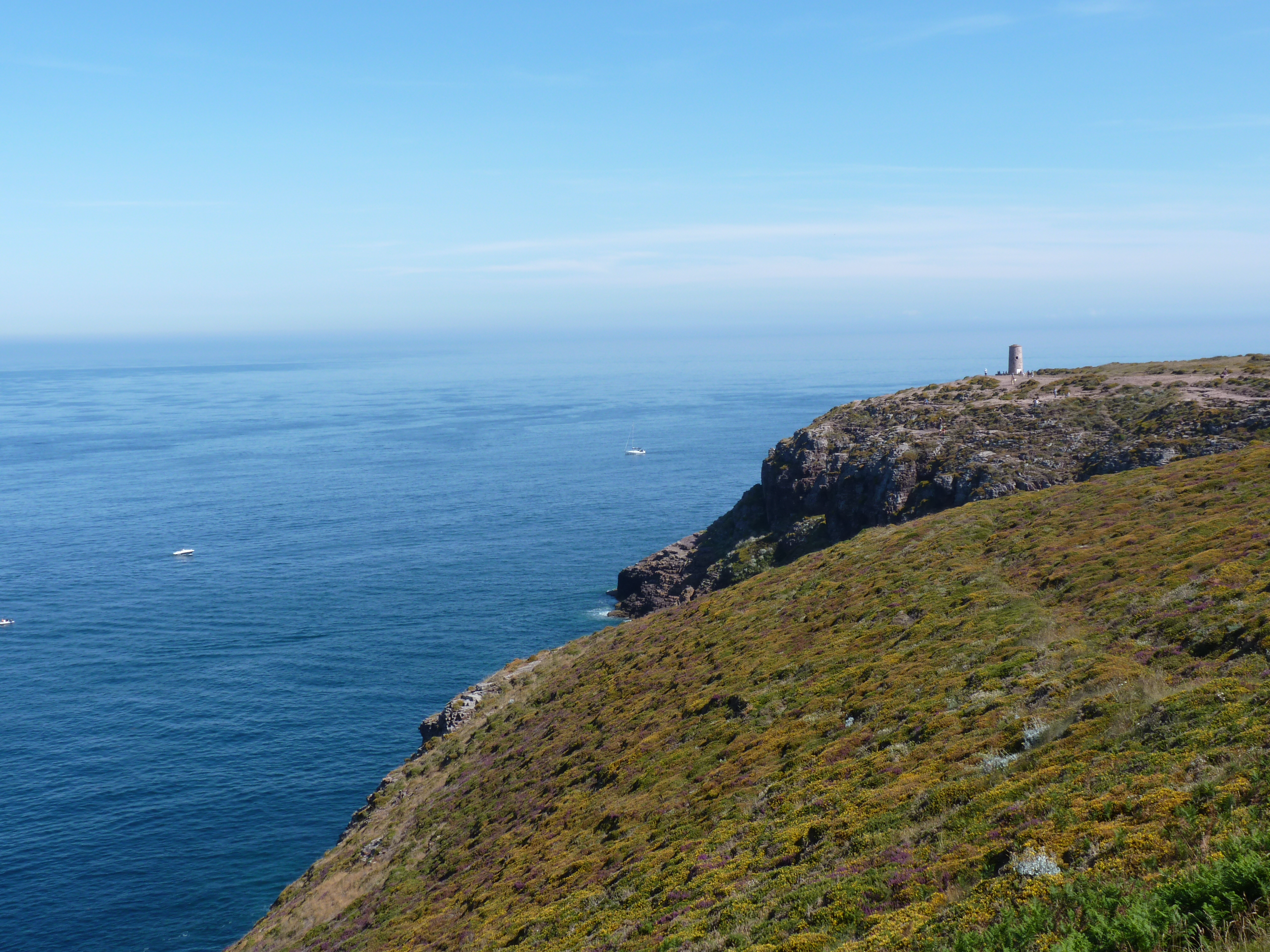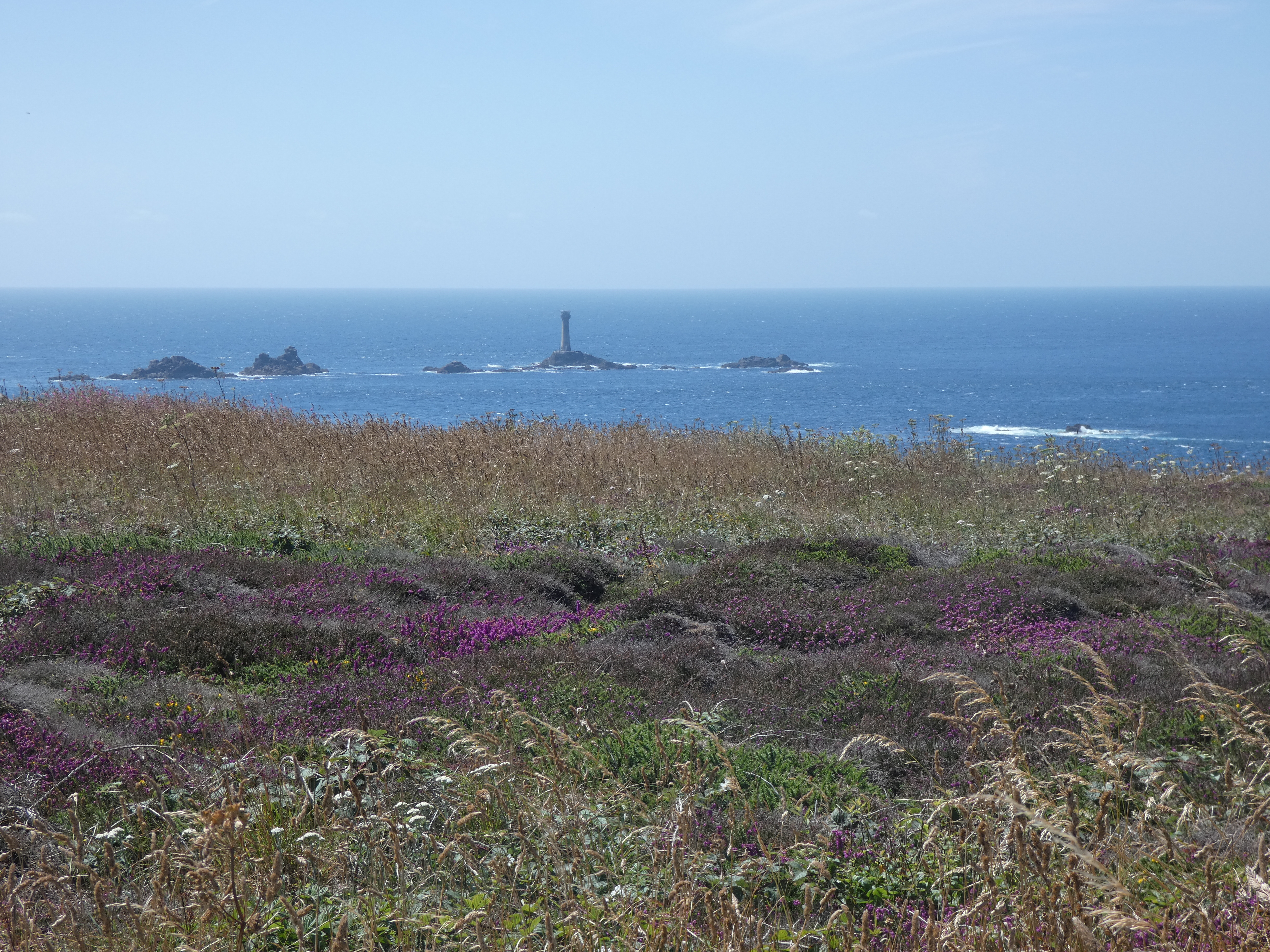 Op maandag vertrek ik weer, mijn weg vervolgend langs de kust. Ik stop bij cap Frehel en maak een lange wandeling langs de kust, rondom de imposante vuurtoren. De kleine is heel oud en ziet mooi uit, maar is buiten dienst. De nieuwe is massief, je kan hem bezoeken, maar ik doe het niet, hoeveel vuurtorens kan men beklimmen…. Ik wandel liever verder en geniet van uitgelezen uitzichten. het zonnetje schijnt en doet zijn best. Het is warm, maar een beetje zeewind helpt best…