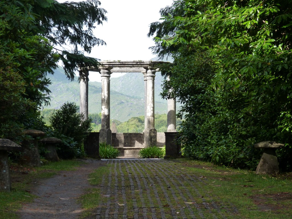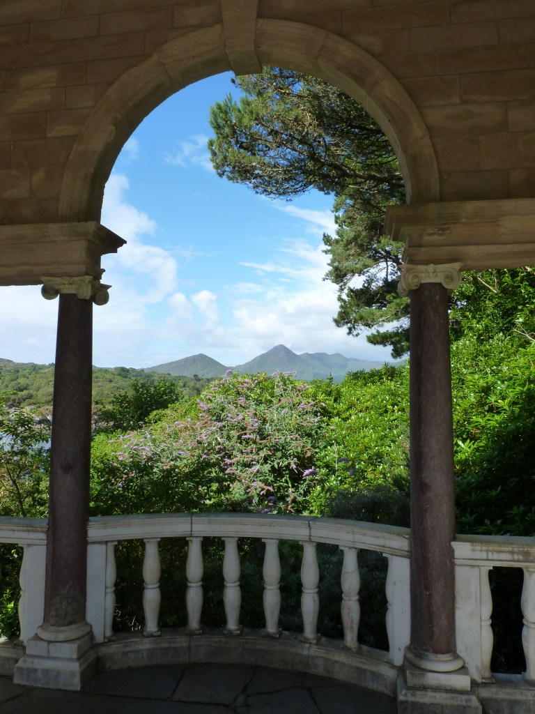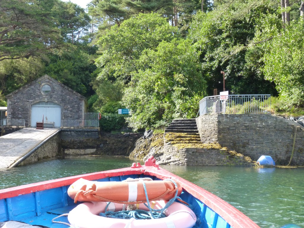 Vandaag een ander eiland, wat specialer van aard….Garinish Island, een eiland, oorspronkelijk ontworpen voor de particuliere eigenaar, rond 1850. Het is gevuld met tuinen. Het bevat ook een Italiaans lijkende villa en een ronde, zogenaamde Martello toren, een verdedigingstoren, gelegen op een hoger punt met een prachtig uitzicht. Het hele eiland is tegenwoordig staatsbezit en te bezichtigen. er woont niemand meer, puur toerisme. Je wil hier in de ochtend heengaan, want na de middag loopt het vol en is de sfeer weg… Je kan alleen maar met een boot daarheen en de belangrijkste vertrekt vanuit de dichtbijgelegen haven van Bantry, maar dichtbij de camping waar ik verblijf, is een klein baaitje met een klein bootje van een particulier. Als je die belt, komt hij direct van huis uit, brengt je naar het eiland en komt je ook weer ophalen op afgesproken tijd. Een mooie manier om drukte te ontlopen, een leuk gesprek te hebben met een local en tegelijk het geluk dat hij een mooie omweg maakt en je het havengebied laat zien. Prachtige baai, heel divers, met een natuurlijke populatie van zeehonden, die zich met plezier laten fotograferen (omdat ze lekker in de zon liggen en te lui zijn om te maken dat ze wegkomen…). Zoals je ziet, het gezegde gaat elke keer weer op, niet alleen de bestemming is belangrijk, de reis is minstens net zo de moeite…