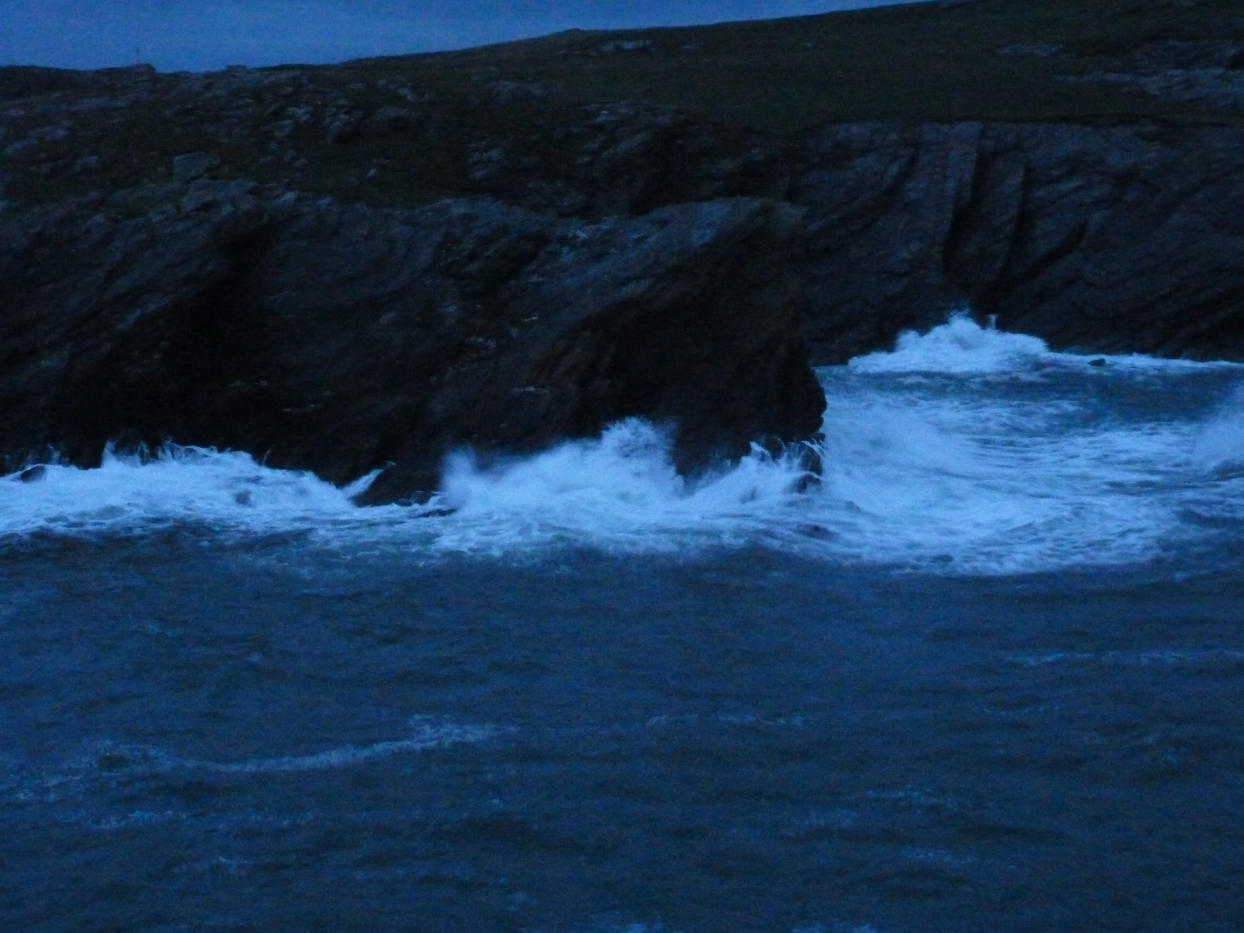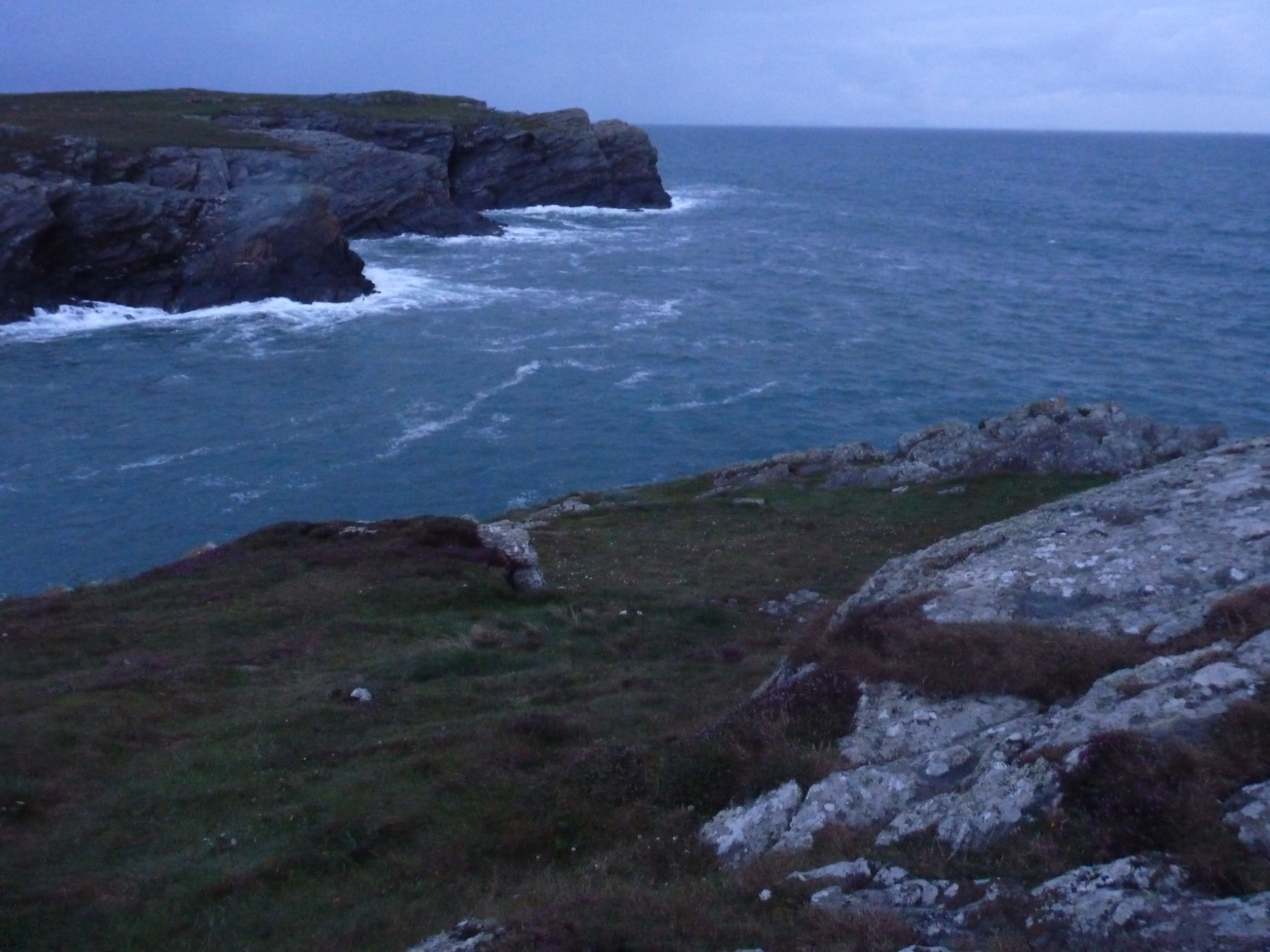 Bij Holyhead komen we in wat kalmer water, maar de storm gaat niet zomaar liggen, het blijft hard waaien. Ik vind een simpele , kleine camping in de buurt, bij een kleine baai. ’s avonds goed voor een lange wandeling rondom de baai. het waait hard, het water is onstuimig en zorgt voor prachtige beelden, die jammer genoeg niet zo mooi te fotograferen zijn bij schemering en valavond in deze onverlichte omgeving. Maar de herinnering blijft aan puur natuur…