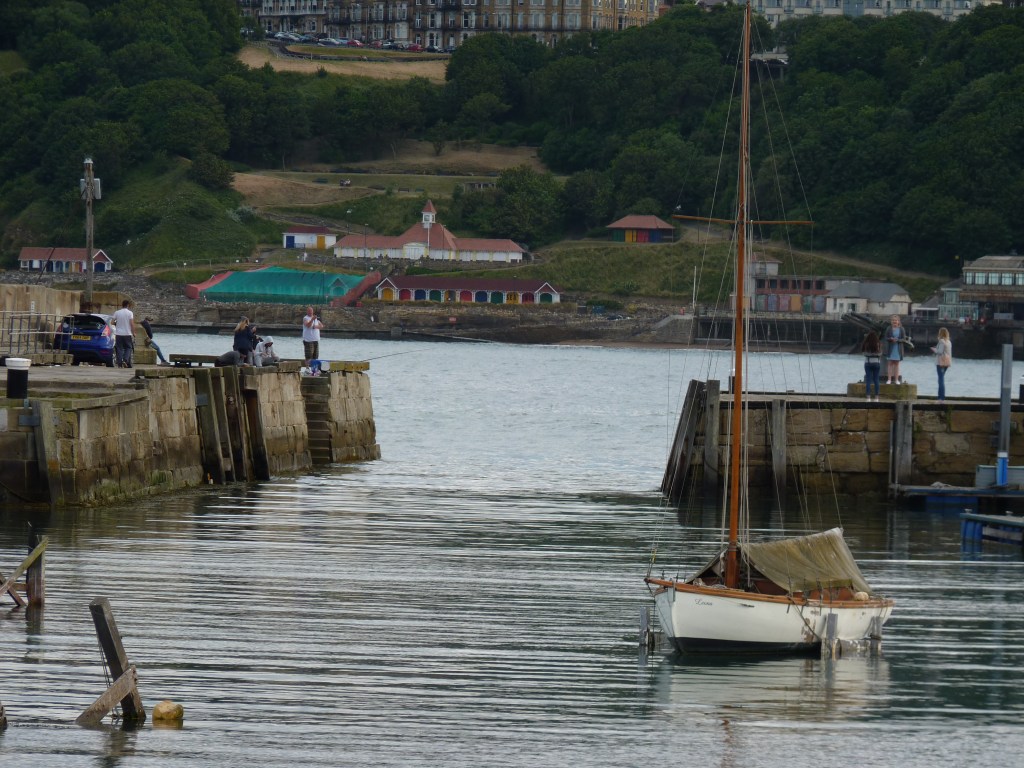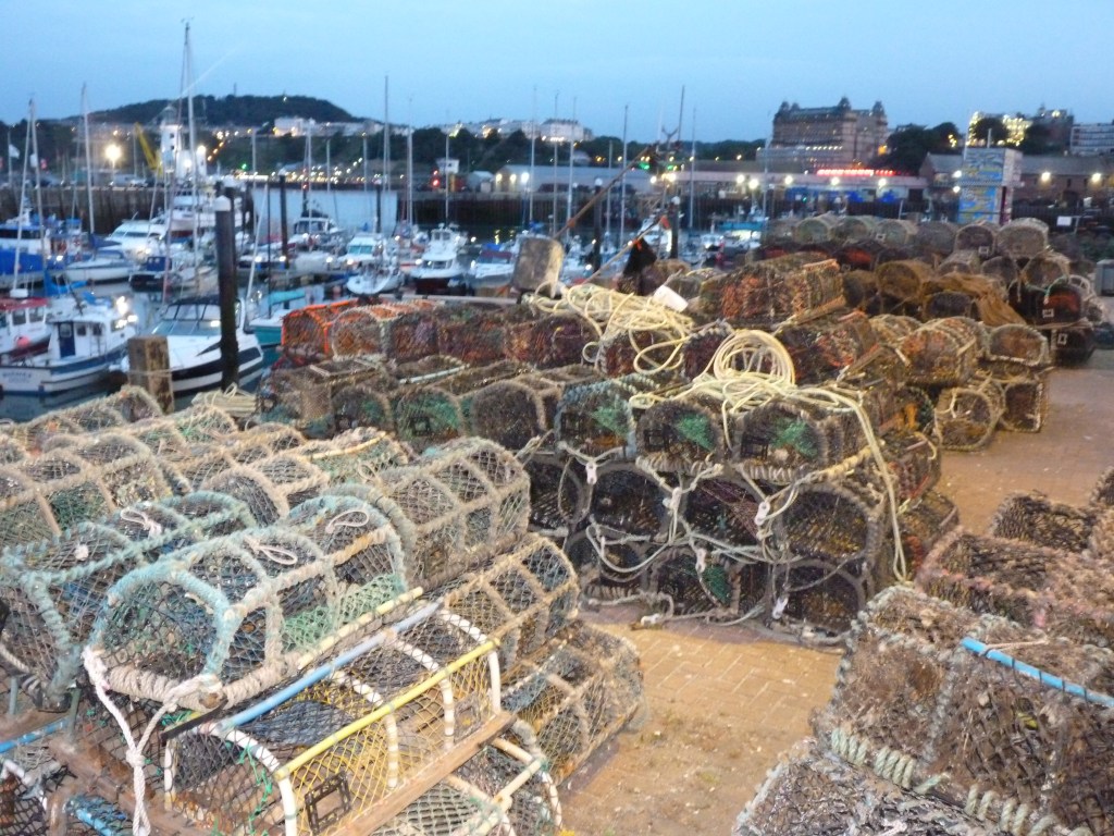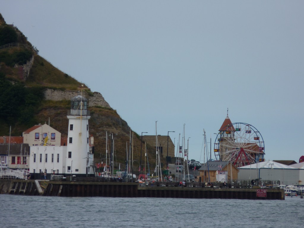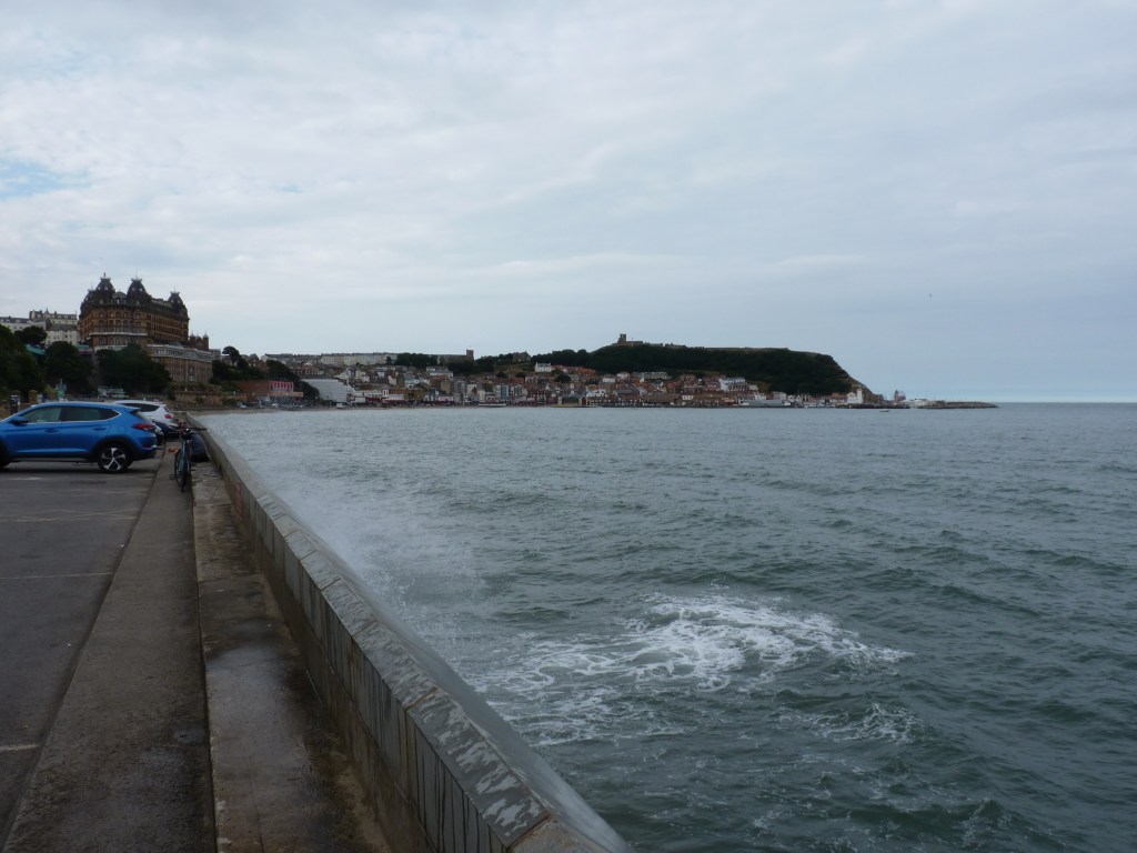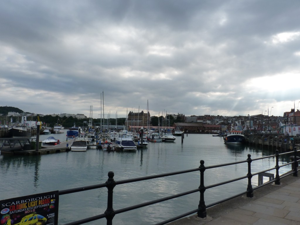 Dacht ik dus…. maar de nodige tientallen kilometers aan wegwerkzaamheden en diverse andere redenen voor files, laten me geen keuze dan mijn route aan te passen en dus ook mijn planning, voor zover ik die heb. Alnwick zou haalbaar zijn, maar dan pas ‘savonds laat en dat is niks aangenaam. Ondanks de kilometers, wil ik ook een beetje de rust erin houden en de reis leuk houden. Ik wijk uit naar de kust en slaap vannacht in Scarborough… Are you going to Scarborough fair…. Yes please…Ik hou van die typische Engelse badplaatsen. Ze hebben iets heel speciaals, ontzettend toeristisch, ontzettend badgastminded, met prachtige oude gebouwen, fairgrounds, lunaparken en bakken vol gezelligheid langs de kustlijn. Vreemd eigenlijk, ik heb niet veel op met veel mensen bij elkaar, maar deze sfeer is altijd anders, dit zijn plaatsen waar alles puur en duidelijk om zee en strandvakantie draait, op een heel aangename manier. Hier is strandvakantie geen zuipen en gewoon voor pampus op het strand liggen, hier lijkt alles decadenter, alles in stijl, je zou het geheel zo 100 jaar terug kunnen zetten. het heeft altijd iets …je ne sais quoi…heerlijk om rond te lopen, je ergert je zelfs niet aan het volk, het hoort in dat plaatje, of dat nu overdag, ’s avonds of ’s nachts is. En omdat Scarborough op het moment van kiezen heel goed haalbaar is, is die keuze snel gemaakt. Aan de baai zijn een aantal camperplaatsen, mijn auto past daar best tussen. Slapen en wakker worden met het zicht op water…that’s my kind of life. ’s avonds een lange avondwandeling, direct achter de auto de berg op, langs de kasteelruine, prachtig uitzicht en aan de andere zijde van de berg weer omlaag, zo de haven in en verder langs de boulevard, gevuld met pubs, restaurants en casino’s, prachtig verlicht en gezellig druk met mensen die niet roepen en tieren maar gewoon een leuke avond hebben. Dan langs de boulevard, om de berg heen, terug naar de auto. En bed in…