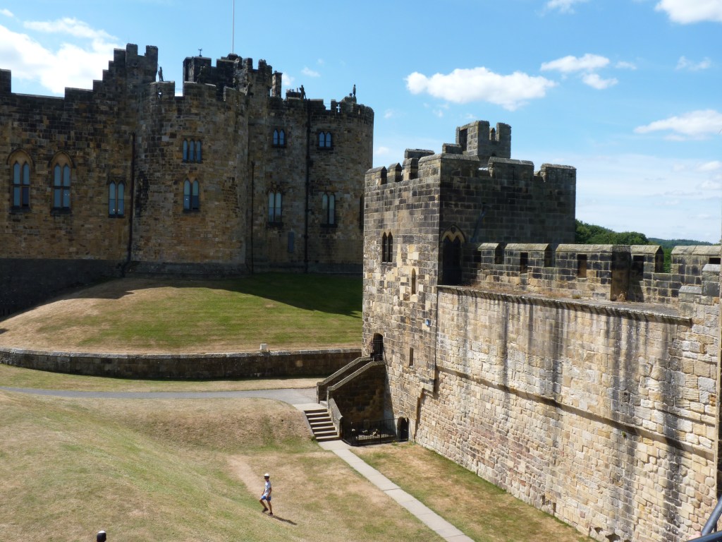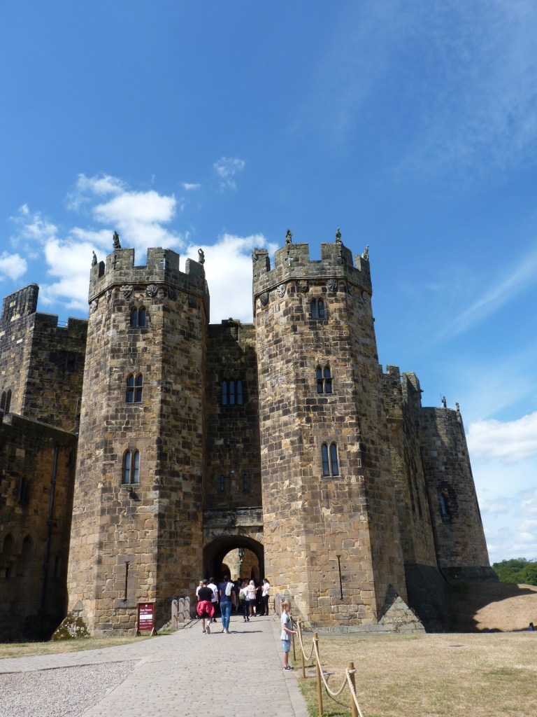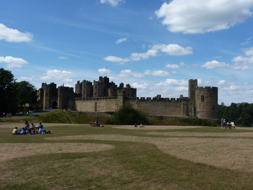 Zaterdagochtend…de meeuwen roepen me wakker en ik geniet van een koffie en ontbijt op een bank aan het water. Time to rethink. De planning moet wat om. vandaag zou ik het kasteel bezocht hebben en alvast wat van Edinburgh gezien hebben , maar de reis wordt vandaag wat langer, dus Edinburgh zal volledig voor morgen worden en dan moet ik verderop nog wat schuiven en schrappen, het is niet anders. Ik laat het lekker op me af komen. Nu dus op weg van Scarborough naar Alnwick, nog zo’n 2,5 uur te gaan. Rond de middag kom ik aan bij het kasteel. Niet mijn favoriete tijd, want dan wordt het me meestal te druk, maar we doen het ermee. Een indrukwekkend kasteel, dat moet gezegd. Ze hebben er ook alles aan gedaan om het aan Harry Potter te binden, met een winkel vol elfen, trollen, kruiden en magische spulletjes, met zelfs bezemvlieglessen op het grote grasveld. Bij de ingang een joekel van een boomhut, waar je zo zou willen wonen. de sfeer zit erin en ik moet me los scheuren om mijn weg te vervolgen. Blij dat ik het gezien heb. Prachtig onderhouden kasteel van rond 1100, op 17 hectare grond, prachtig gerestaureerd, meer dan de moeite waard voor een ruime stop.