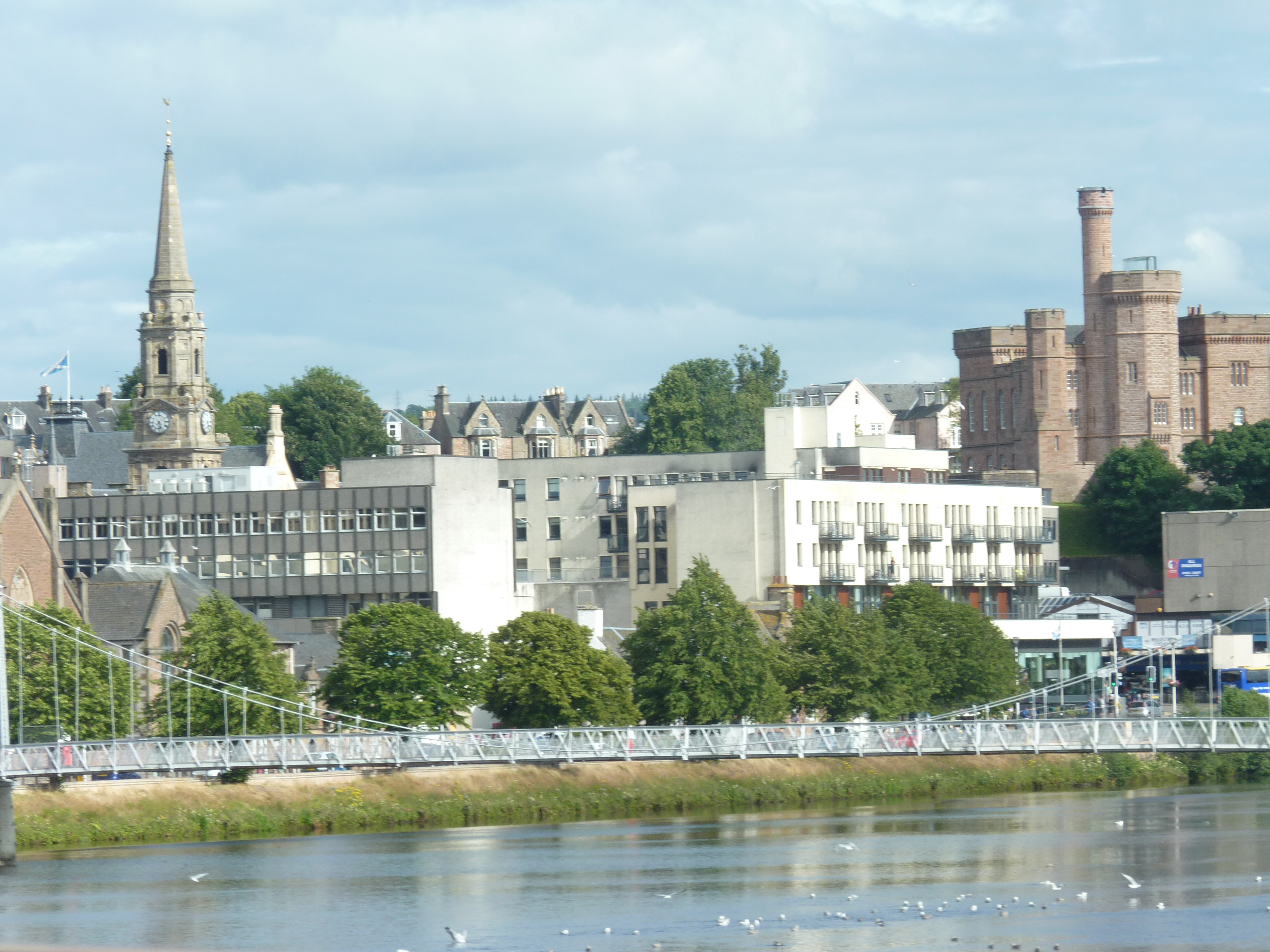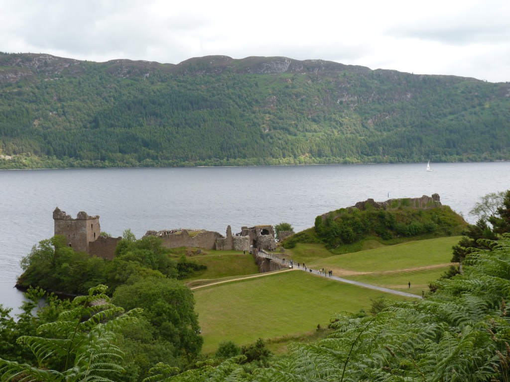 Maandag , een dag van kilometers. Ik had gepland, om naar Aviemore en Cairngorm te gaan, maar omdat ik in de tijd moet shiften, laat ik die achterwege. Ik rij wel door de streek, maar blijf er niet hangen. Mijn vorige trip in Schotland was al volop in de Highlands, bergen zijn nu minder prioriteit. Hoewel gezegd moet zijn, dat ik er graag was heengegaan, trekt Loch Ness meer. Bestemming Drumnadrochit, aan de andere zijde van Loch Ness, dus de trip gaat bovenlangs, langs Inverness en dan weer een stukje naar beneden. Ik had me veel voorgesteld van Inverness, grote stad aan het tipje van Loch Ness, maar ik vind ze zo in het doorrijden, wat tegenvallen. Een bijna onaangename combi van veel nieuwbouw tussen oude gebouwen. maar modern doet het ook niet aan, meer een soort 70’s/80’s feeling. Ik ben ervan overtuigd, als je wat beter in de stad duikt, dat het beter zal zijn, maar ik ben niet direct een fan van veel nieuwe gebouwen tussen het oude gepropt. Dat neemt de hele sfeer weg voor mij. Anyway, ik rij door, mijn bestemming zegt me meer…