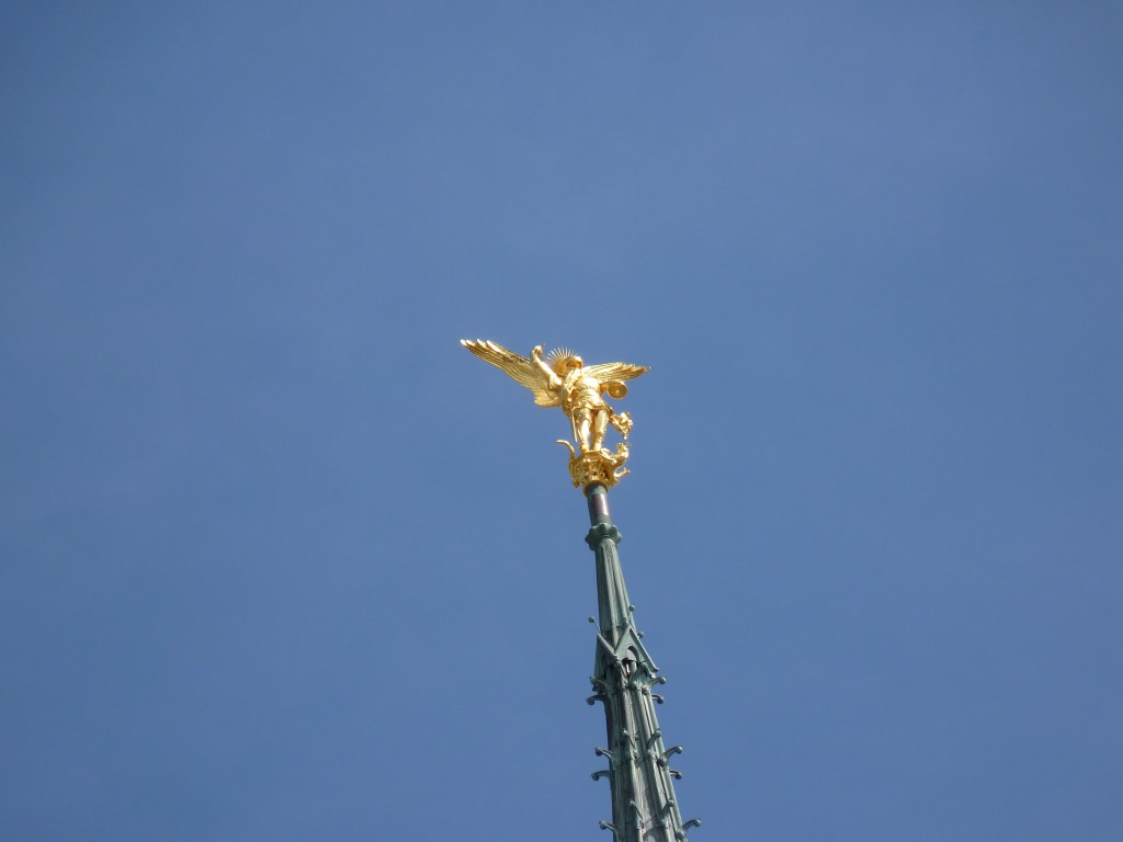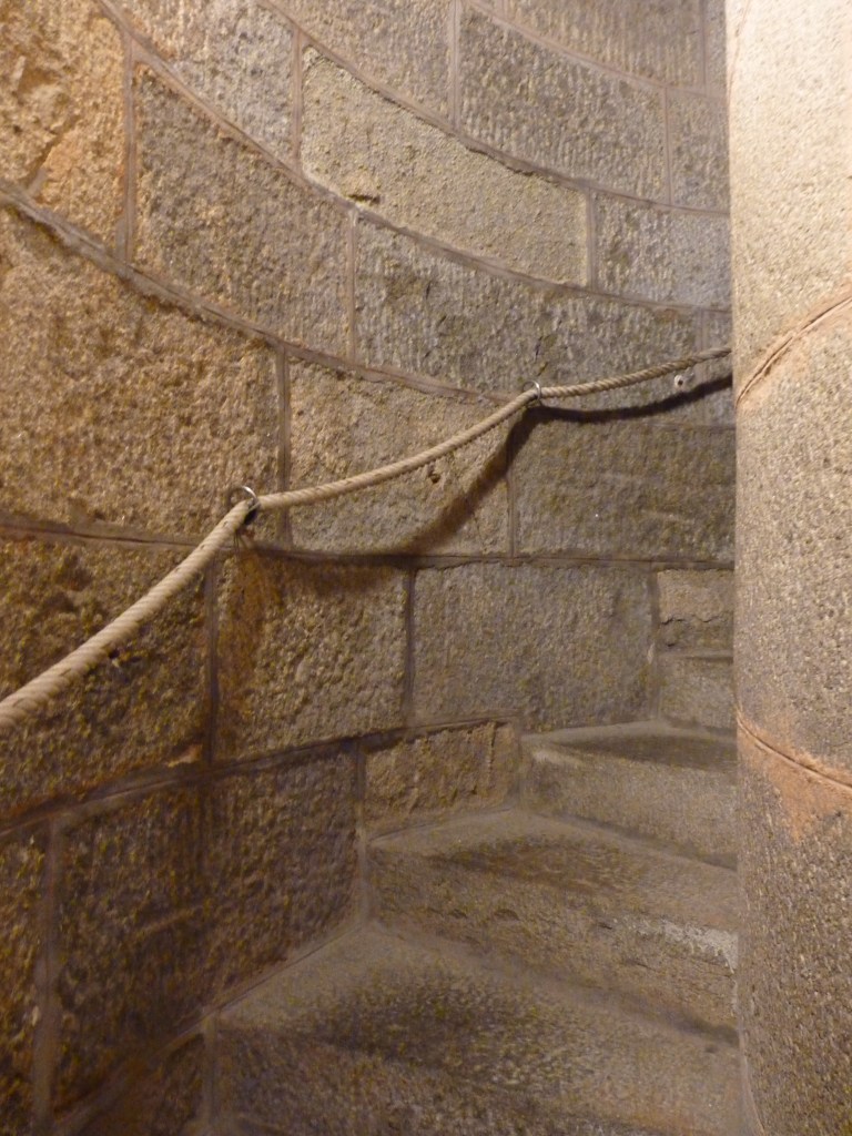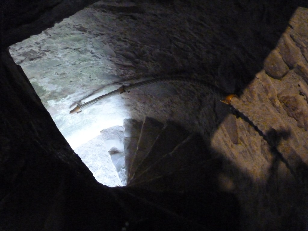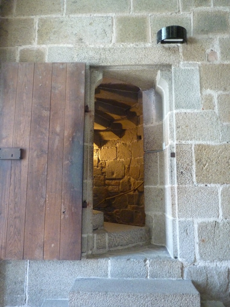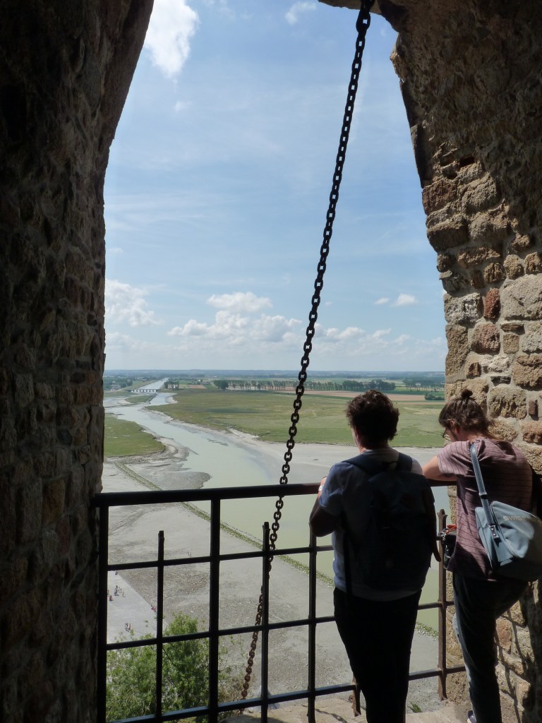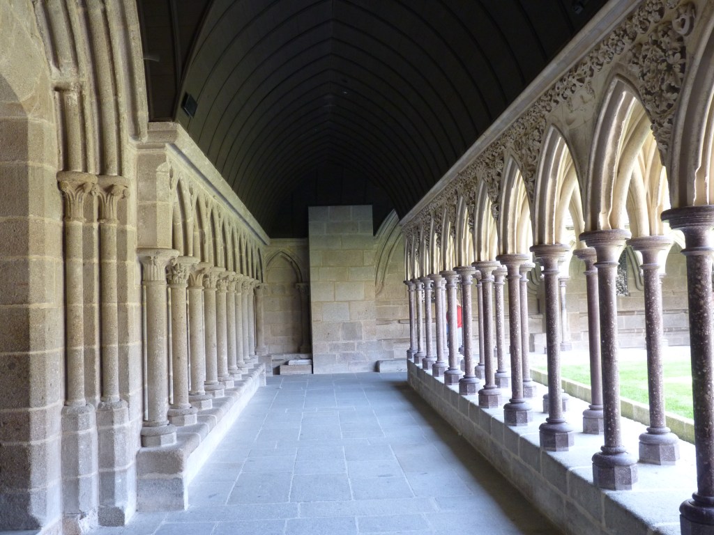 Mont Saint Michel….even wat geschiedenis…Gesticht door de heilige Aubert rond 700 (toen was hij natuurlijk nog niet heilig, maar ondertussen wel). Hij kwam graag op het eiland om te bidden en in rust in de natuur te zijn. Volges de legende is aartsengel Michaël aan hem verschenen en hj kreeg een visioen van een kerk op de rots. Na heel wat bouwen, van kapel naar kerk, naar klooster, was er in de 9e en tiende eeuw alleen maar een klooster op het eiland. Bewoond door Bendictijner monniken. Voor de bevoorrading voor de monniken gebruikte men sloep of schip. In 966 kwamen de Noormannen (Normandiërs). Ze vonden het een uitgelezen plek en bouwden onderaan en rondom het eiland huizen op de rotshellingen. De Benedictijnen werden met rust gelaten. De stenen die gebruikt werden voor de gebouwen komen van de eilanden Jersey en Guernsey, die 22 kilometer verderop liggen…
