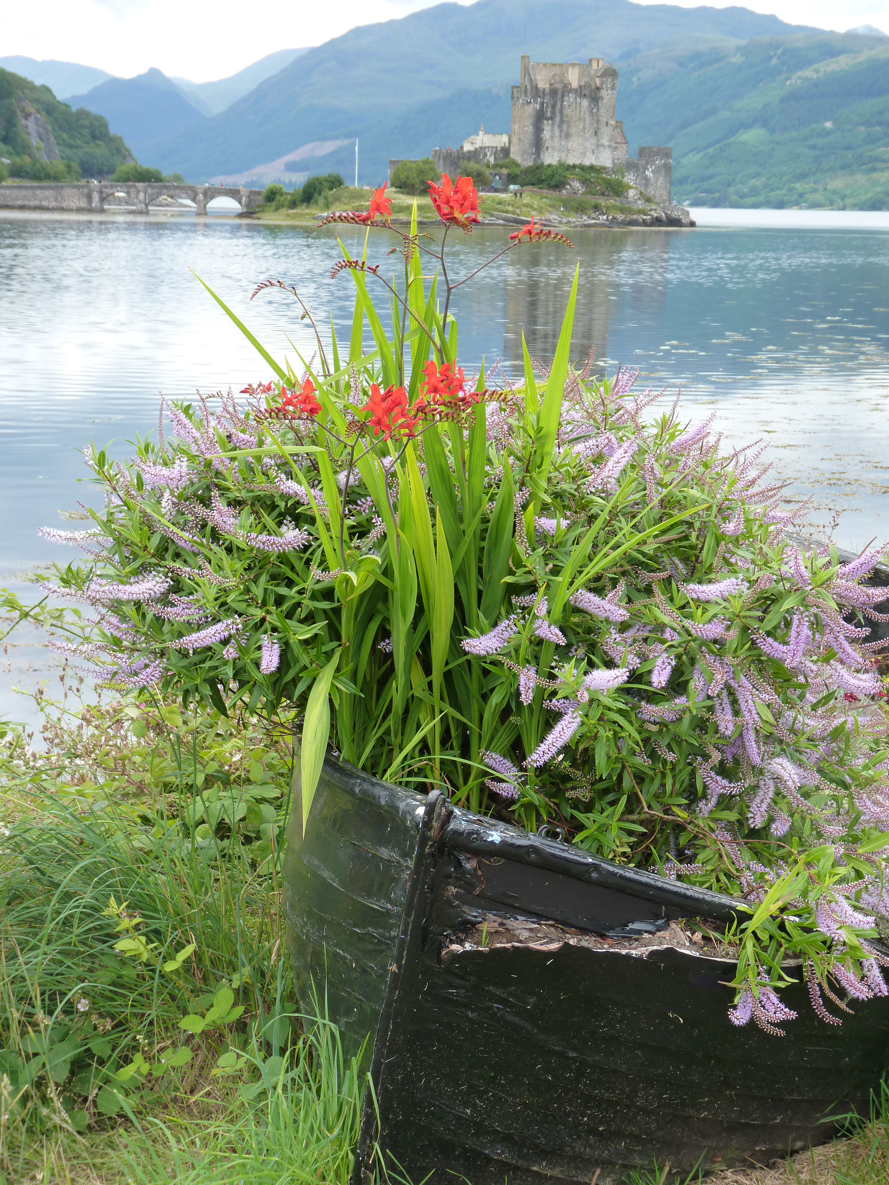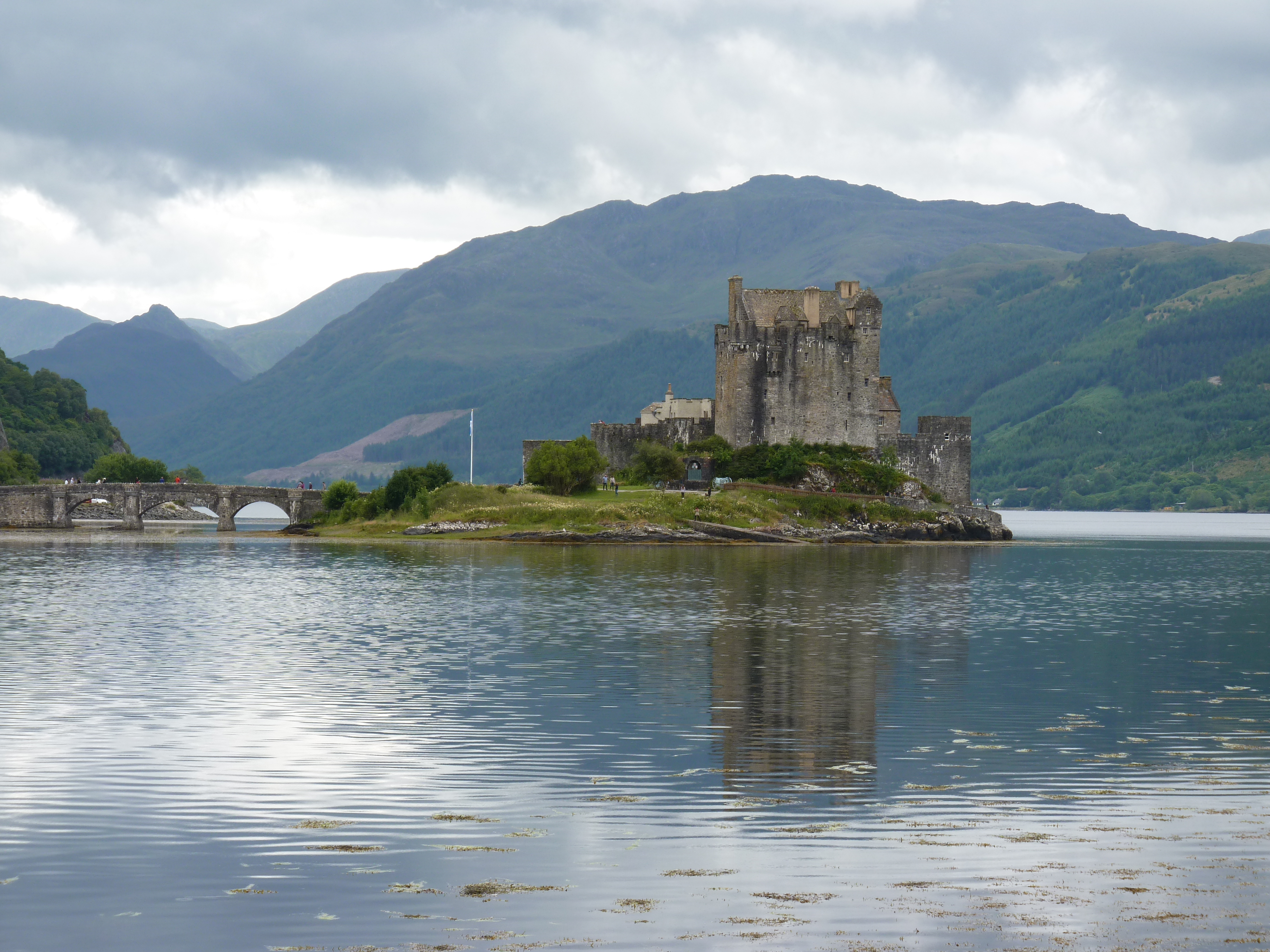 langs de weg ligt dan dat prachtige kasteeltje van Eileen Donan. Een pareltje in het water. Een getijdeneilandje, waar drie zeearmen bij elkaar komen in de westelijke Highlands. Een dertiende eeuws kasteeltje dat vroeger tot diverse clans heeft behoord. het kasteeltje is terug te vinden in puzzels, televisie, films,…