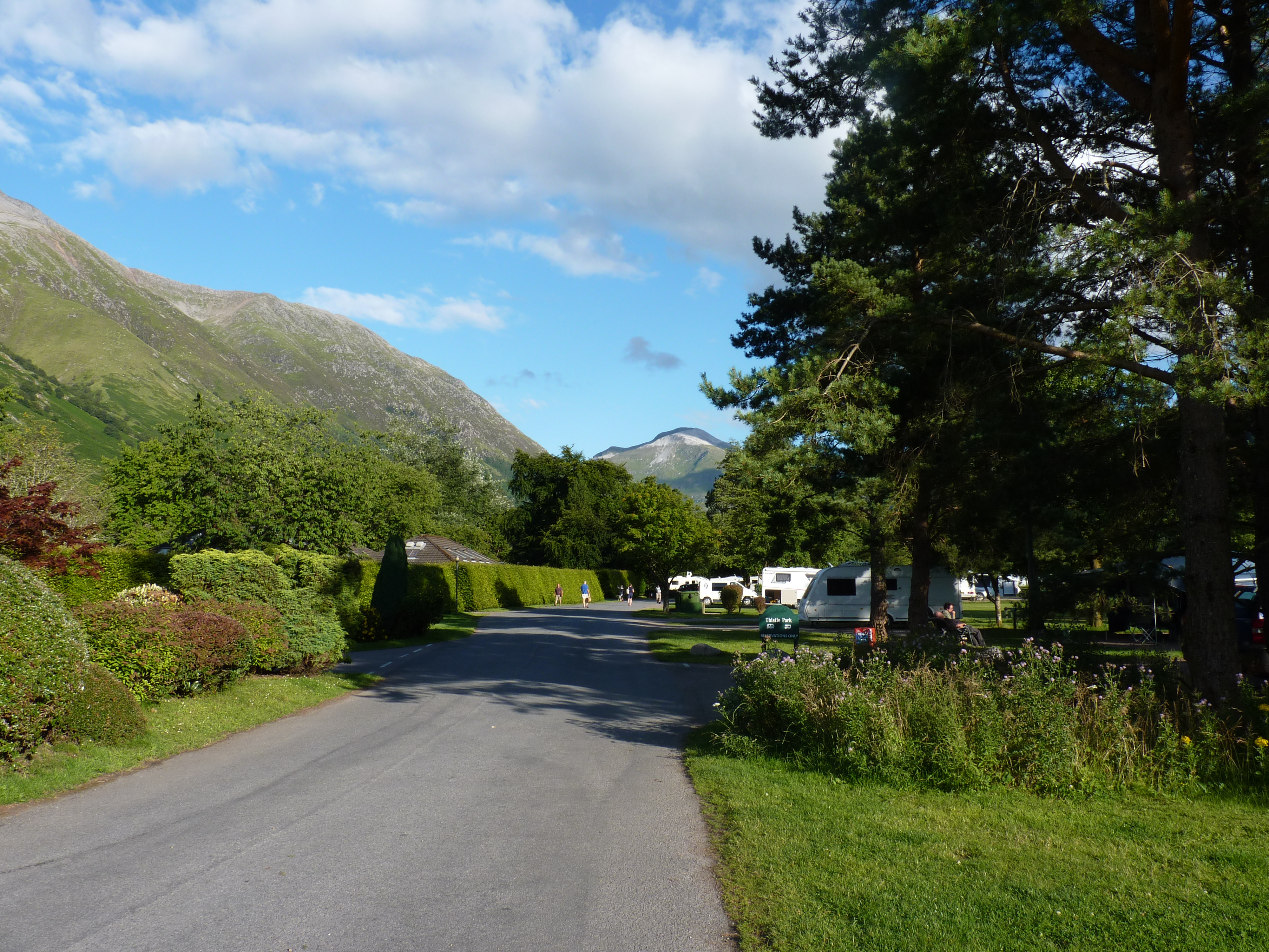Later op de dag kom ik aan bij Fort William. Een mooie camping, ongeveer aan de voet van de Ben Nevis, mooier kan het niet. Puur groen en genieten. Ben Nevis is een hoogheid. Met zijn hoogte van bijna 1400 meter tevens de hoogste berg van het hele Verenigd Koninkrijk. Een berg die ook zeer in trek is bij de toeristen, omdat hij, vooral via “the pony track” vrij makkelijk te bedwingen is. Waarbij natuurlijk gezegd moet worden, dat het niet zomaar voor de ongetrainden is, maar ik bedoel, er komen niet direct grote klimtechnieken bij kijken, omdat je grosso modo over een pad omhoog kan. Op de top ligt een verlaten weerstation. De beklimming start op zeeniveau, dat wil dus zeggen, dat je de volle 1345 meter voor je kiezen krijgt, maar dankzij het bewandelbare pad, is het doenbaar in een lange dagtocht. Een retour op 8 tot 10 uur is iets dat redelijk is. Verwacht niet teveel zon, er wordt gezegd dat hier bij de Ben Nevis ongeveer 10 dagen per jaar zon is….veel regen en minstens bewolking. Maar heel indrukwekkend.
