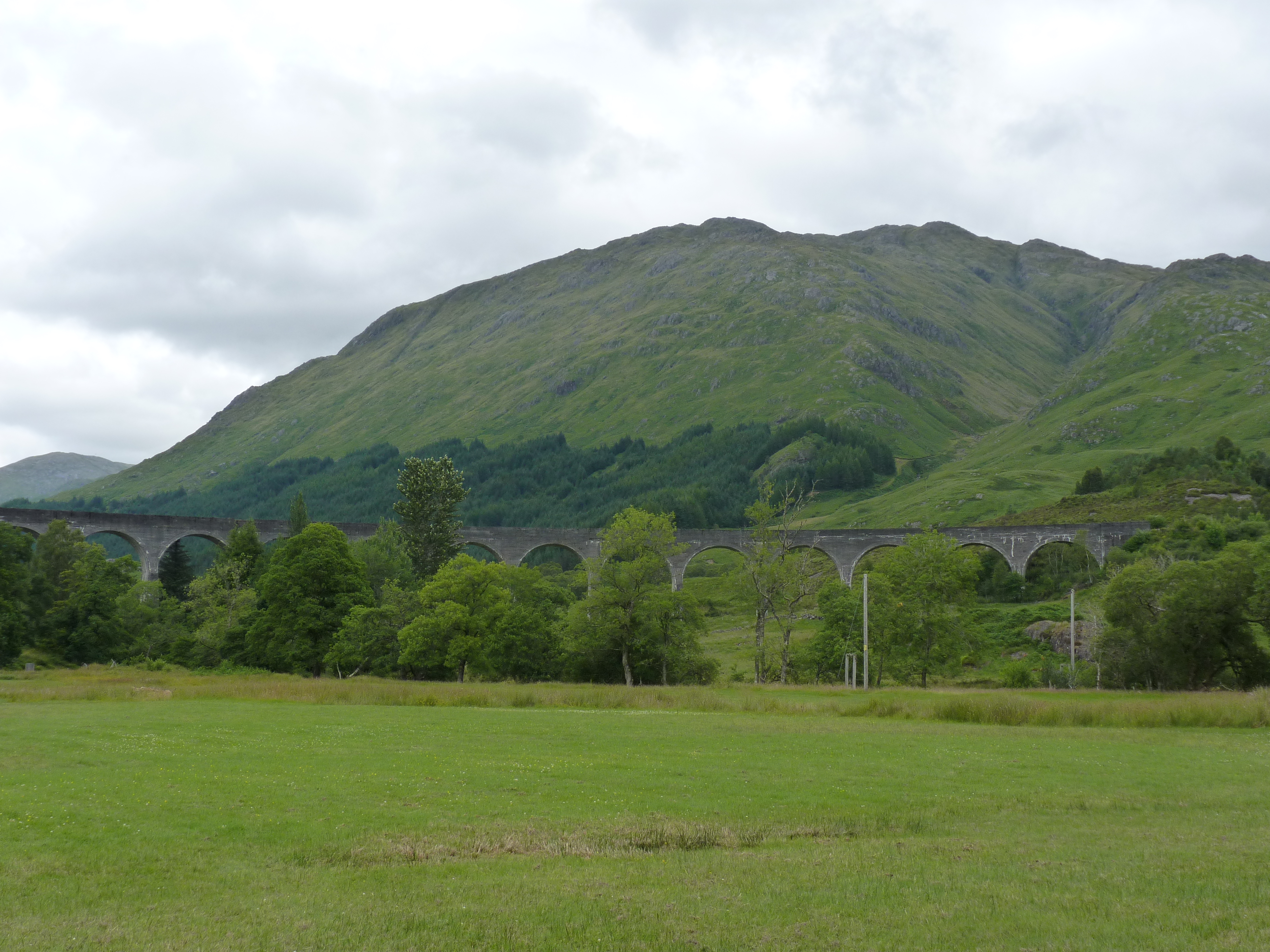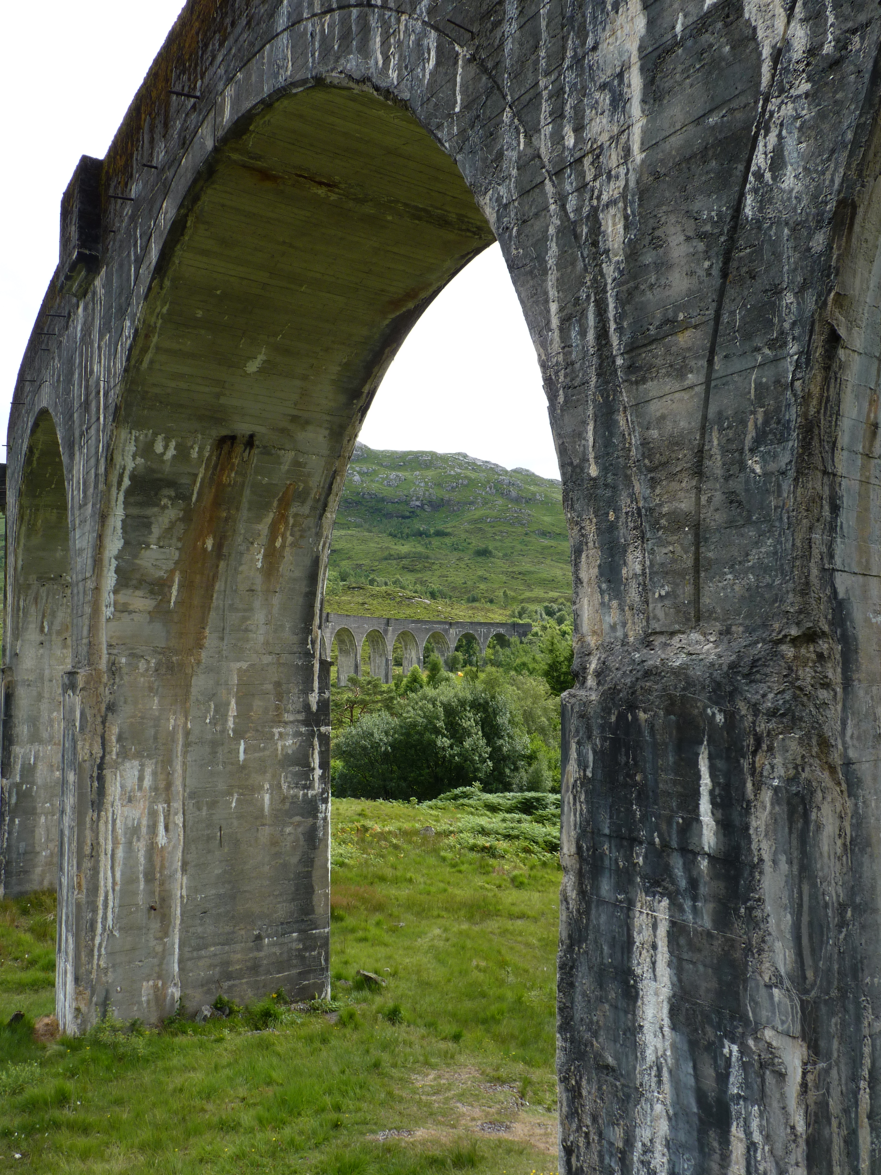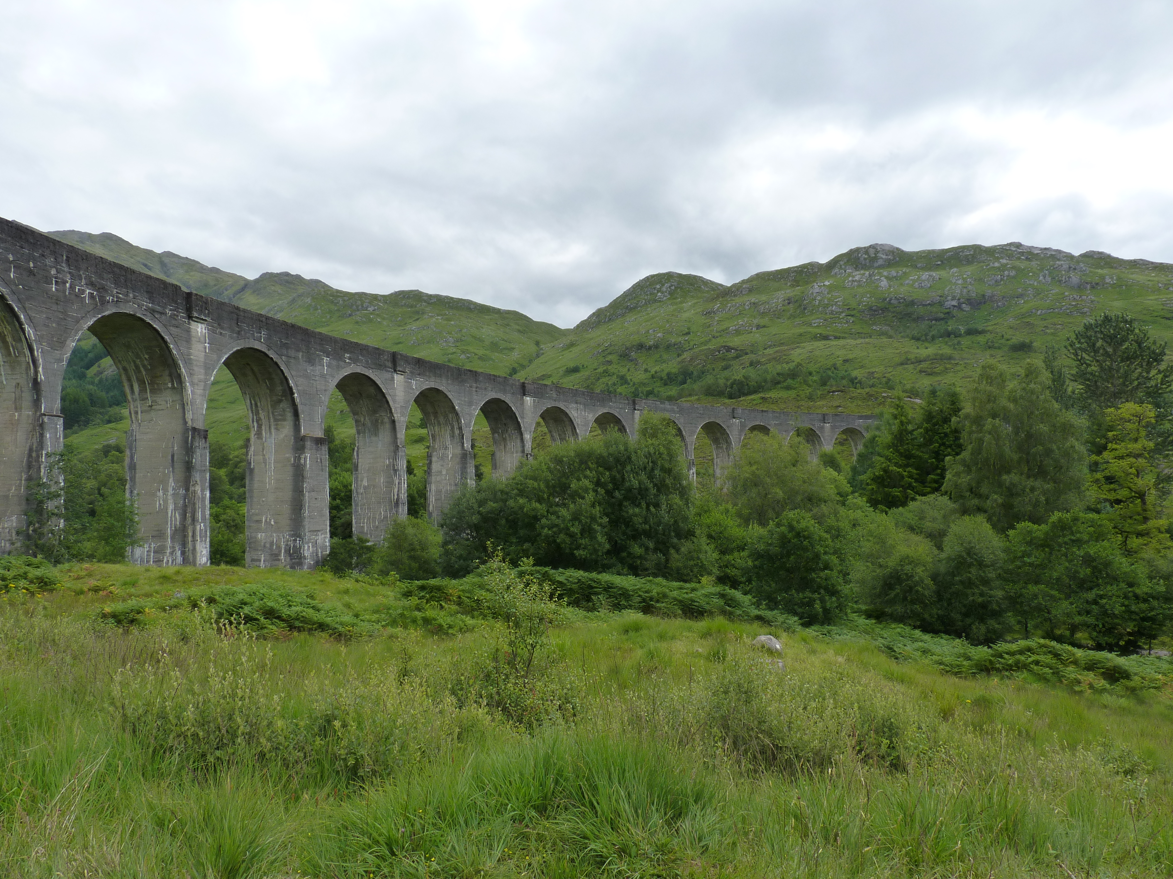 de volgende ochtend, donderdag, wordt het stiekem tijd om lagzaamaan te beginne aan een lange weg terug nar huis…Eerst nog een goeie wandeling van een uur drie. Ik heb veel last van mijn heupen, dus jammer genoeg zie ik me de Ben Nevis niet opgaan. daar heb ik me al bij neer moeten leggen, maar dat staat nog op mijn bucketlist, no doubt! Na een mooie wandeling in de streek, vang ik de trip aan richting Glasgow. maar eerst nog langs een speciale plek… niet heel ver rijden…ik kom net te laat, jammer genoeg, ik hoor de stoomfluit in de verte en weet dat ik te laat ben. maar dat weerhoudt me er niet van om toch te gaan kijken… Het beroemde Glennfinnan viaduct, het mooie viaduct waar de trein van Harry Potter rijdt. De trein rijdt er dagelijks, het is een echte stoomtrein, niet de Hogwarts express natuurlijk, maar de Jacobite steamtrain. Als je tijd hebt kun je mee, maar reserveren is noodzakelijk, de wachtlijst is eindeloos…