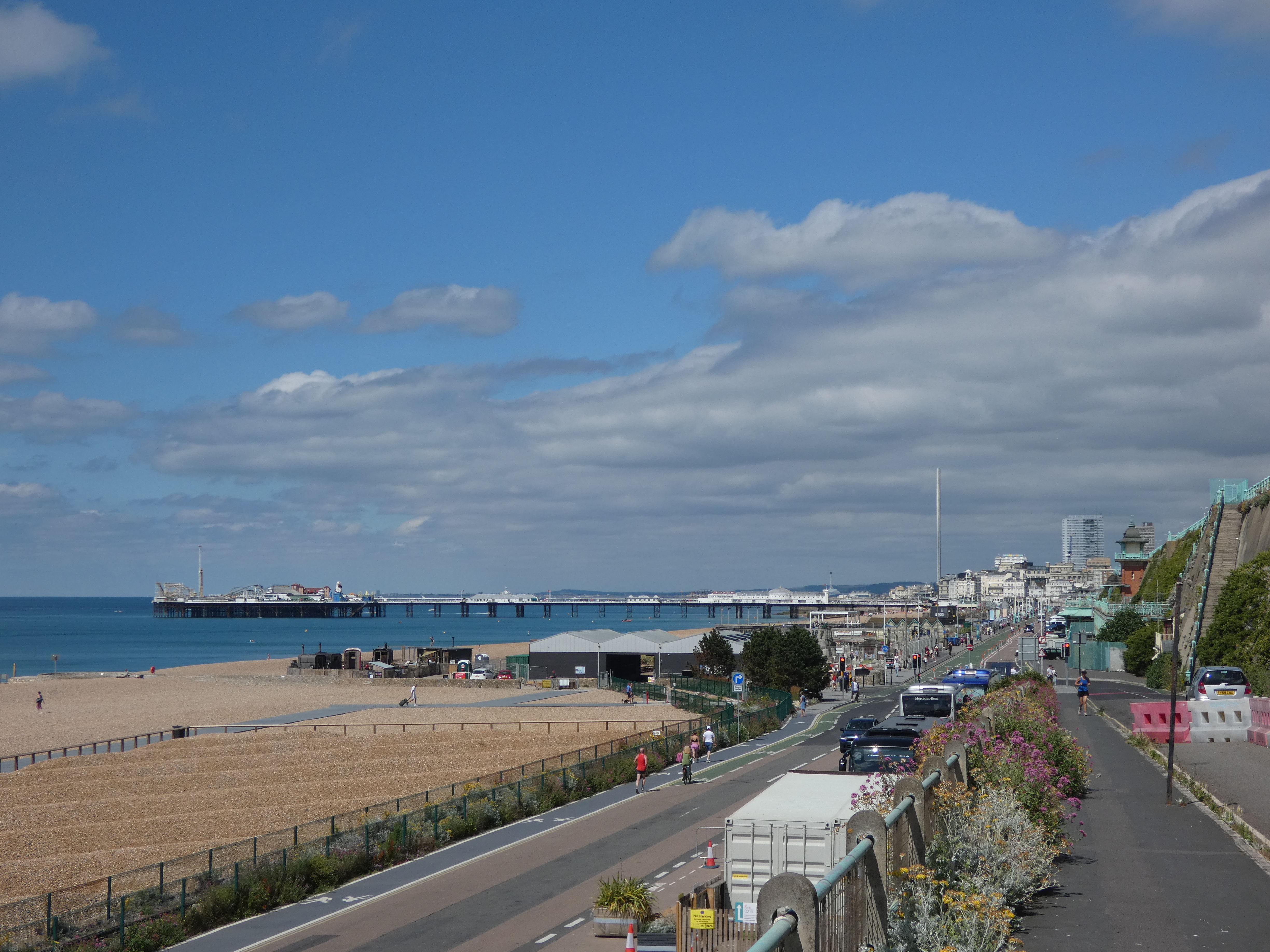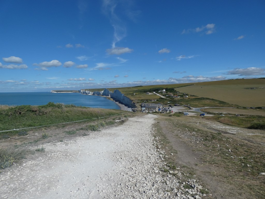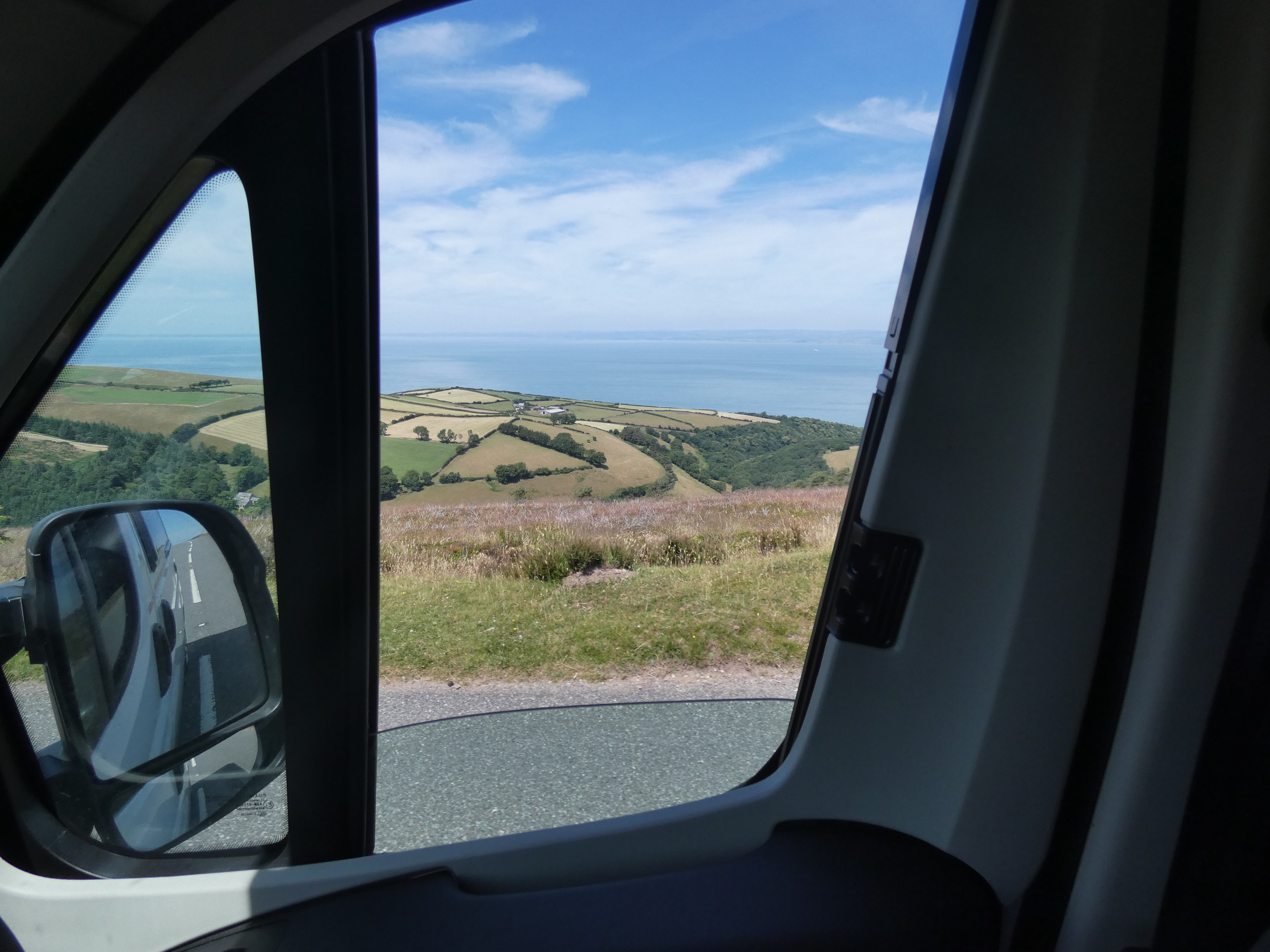 Eerst naar Dover, een 250 kilometer kachelen, uurtje of vier… Langzaam maakt de regen plaats voor zon en tegen dat ik in de buurt van Dover begin te komen, schijnt de zon weer vrij en blij en geeft de meter weer 25 graden aan.