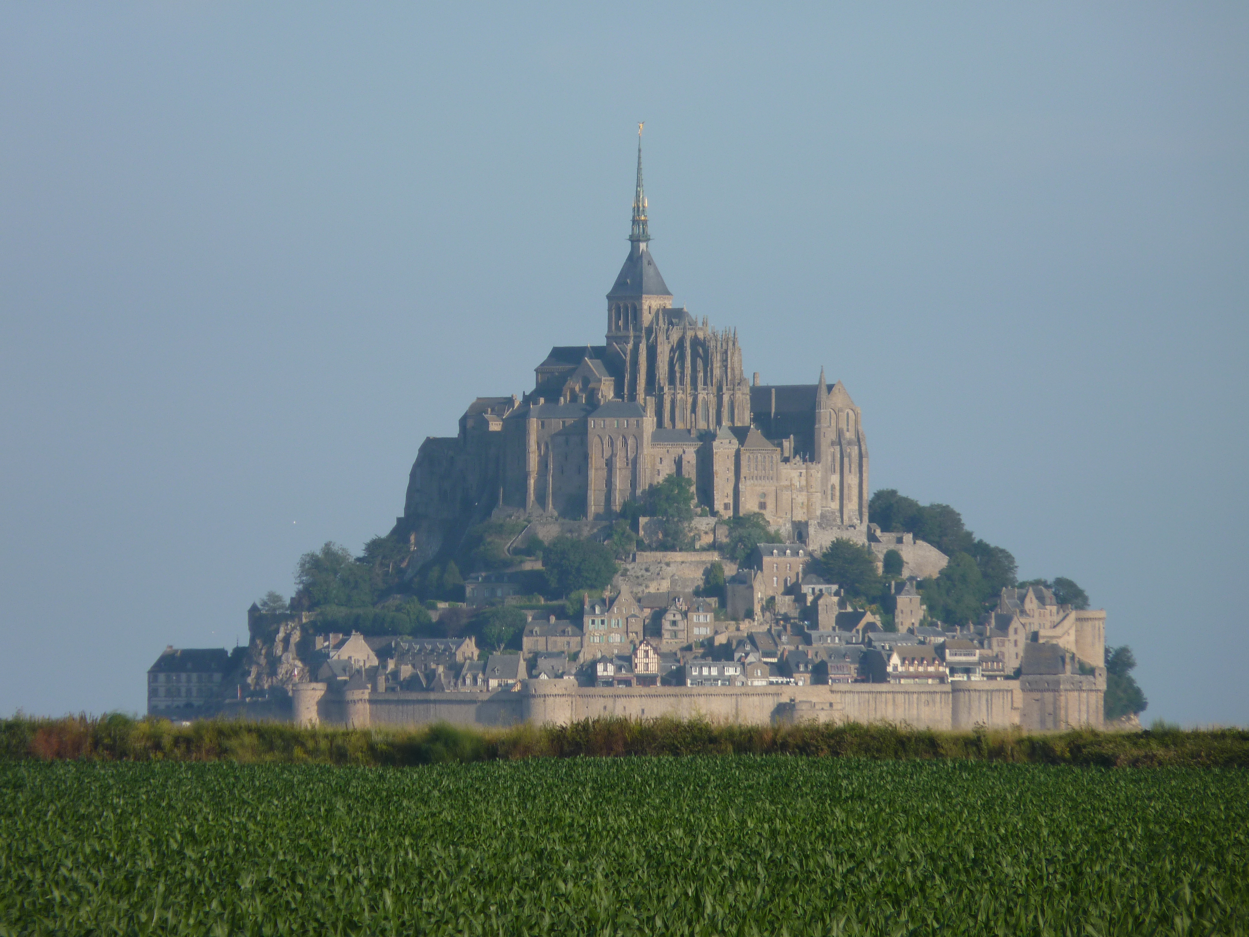 Mind you, Normandië is niet iets dat je even op twee dagen doet. Ook ik niet, zei de zot… Dit stuk Frankrijk steekt uit in de zee en de verste punt is net zo ver weg als dat je onder langs zou doorrijden naar Mont-Saint -Michel, wat ook de verste punt is, maar dan aan de basis. Mont-Saint-Michel is een twistpunt tussen Normandië en Bretagne, een begeerlijk eilandje, dat beiden als eigendom claimen, maar het is officieel nog Normandië.