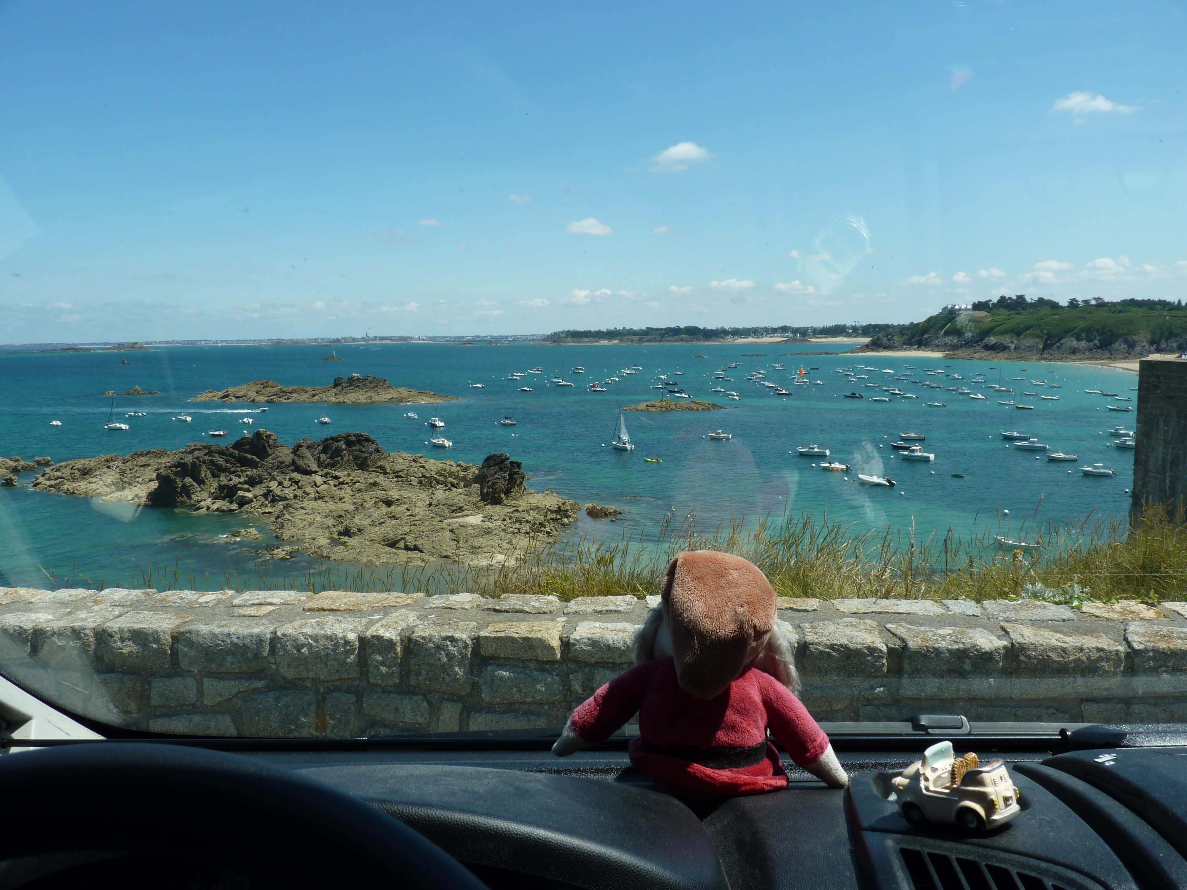 Na een korte stop bij fort la Latte, zeker ook de moeite, met een paar menhirs langs de toegangsweg, rij ik naar Saint Cast le Guildo. Fijne plek met zicht op water. Een paar uur op het strand doen goed. Het is bloedheet en ze beloven nog twee dagen met veertig graden. Niet te doen voor mij, maar ja, het zij zo. Wat verkoeling in en om het water en ’s avonds, als de zon weg is, koelt het vrij vlot af, met een lekker zeebriesje. Dan is weer wat normaal leven mogelijk…