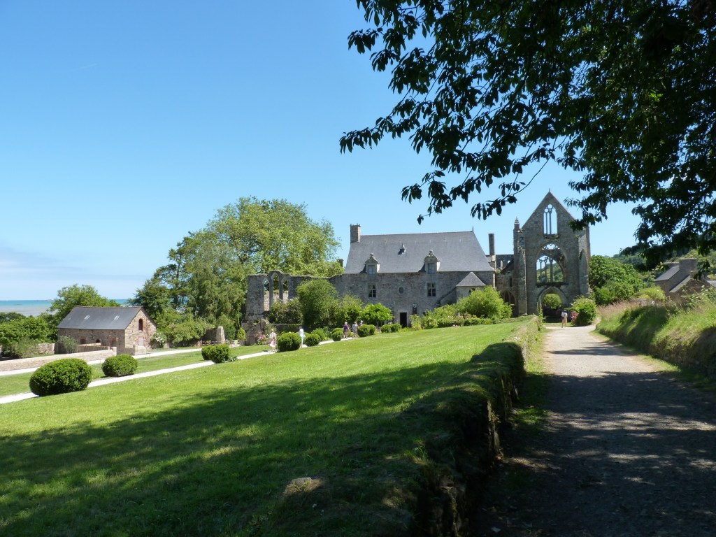 Lunchstop in Binic. Leuk klein havenpaatsje, mooie plek aan het water en een halfuurtje genieten voor de boterham. Dan verder richting Paimpol. In een bocht van de weg doemt een interessante ruïne op. Geen idee wat het precies is, maar ik besluit te stoppen en te gaan kijken. Het is de Abbaye de Beauport. Bijgenaamd de romantische abdij, omdat het er overal volstaat met bloemen. Zo op een zonnige dag, blauwe lucht, is het een prachtig schouwspel. Entree 5 euro en je hebt minstens een uur lang veel te bekijken. Een eindeloze rits foto’s verder kijk ik terug op een gelukkige stop, zo even langs de doorgaande weg…