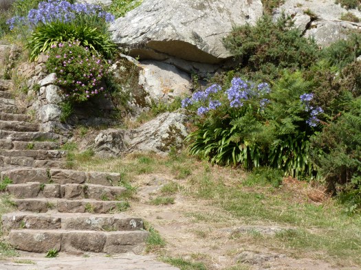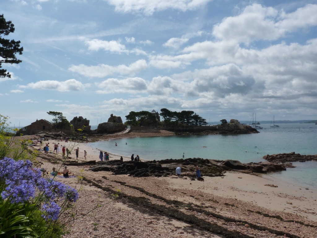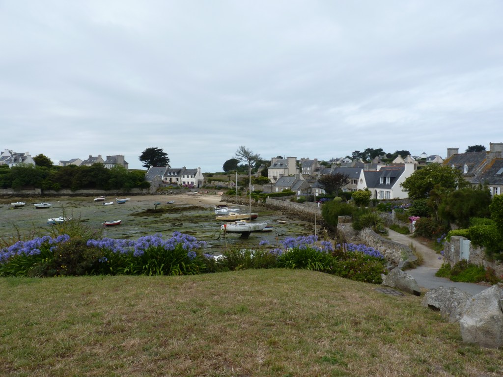 Ile de Brehat is een eiland dat bestaat uit twee delen, verbonden door een brug. Het eiland ligt Aan de Cote d’Armor en ligt in de golfstroom, die ervoor zorgt dat hier eigenlijk een speciaal microklimaat heerst met ontzettend veel goed weer. Ondanks dat je hier aan de Noordkust van Franrijk bent, vriest het hier bijna nooit en heb je veel meer zon-dagen dan aan het vasteland. Hortensia’s, mimosa, moerbei, eucalyptus, Aloë, Camelia’s. agapanthus, de mooie blauwe bloem, die overal staat. En het is vergeven van de vogelsoorten. Geen auto’s , charmante huizen, ruige kusten…het eiland is 3,5 bij 1,5 kilometer. Natuurlijk kun je dat ook goed te voet doen, maar als je een beetje de drukte voor wil blijven, kun je beter naar de andere kant van het eiland op een fiets. Niet zomaar simpel door de bergachtige wegen, maar zeker de moeite om de vuurtoren Paon te zien en een aantal andere dingen, zoals een oude citadel en kapel, die wat verder van de haven liggen. En dan mag je het enige strand van het eiland ook niet overslaan…Plage du Guerzido. Al is het maar voor even… Je komt aan bij de steiger van het plaatsje zelf. Hier is de drukte altijd merkbaar, boten die aankomen, boten die vertrekken, veel toeristen die hier dus tegelijk moeten zijn. Via een weggetje omhoog langs een paar winkeltjes, kun je verder het eiland op en je een weg zoeken. Naarmate je verder komt, wordt het wel rustiger en kun je met volle teugen genieten. Ik zou zeggen, iemand die hier geweest is en er helemaal niks aan vindt, wel, ik denk dat die raar denkt…