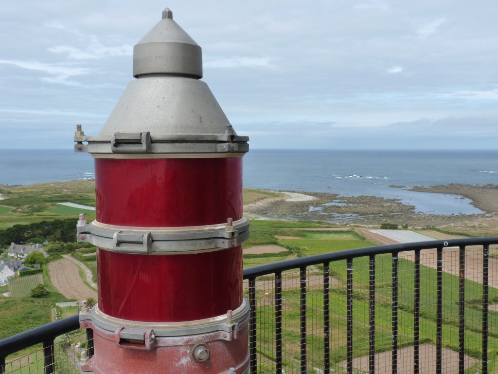 Vrijdag…vandaag een langere wandeling voor de boeg. naar Gatteville-le-phare. Een stuk gewoon langs de weg, verder langs een soort veredelde landweg. Een paar huizen, verder niets… Behalve de enorme vuurtoren…Normandië is, net als Bretagne, trots op zijn vele vuurtorens. In elke souvenirwinkel kun je ze sparen in alle maten en uitvoeringen met naam en toenaam. Gatteville is een van de grotere joekels. Wat cijfers….gebouwd rond 1830, een slordige75 meter hoog, tweede hoogste vuurtoren van Frankrijk en Europa. Tis geen kleintje, met vooral beneden, letterlijk metersdikke wanden. De trap heeft evenveel treden als er dagen in het jaar zijn en er zijn evenveel vensters te vinden als er weken in het jaar zijn. Eenmaal boven is het zaak je heel goed vast te houden, vooral met wat wind, want op een goeie 70 meter hoogte kan het spoken. Maar het uitzicht is onbetaalbaar. 360 graden mooi…