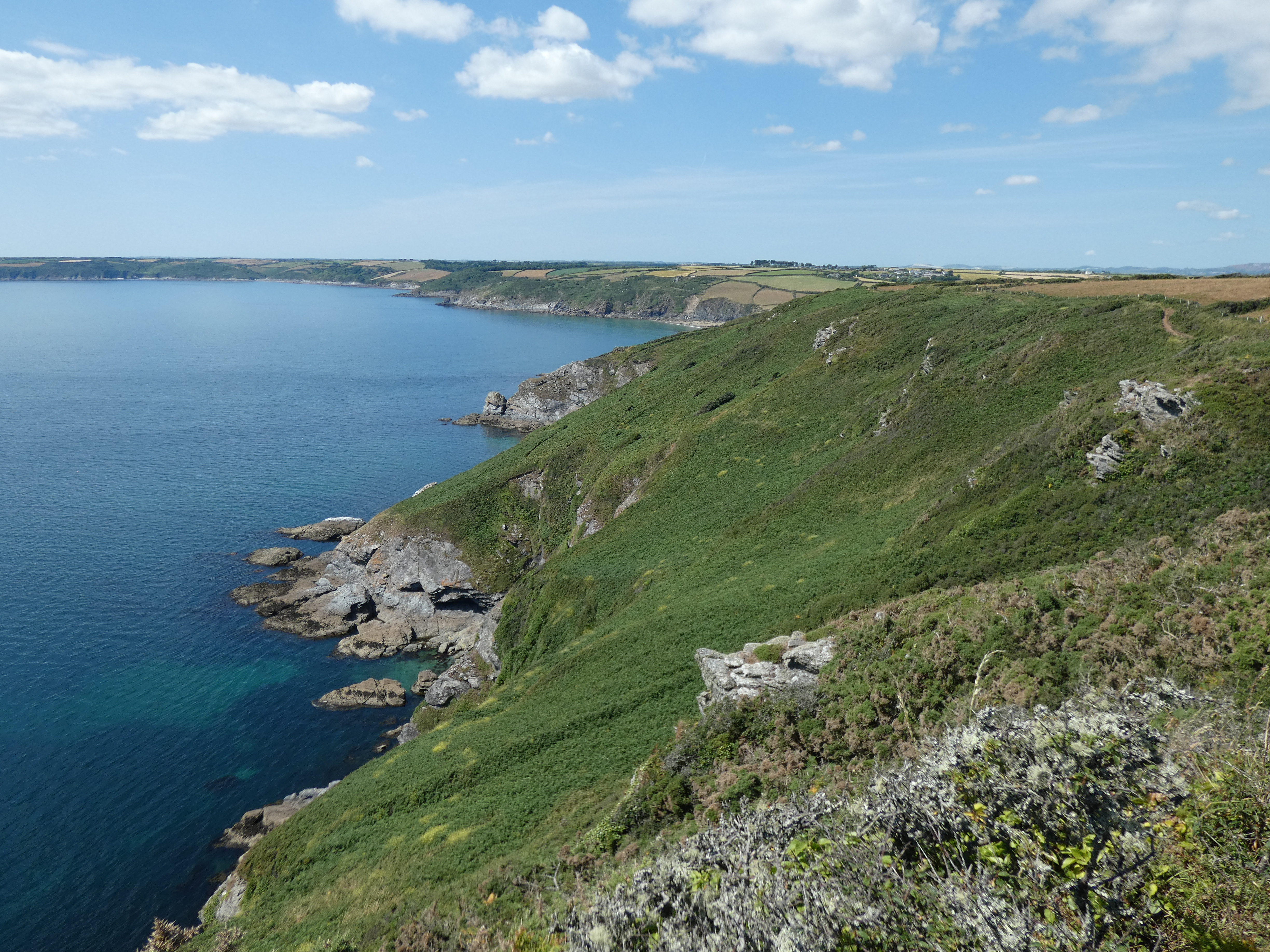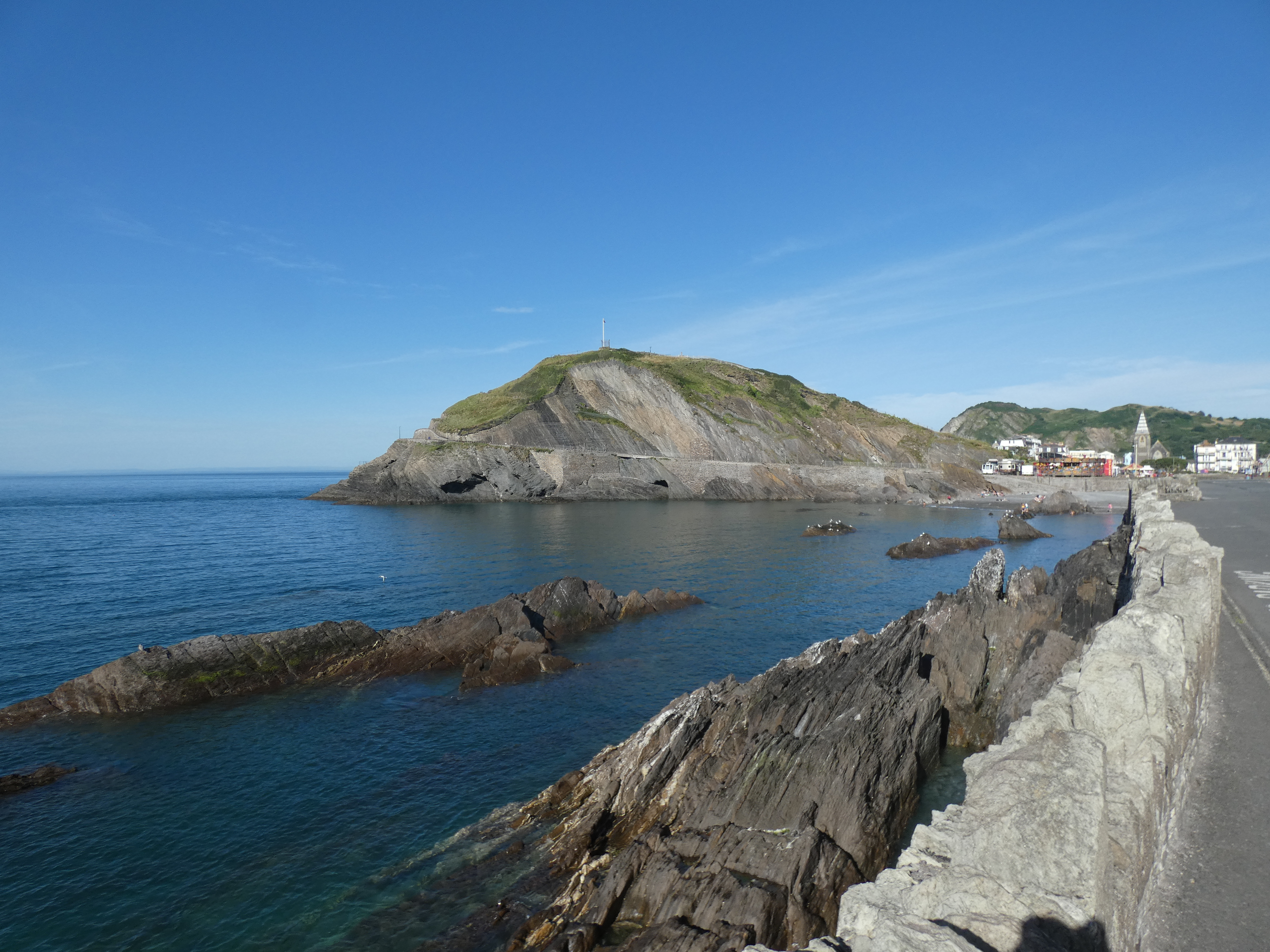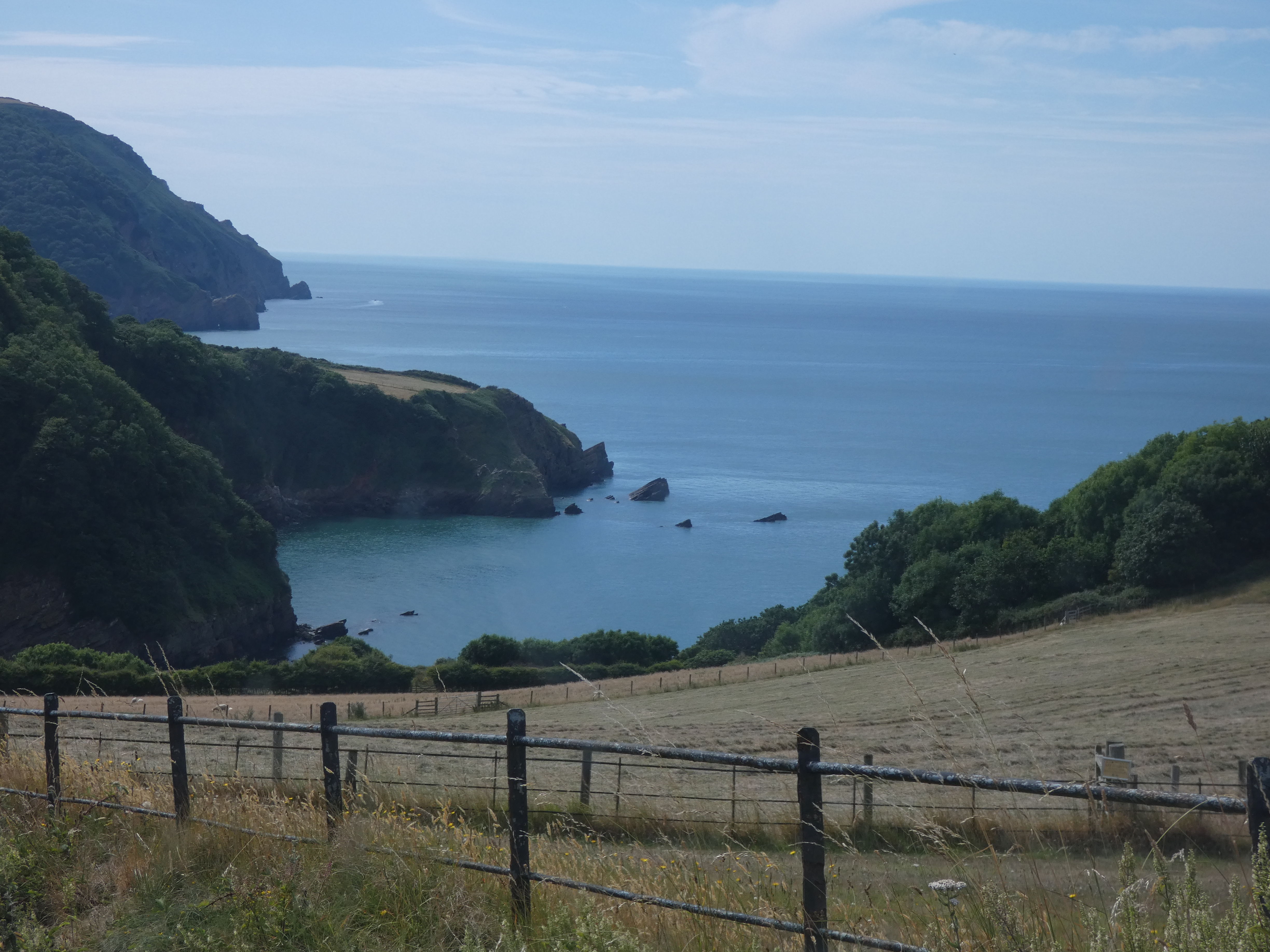 Bij Aberystwych de weg zuidwaarts langs de kust, richting de Pembrokeshire coast, immens natuurgebied, direct aan de kust. Eerste doel Tresaith. de weg brengt me hoog langs de kust, zelfs een stuk door wolken, wat niet echt leuk is. Mist is dan nog beter dan die wolken, die flarden van wel en niet zicht geven en volle concentratie vergen.