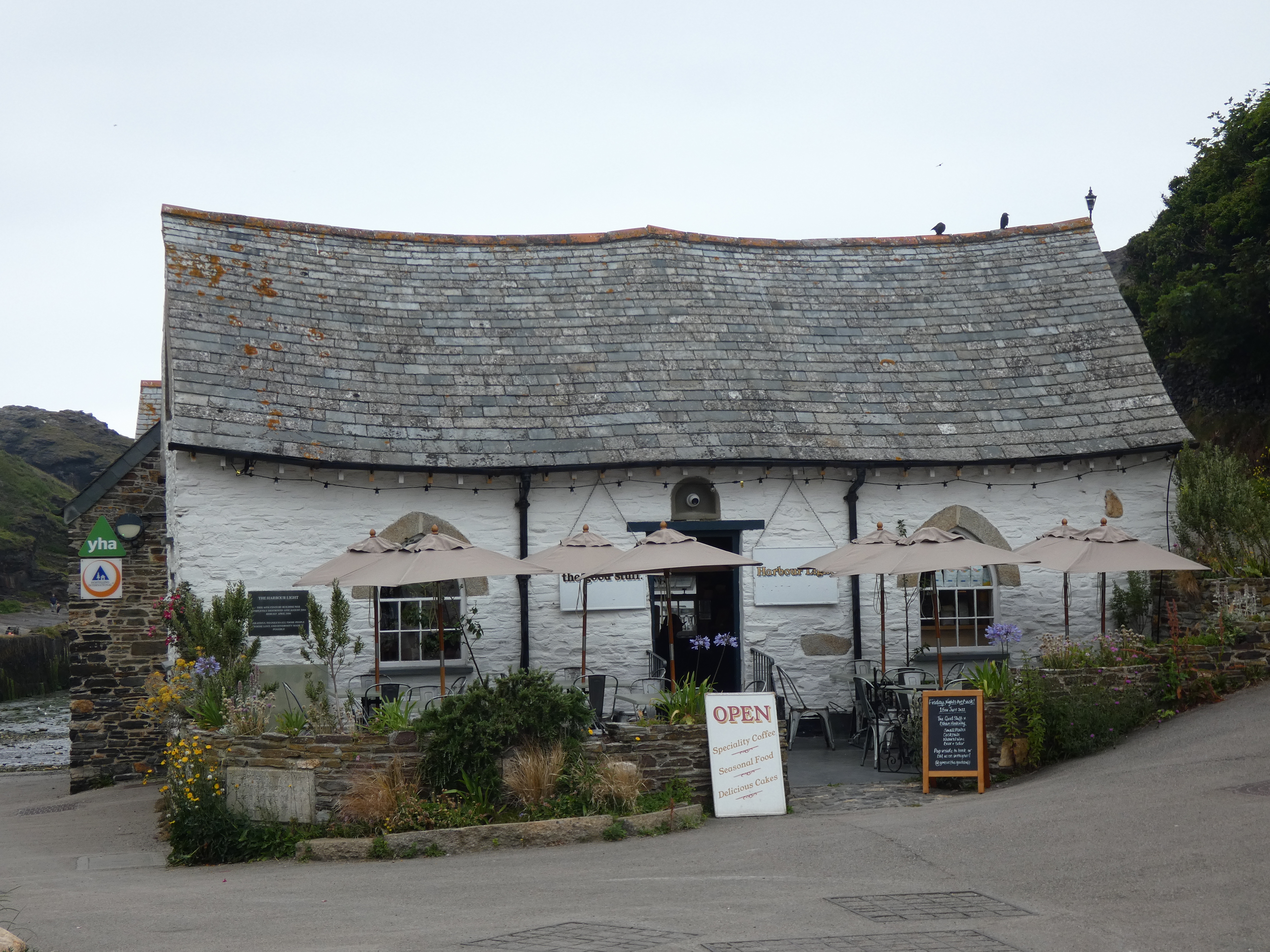 Het veer op, door de regen naar het eiland en daar weer de wal oprijden en even parkeren. Even rondlopen en sfeer snuiven. Gelukkig stopt de regen redelijk vlot. De vorige keer waren er zeilcursussen in het haventje, vandaag is het rustig en haast verlaten. Bij Knights town coffee hebben ze boeken en koffie, lekkere koffie in een rustiek pand dat gezellig ingericht is. Je waant je direct in vroeger. Geen tea and scones voor mij, maar zeker wel koffie en scones. Homemade scones, komen net warm uit de oven, met jam en slagroom, what more could you wish for…