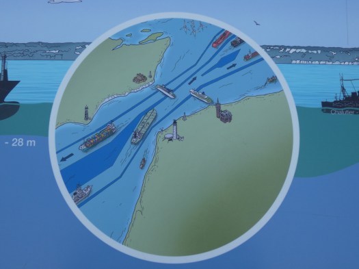 Wat nog opvalt…iets dat ik niet gedacht had…weinig scheepvaart. Je ziet Parijs, je ziet dat machtige estuarium bij die belangrijke havenstad, Le Havre, en denkt er eigenlijk niet veel bij, je verwacht een drukke rivier, zoals maas of Rijn, maar niets is minder waar. Er gaat vrachtverkeer, maar het meeste haalt Parijs niet eens. In mijn ogen, Rouen voor de grotere schepen en dan nog wat rivierschepen die het wat verder maken, maar het aantal en ook tonnage neemt snel af na Rouen. En dan wel nog een aantal riviercruises. Maar over het algemeen , zeker hier, een heel stuk van de kust, zie je niet meer dan een vijf-à tiental schepen max per uur. Het lijkkt meer op afentoe eentje, dan op een drukke waterweg. Ik heb diezelfde verwondering gehad bij de Loire, machtig grote rivier, zonder scheepvaart voor heel grote stukken. Speciaal om te zien, mooi natuurlijk, voor de natuur en de afwezigheid van mensendrukte, maar het blijft wat vreemd.