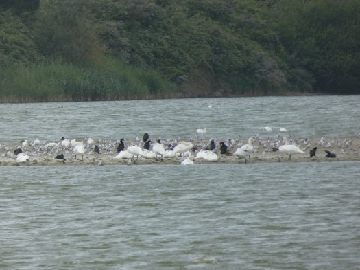 Een uurtje later sta ik op een layby/parking van een doorgaande weg tussen twee meren, bij Heron’s green bay. Een meer, tjokvol watervogels, die de hele avond zorgen voor een levendig beeld. de weg is druk, maar dat wordt ’s avonds minder en het meer is druk en dat wordt niet zomaar minder, dus alleen maar mooier…